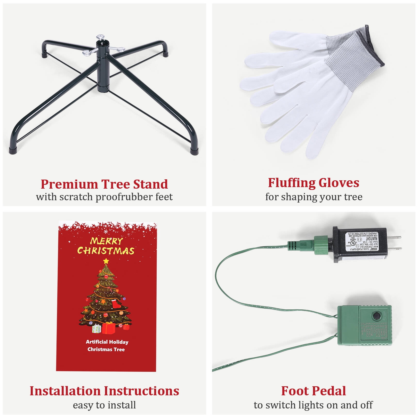 PVC material is non-flammable and non-allergic Constructed in 3 sections for easy set up Have ample space to decorate your favorite tree 250 color changing LED lights and warm white lights , 10 Color Modes Stable and foldable metal base is sturdy to support the whole tree Suitable for home, office, holiday party, classroom Features: Lifelike Appearance: 6ft Artificial Hinged Slim Pencil Christmas tree with a lifelike appearance is adorned with 250 LED RGB color-changing lights and warm white lights, offering 10 dazzling effects to enhance your holiday ambiance. The included controller allows you to effortlessly switch between 10 light modes. With its ultra-realistic 972 PVC branch tips, this tree provides a full and lush appearance once fluffed, providing ample space to showcase your favorite ornaments in a way that suits your personal style. Easy to Assemble & Fluff: Assembly and fluffing are a breeze thanks to the easy-to-use hinged design. With just a few simple steps, you can quickly assemble, disassemble, and store this tree with its 3 sections. The hinged branches expand effortlessly, saving you time and energy. Simply arrange the branches, add your decorations, and voila! A stunning Christmas tree is ready. Superior Material: Crafted with superior materials, including metal hinges and fire-retardant green PVC blades, our Christmas tree offers both durability and safety for indoor use. We believe that better materials lead to a better user experience, and this Christmas tree is no exception. Foldable Metal Stand: Say goodbye to wobbly trees! Our foldable metal stand, equipped with non-slip foot pads, provides excellent support and balance, ensuring the tree stands upright securely and protecting your floors. When the season is over, the tree conveniently folds for easy storage and packing. Holiday Cheer: Spread holiday cheer throughout your home, office, or holiday party with this ideal decoration. Hang your favorite ornaments such as baubles, snowflakes, candy canes, pine cones, stockings, Christmas bells, Santa Claus figurines, gingerbread men, bows, and Christmas lights. This slim pencil Christmas tree will create a joyful and prosperous festive atmosphere, setting the stage for unforgettable celebrations. Specifications: Color: Green Size: 6ft Material: PVC + Metal Number of Tips: 972 Number of lights: 250 Warm White & Multi-Color Lights Mode: 10 Light Modes Package Includes: 1 x Pencil Christmas Tree 1 x Metal Stand 1 x Instruction 2 x gloves Note: At the end of the installation, it takes about 30-40 minutes to fluff and shape the tips. Please remove the plastic cap from a pole which is only for tree protection in transit. If the caps are damaged or missing upon arrival, it doesn’t matter.