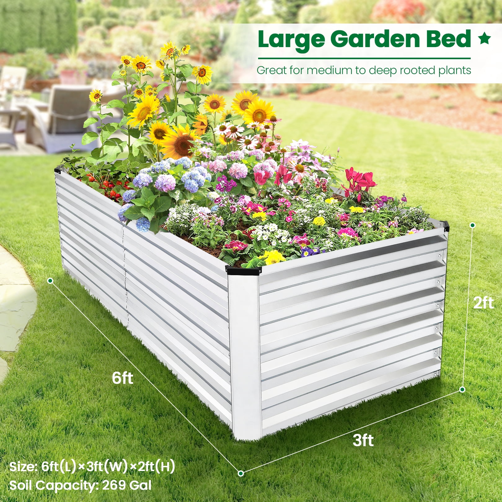 Funcid Galvanized Raised Garden Beds 6ft×3ft×2ft Large Metal Garden Beds Galvanized Steel Planter Box for Vegetables Flowers Herbs Outdoor