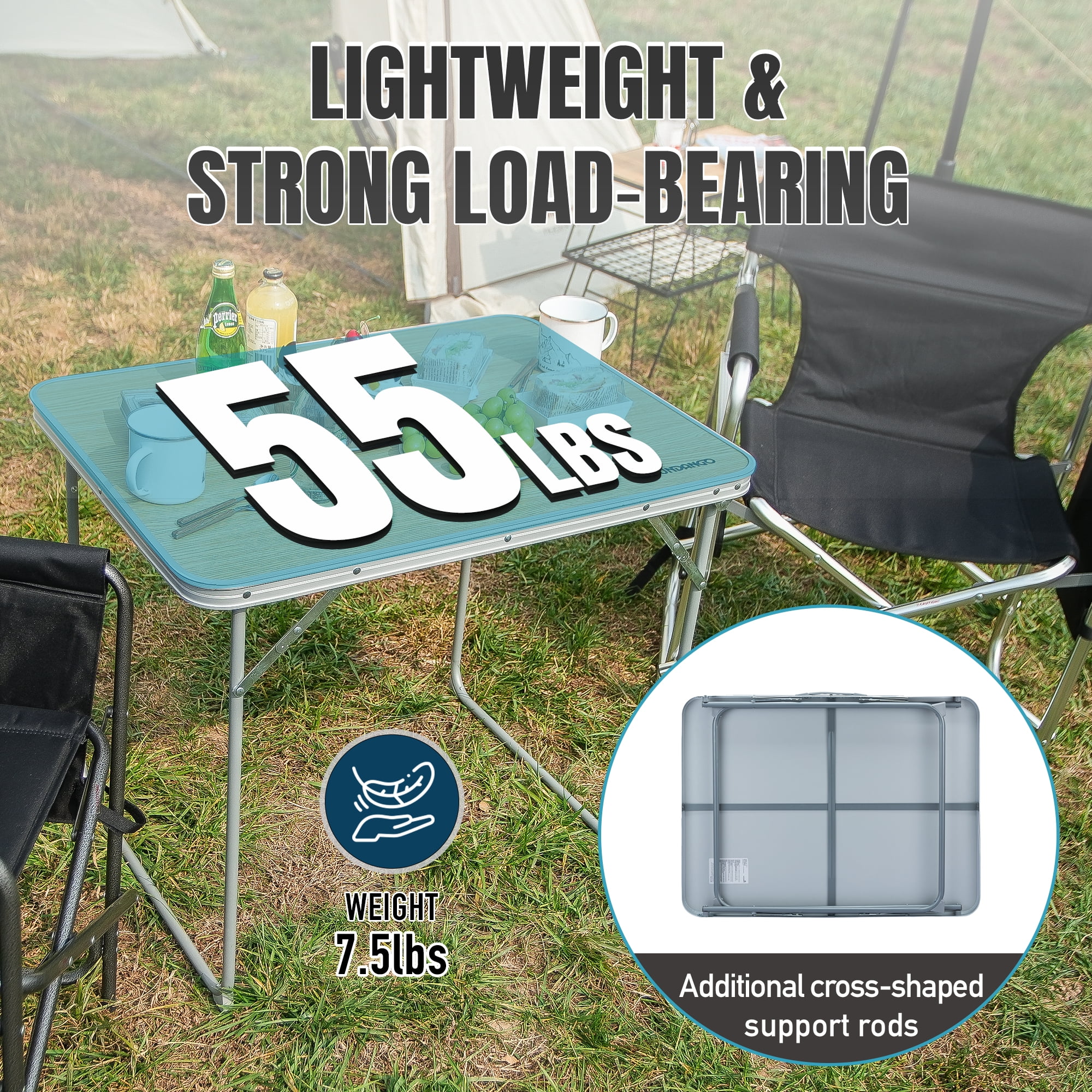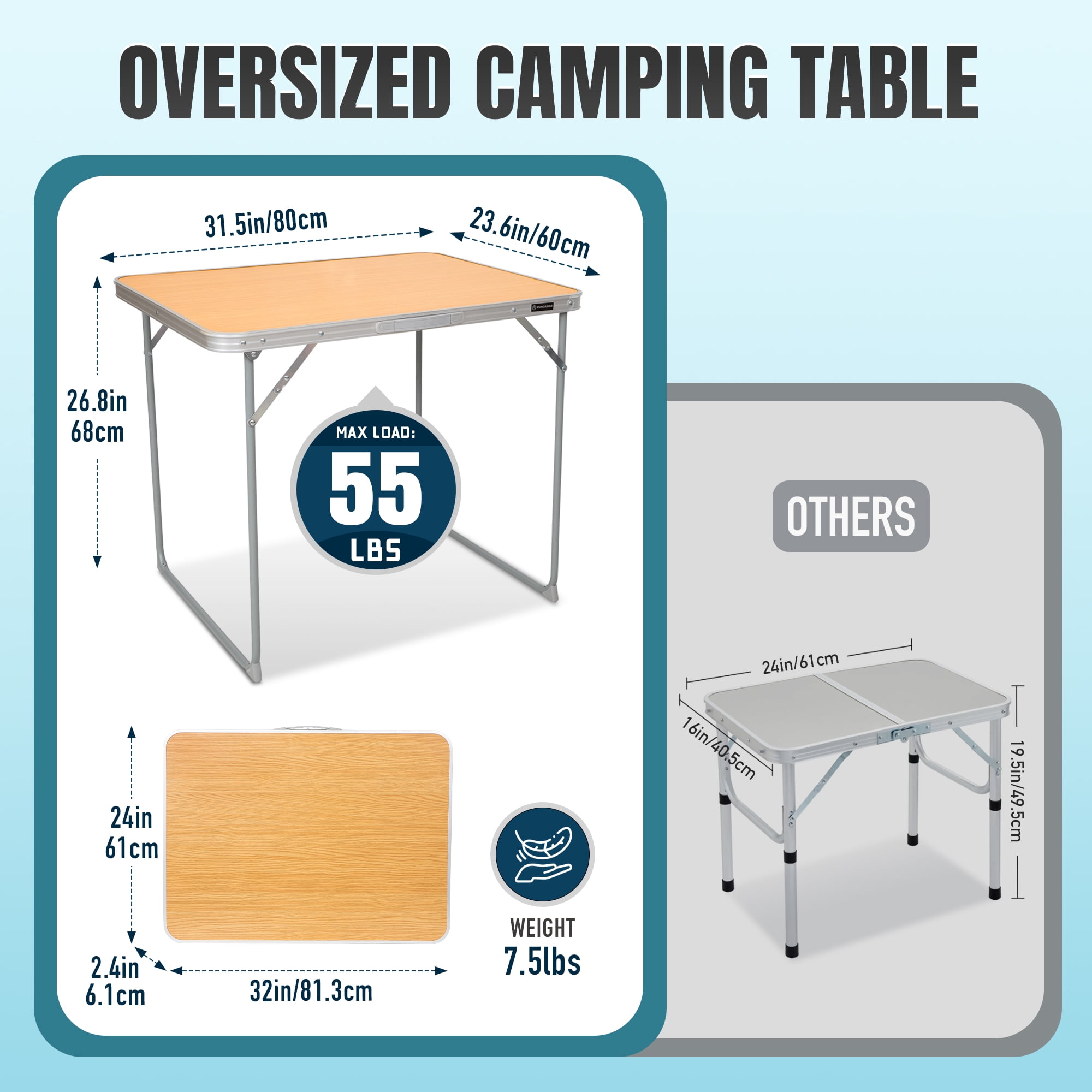 【Durable Materials & Easy Maintenance】 Built with a scratch-proof, rust-proof MDF tabletop and reinforced aluminum alloy edges, this table resists corrosion, wear, and water damage. Its smooth, waterproof surface wipes clean in seconds, perfect for messy outdoor meals or sandy beach days. 【Portable Design & Practical Dimensions】Weighing only 7.5 lbs, this folding table collapses to a slim 32″x24″x2.4″ for effortless storage and transport, while its 55-lb weight capacity comfortably accommodates 1-2 people. The integrated sturdy handle ensures easy carrying, making it ideal for on-the-go adventures. 【Unshakable Stability】Engineered with heavy-duty Q195 steel pipe brackets, non-slip foot covers, and a triangular hinge reinforcement system, this table stays steady on uneven ground, grass, or sand—no wobbling, even under full load. 【Versatile Outdoor Performance】From campfire cookouts and lakeside fishing to backyard parties and beach picnics, this table adapts to any scene. Its compact yet robust design balances portability with rugged utility, thriving in diverse environments. 【Worry-Free Support & Warranty】Backed by a 12-month warranty and responsive customer service, we ensure prompt assistance for any issues. Adventure confidently with a table built to last and a team dedicated to your satisfaction.