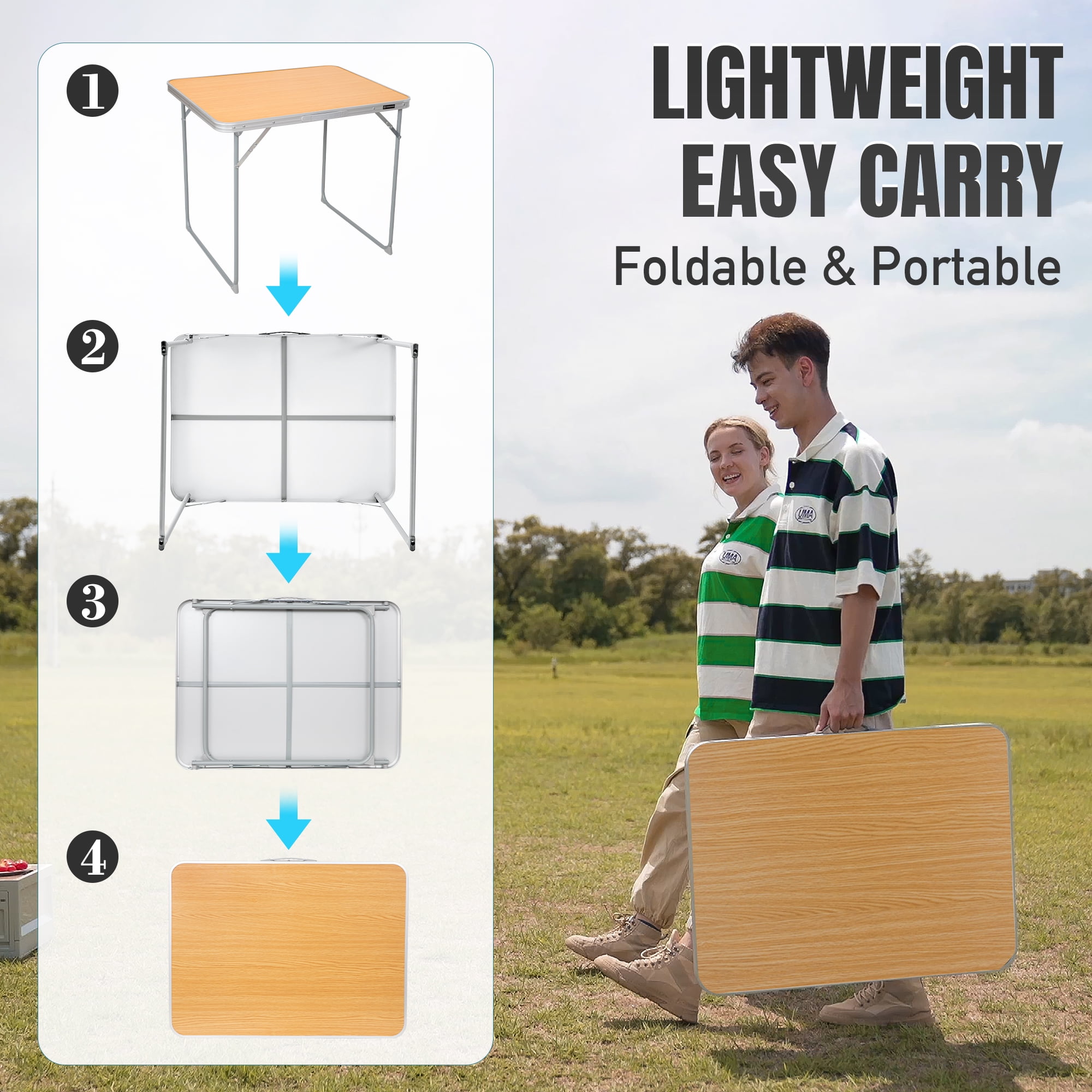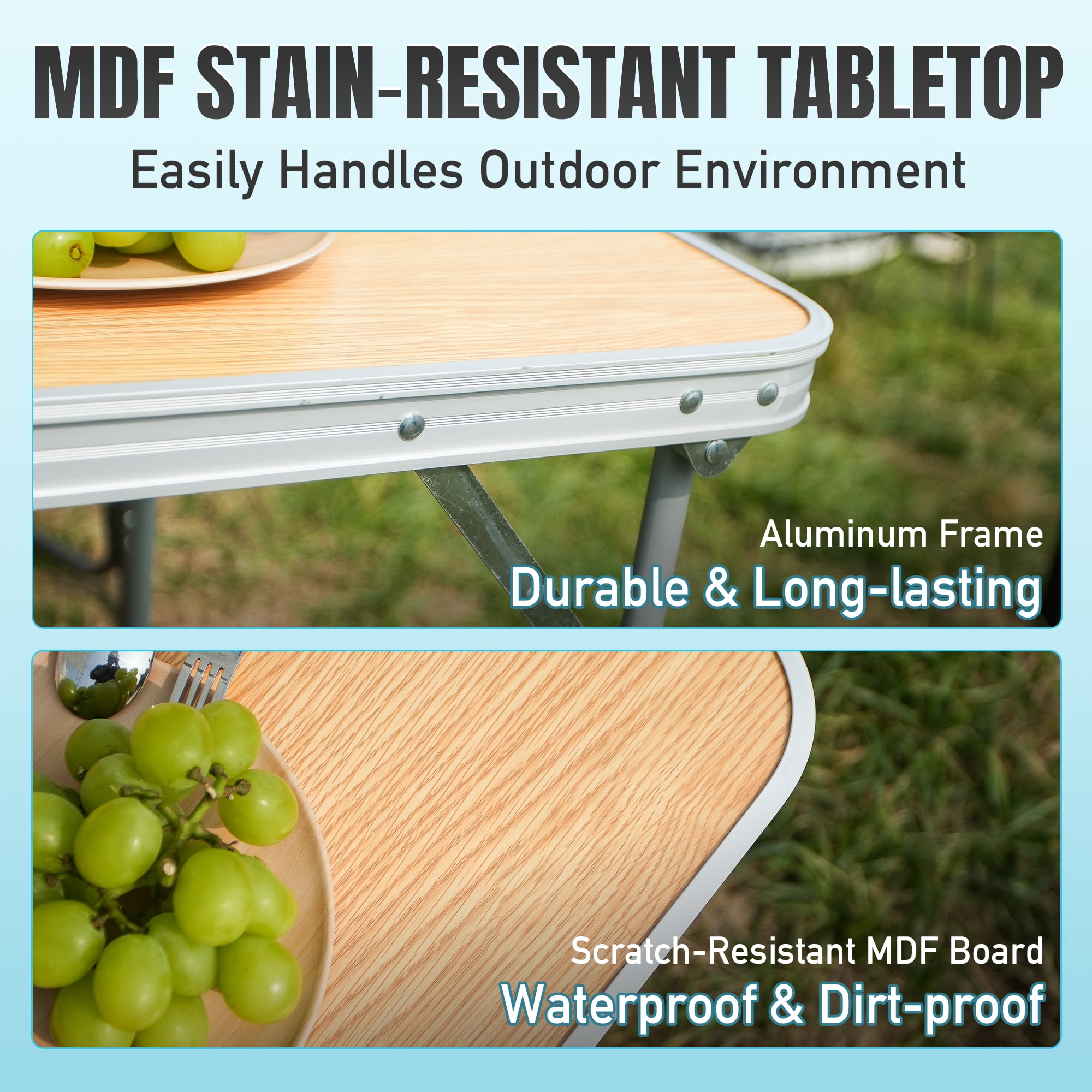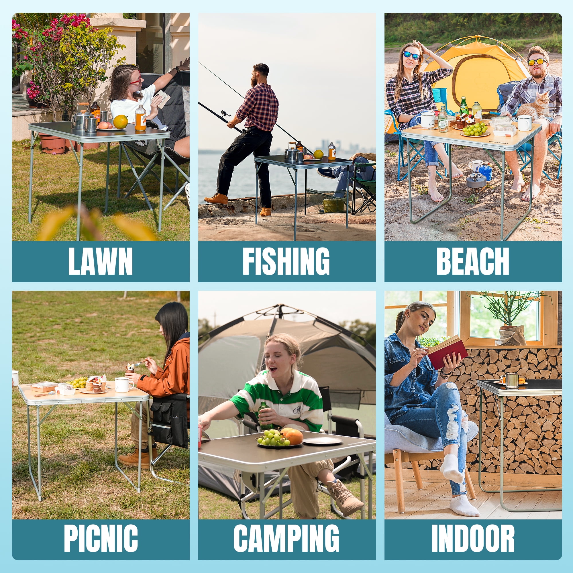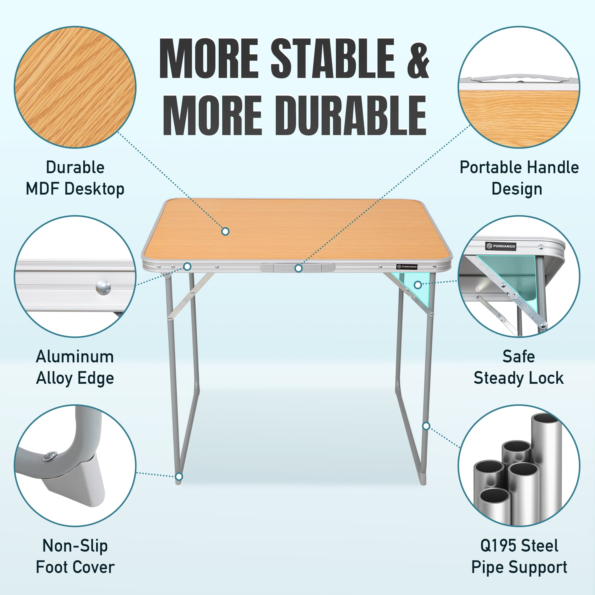 FUNDANGO lightweight portable folding table – your reliable outdoor companion! Designed for camping, picnics, beaches, and beyond, this all-purpose table combines mobility and rugged durability! Crafted with a hard-top waterproof MDF surface that’s scratch-proof, rust-proof, and effortless to clean, it keeps your items safe and dust-free. The heavy-duty steel tube frame and cross-reinforced bars deliver unmatched stability, even on uneven terrain. Weighing just 7.5 lbs with a sturdy carry handle, it’s ultra-portable and folds in seconds (32″x24″x2.4″ when packed)—no tools needed! Perfect for outdoor dining, parties, fishing, or concerts, this table is built to last.