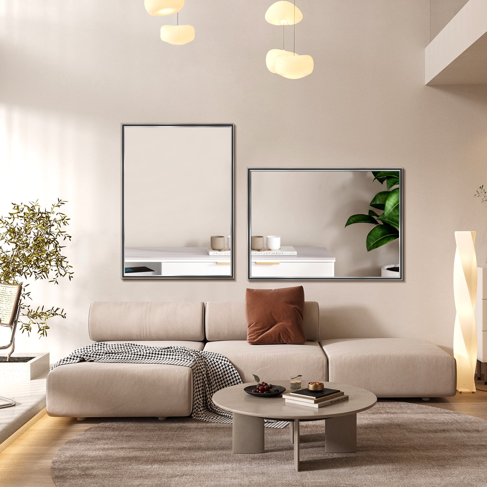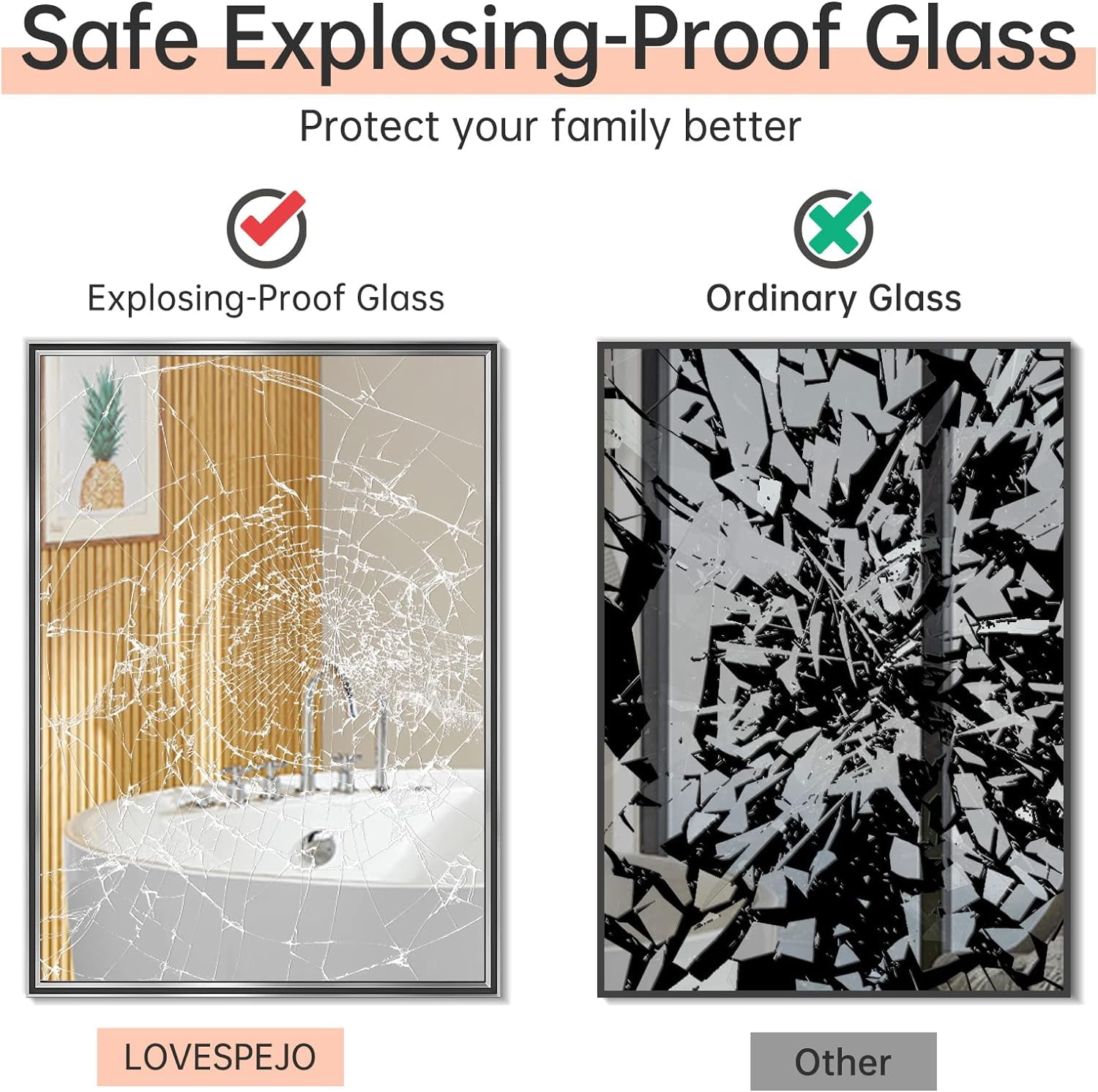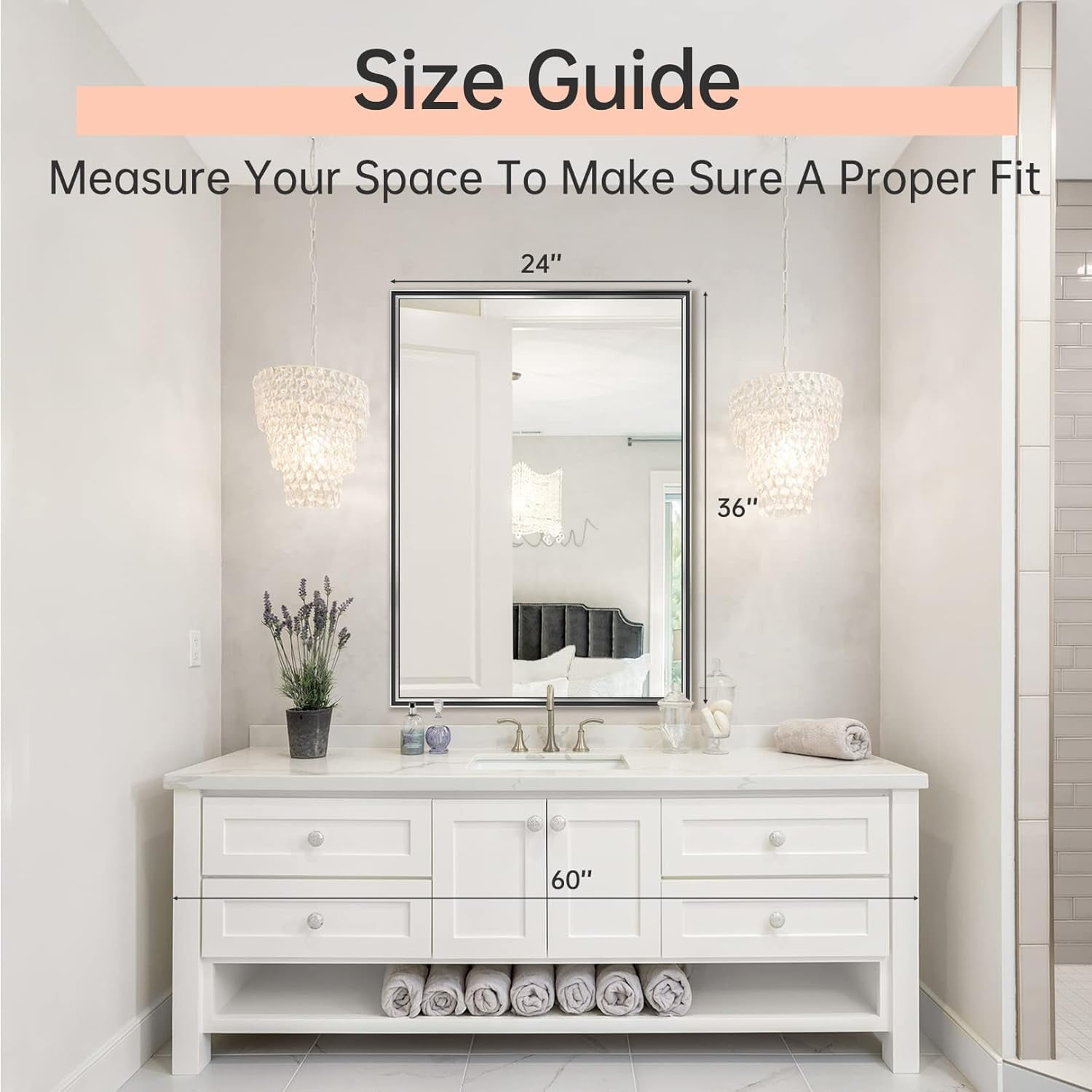 【Clear Reflection & NO Distortion】: FUNTOUCH bathroom vanity mirror is designed with HD float glass to deliver a clear reflection with no distortion; clear lines; simple modern design makes it an ideal bathroom vanity mirror. 【Sturdy & Safe Mirror】Our hanging vanity mirror of 5MM tempered glass has 5 times the strength of ordinary mirrors, and will not shatter into pieces under the impact of strong force. It is robust and safe to use. The rectangular wall mirror has the most chic brushed bronze finish. Durable Aluminum alloy frame and PVC shatterproof film would strengthen the floating glass for safety, waterproof and anti-corrosion in wet bathroom environments. 【Easy installation 】 Bathroom vanity mirror with 4 built-in slots on the back, can be hung horizontally or vertically. Super easy to install and only takes 10 minutes to install. Accessories and hardware included. We’ve designed a sturdy 4-layer package for the mirror, so you don’t have to worry about receiving a broken mirror. 【Multiple Hangs Modes 】Boasting a simple and modern style, this black bathroom mirror is the perfect choice for a variety of rooms. The installation of hanging vanity mirror is easy, which can be done in 2 steps according to the instructions, and you can hang on the framed mirror vertically or horizontally. Whether in the bathroom, bedroom, living room, dining room, entryway, or even above the fireplace, this decorative wall mirror effortlessly enhances the vintage atmosphere. 【Waterproof and rust-proof】Compared with other mirrors, our bathroom mirror frame is made of high-quality aluminum alloy and enhanced paint, completely waterproof and rust-proof. It’s very durable. Its sleek black/gold design effortlessly complements any modern or classic home style, no matter where it’s placed, instantly adding a touch of sophistication to any space. 【After-Sale Service 】Backed by a 100% safety guarantee, this mirror has been packaged to pass drop and impact tests, giving you peace of mind.Customer satisfaction is our first goal. If you have any questions about our bathroom mirror please feel free to find our FUNTOUCH Online customer service team, they will reply you within 12 hours, and give you a satisfactory solution. Product Description: Color select: Gold/Black Grey Size:20”x 28”,24”x 36” Shape: Rectangular Metal Frame bathroom mirror Material:Aluminum Alloy & 5mm Shatter-proof Glass Room Type: Living room, dining room, bedroom, Hair Salon, Hotel or long hallway Mounting Type: Wall Mount, Horizontal/Vertical