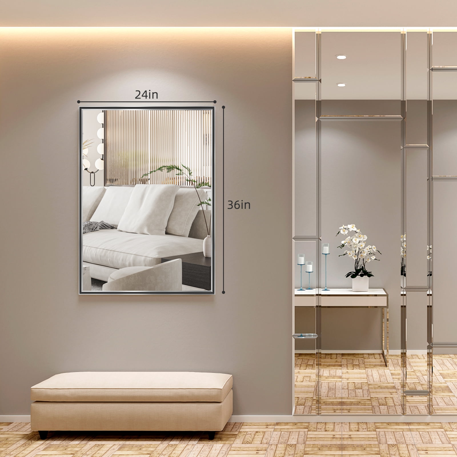 FUNTOUCH 24″x 36″ Bathroom Mirror, Wall Mirror with Rectangular Metal Frame, Wall Mirrors for Bathroom,Hanging Vanity Mirror, Black