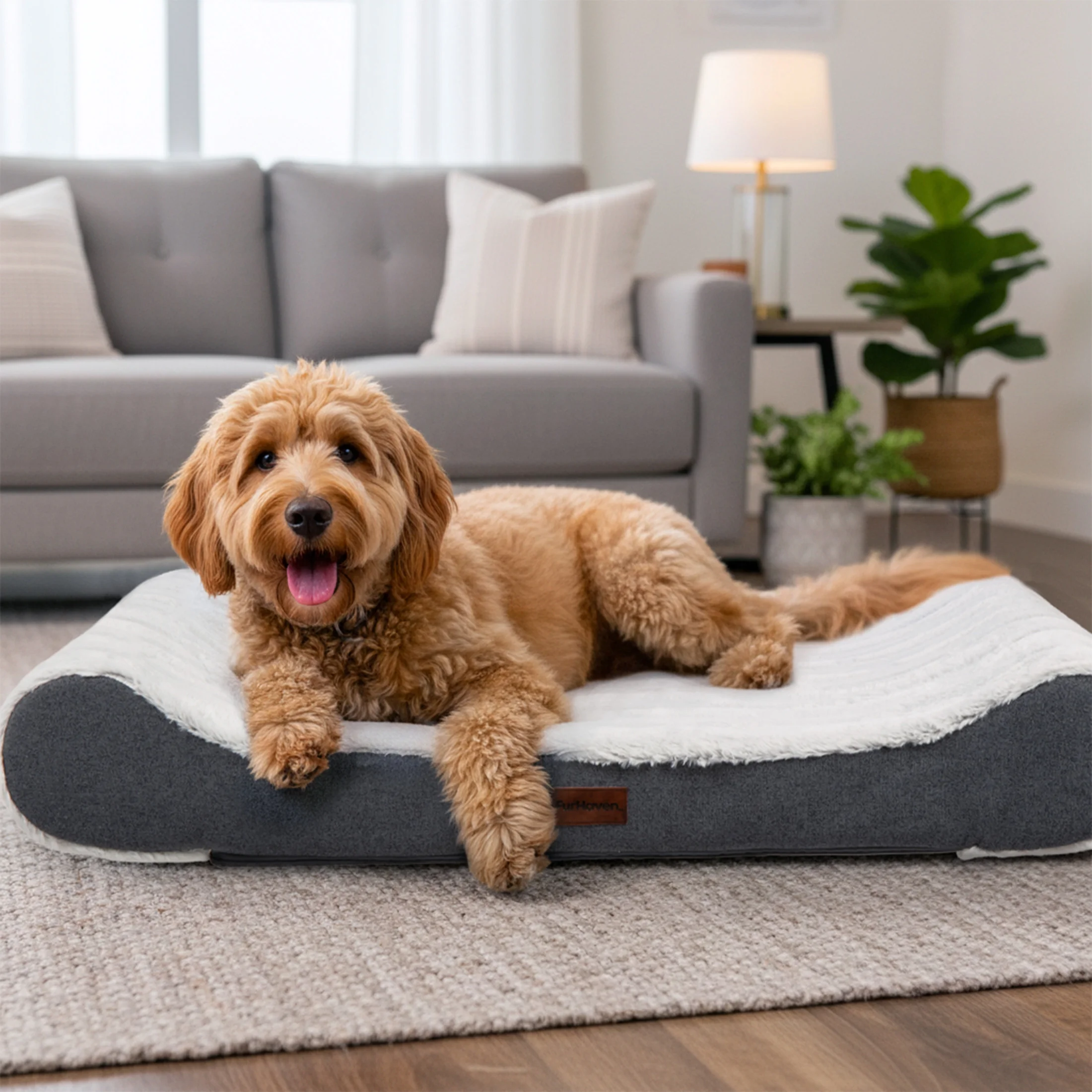 Furhaven Pet Products Luxe Lounger Large Orthopedic Contour Dog Bed, Gray, 38 lb limit