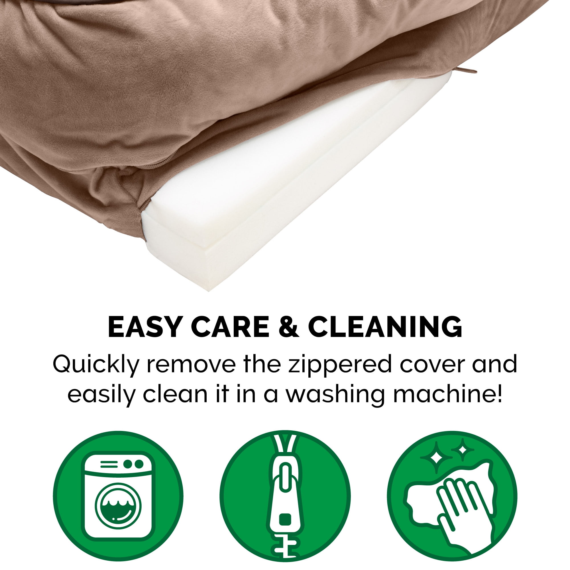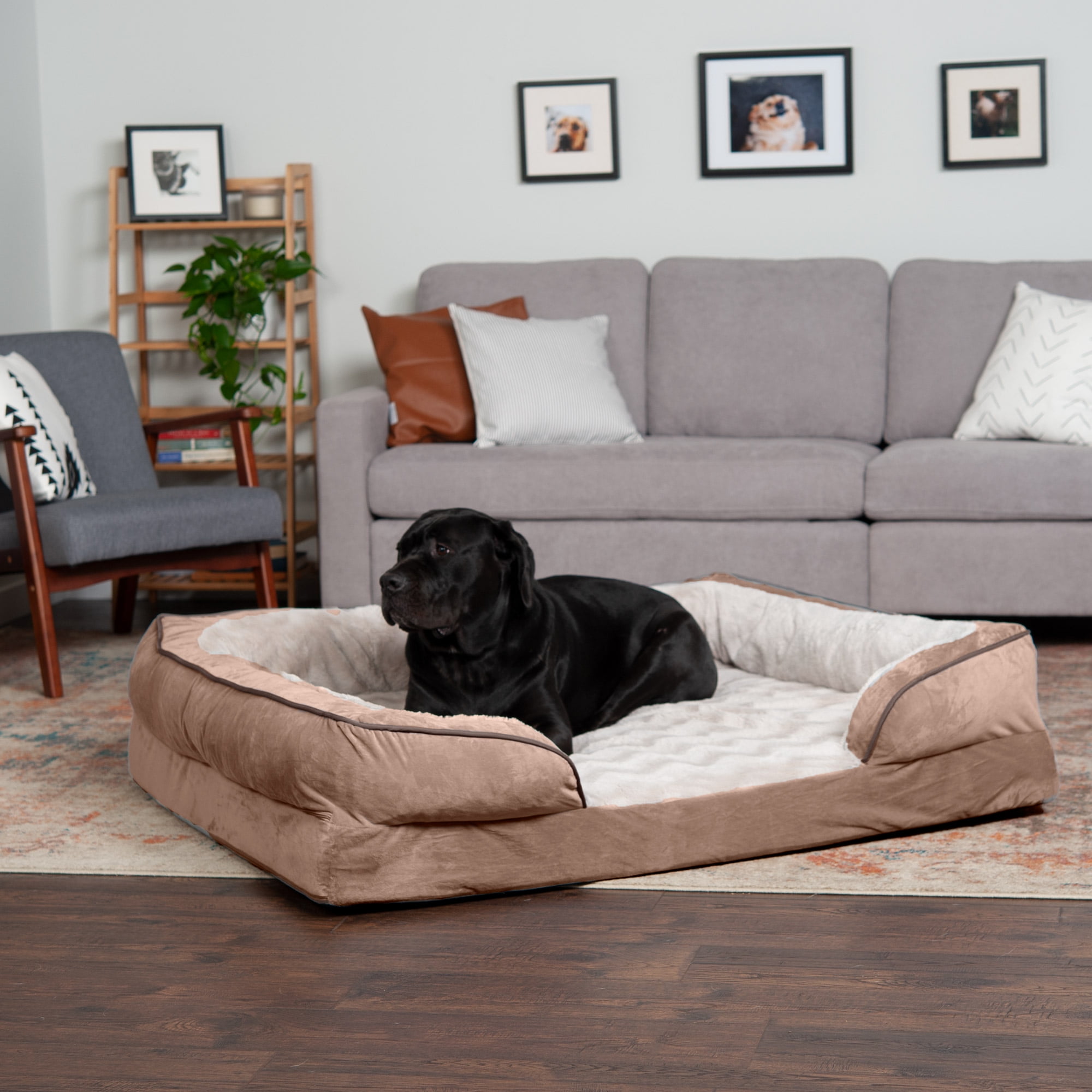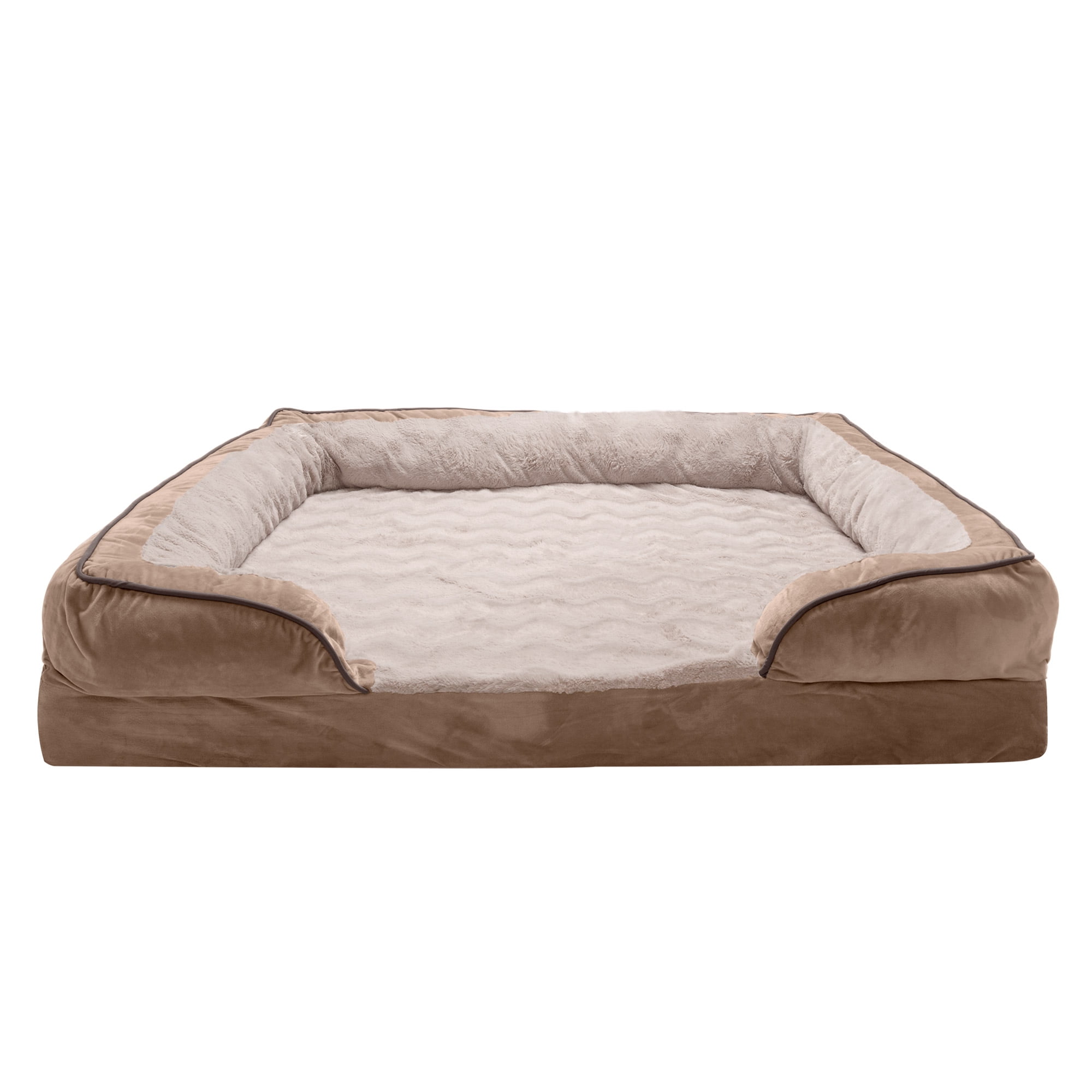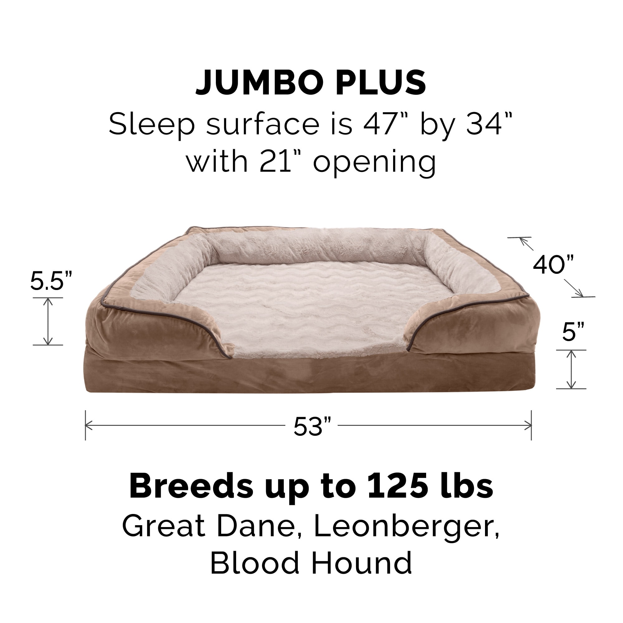 Furhaven Pet Products Solid orthopedic foam base supports joints and pressure points for Dogs & Cats. Wrap around bolsters make great pillows or comfy walls to snuggle against. Zippered design with machine washable fabrics. Soft faux fur sleeping surface. Styled to be your pet’s own personal sofa. Colors: Brownstone Granite Gray Celadon Green Sizes & Dimensions: Small – 20″ x 15″ x 6″ base (Sleep Surface: 16.5″ x 11.5″ with 8″ opening) Medium – 30″ x 20″ x 6.5″ base (Sleep Surface: 26″ x 16″ with 12″ opening) Large – 36″ x 27″ x 7.5″ base (Sleep Surface: 31″ x 22″ with 14.5″ opening) Jumbo – 40″ x 32″ x 9.5″ base (Sleep Surface: 34.5″ x 26.5″ with 16″ opening) Jumbo Plus – 53″ x 40″ x 10.5″ base (Sleep Surface: 47″ x 34″ with 21″ opening)