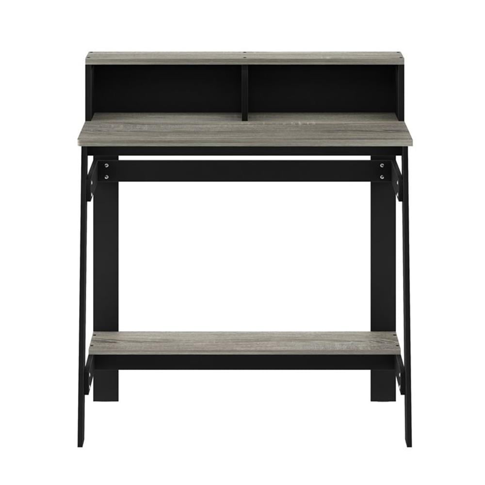 Furinno Simplistic series A-frame study desk is designed to fit your space, your style and your budget. This unit is made of particle board and it has a simple industrial look. The structure is very sturdy and firm with the A-frame design. It has a built-in desk hutch to serve as stationery storage. Features: Material: High quality particle boar, engineered wood, metal Finish: Black, oak gray Simple stylish design yet functional and suitable for any room. Features attached desk hutch and firm construction with natural industrial look. Assembly required. Please refer to instruction. Specifications: Product Dimensions: 35.5″H x 31.6″W x 17.9″D Product Weight: 26.5 lbs