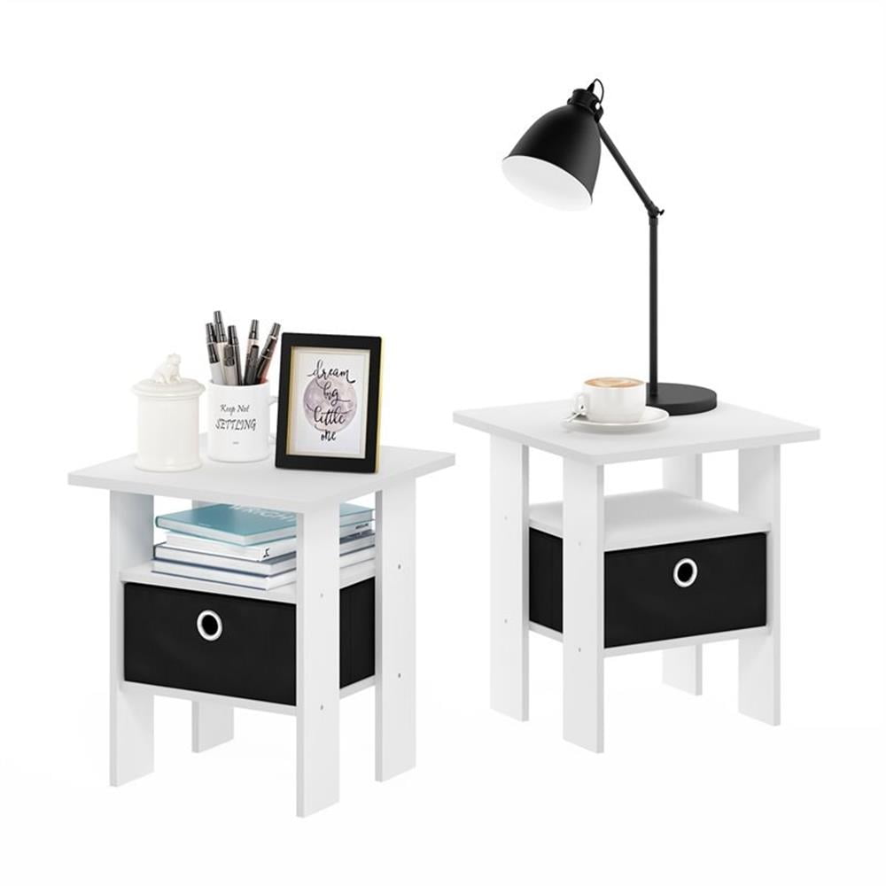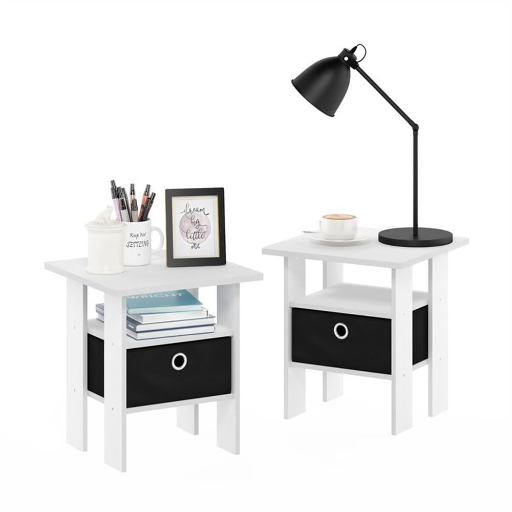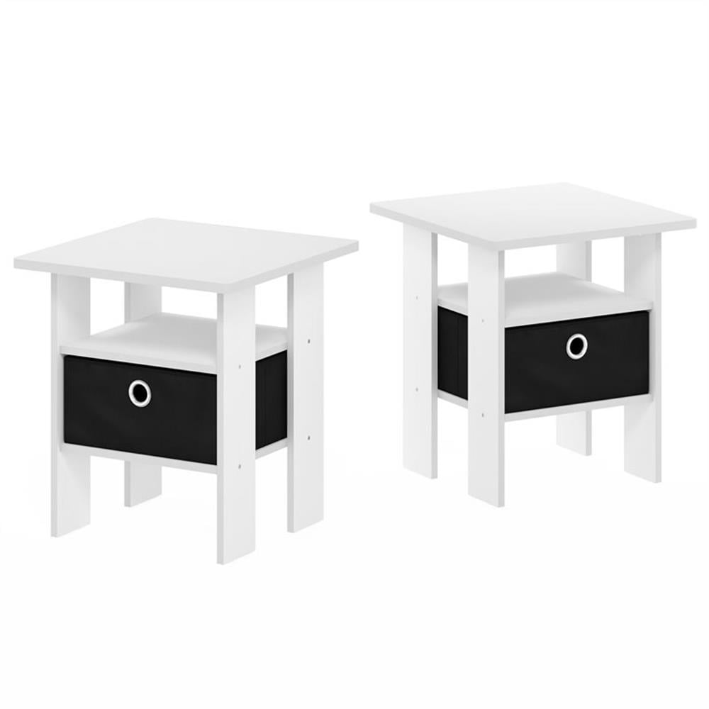 Furinno Andrey End Table Nightstand with Bin Drawer, Set of 2, White/Black