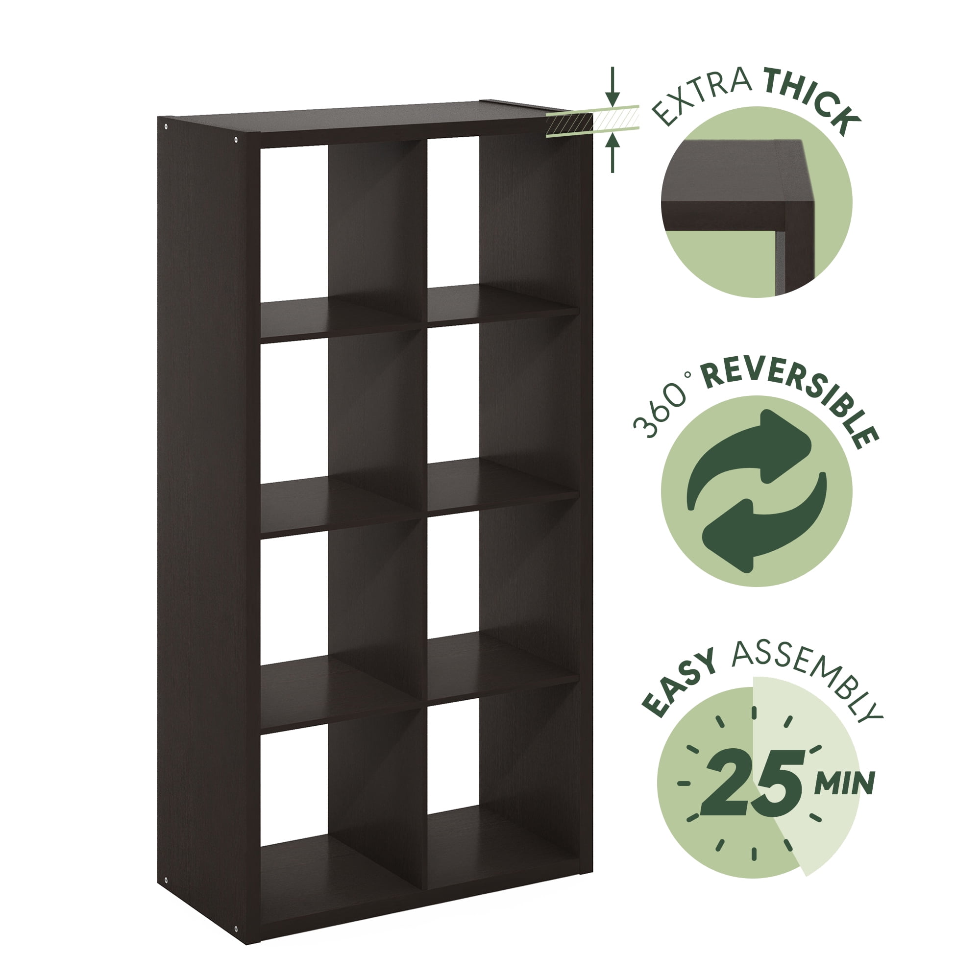 Furinno Cubicle Open Back Decorative Cube Storage Organizer, 8-Cube, Dark Oak
