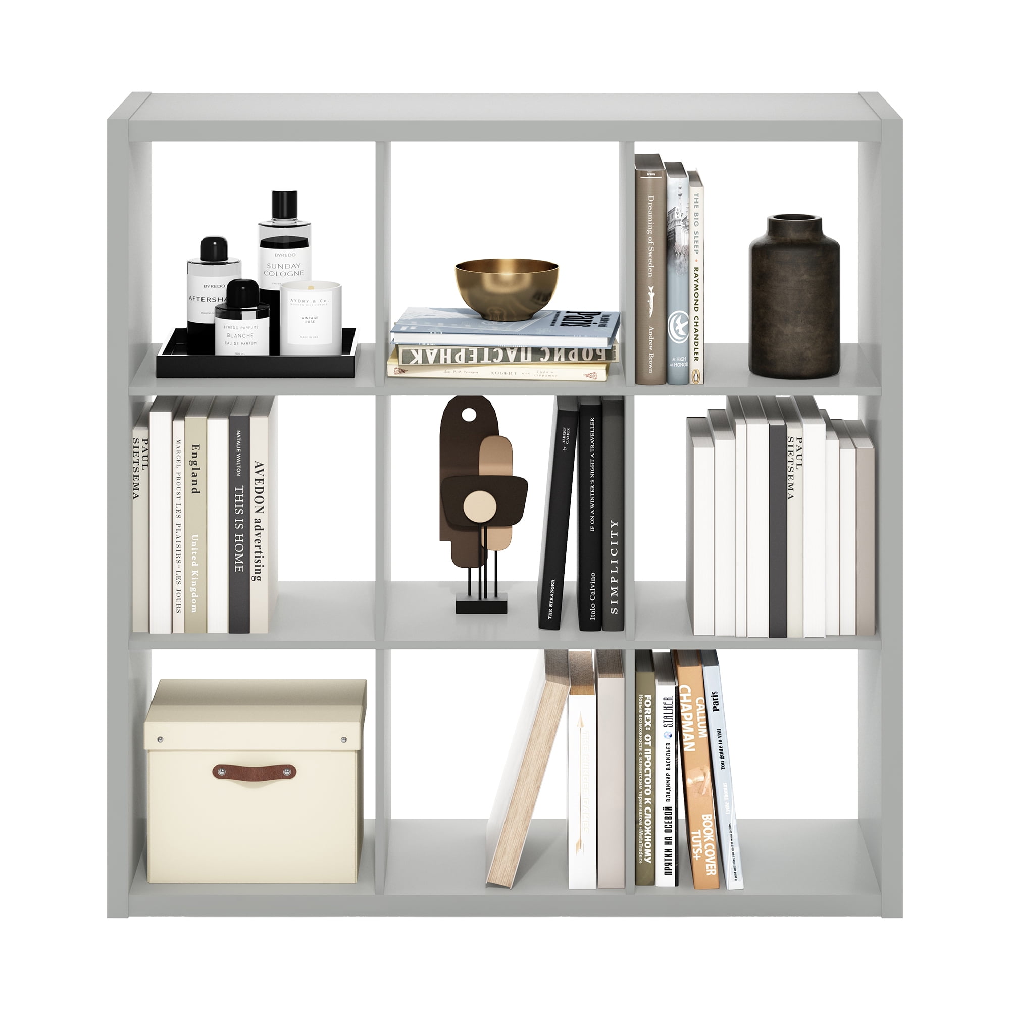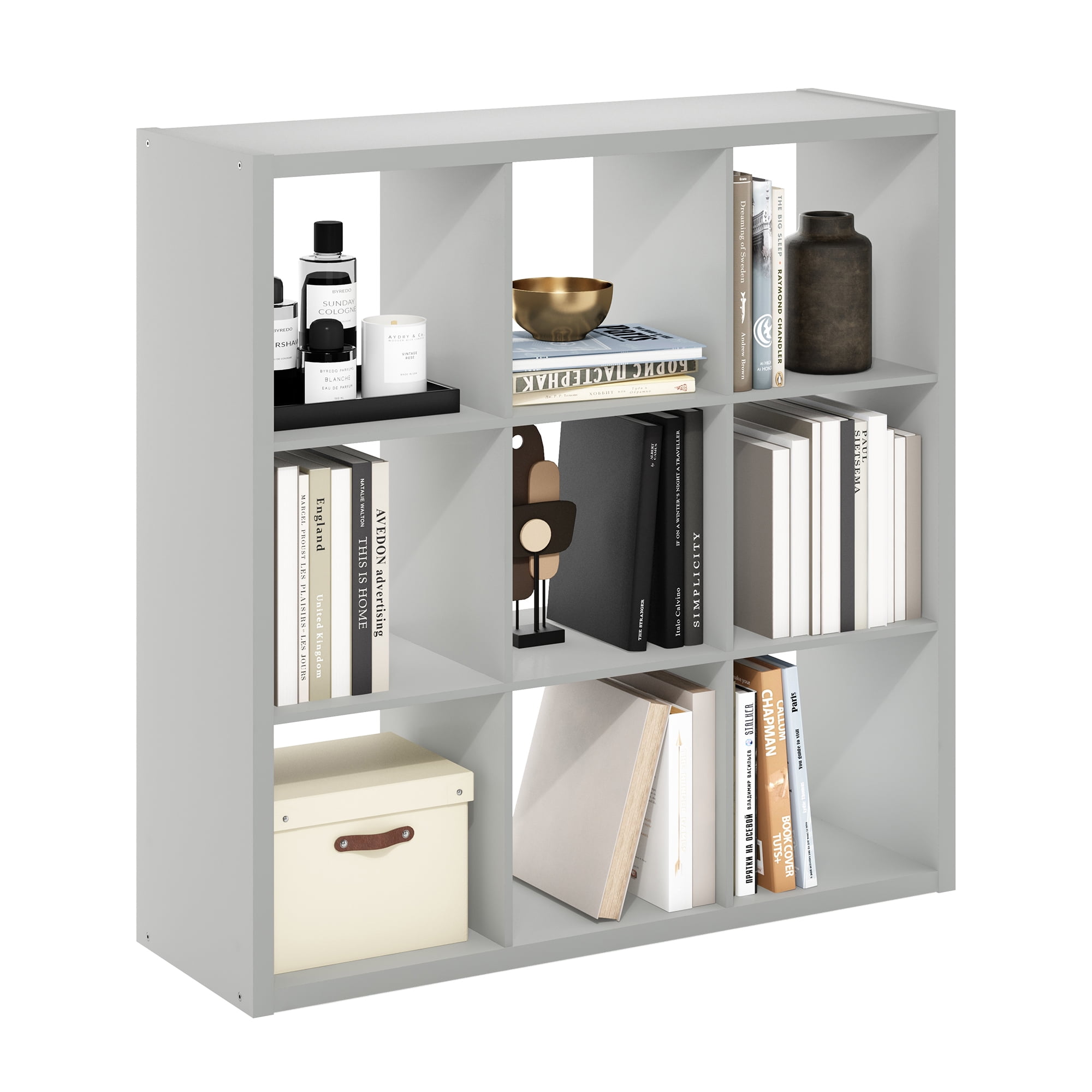 Furinno CUBICLE Book Shelf, 9-Cube Bookshelf, Extra Thick Frame Reversible Bookcase with Open Back, 14.6 x 44 x 44, for Living Room, Bedroom, Home Office, Light Grey