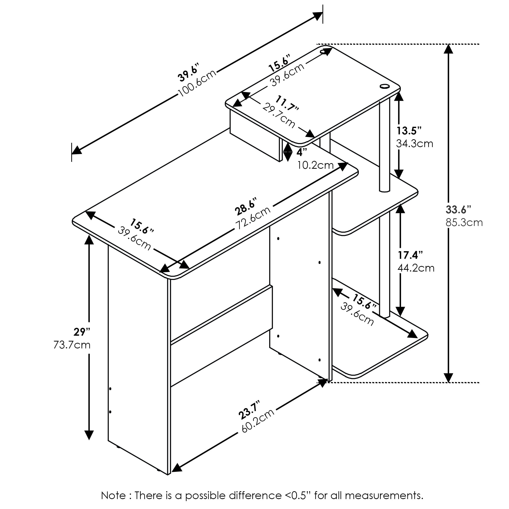 Simple stylish design yet functional and suitable for any room. Fits Space, Fits Budget. Three side shelves for storage and organization of CPU, books, magazines, and folders. The desktop has a capacity of 20 pounds and can accommodate monitors up to 24 inches in size. Features rounded edge to reduce the risk of injury. Product Dimensions: 15.6 (D) x 39.6 (W) x 33.6 (H) inches. Desk Top Dimensions: 15.6 (D) x 28.6 (W) x 29 (H) inches