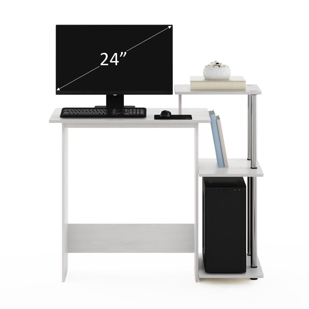 Furinno Efficient Home Laptop Notebook Computer Desk, White Oak/Stainless Steel Get your work down at home and in style with this Furinno Efficient Home Laptop desk. A perfect blend of form and function, this piece brings ample storage space and classic appeal to your space. The sleek finish and clean-lined design let this piece fit in with a variety of settings. It also features a rectangular tabletop and three open shelves for all your storage needs. The computer desk is made of CARB-grade composite wood tested for durability and sturdiness. Assembly is easy with provided step-by-step instructions. Care instructions: wipe clean with clean damped cloth. Avoid using harsh chemicals. Pictures are for illustration purpose. All decor items are not included in this offer. The product is entitled to a 1-year warranty against manufacturer defects. Simple stylish design yet functional and suitable for any room. Fits Space, Fits Budget. Three side shelves for storage and organization of CPU, books, magazines, and folders. The desktop has a capacity of 20 pounds and can accommodate monitors up to 24 inches in size. Features rounded edge to reduce the risk of injury. Product Dimensions: 15.6 (D) x 39.6 (W) x 33.6 (H) inches. Desk Top Dimensions: 15.6 (D) x 28.6 (W) x 29 (H) inches – Color: White Oak/Stainless Steel – Color Family: Multi – Item Depth: 15.6 – Item Height: 33.6 – Item Width: 39.6 – Item Weight: 24.5 – Purpose of usage (comerial/residental): Residential – Item Material: Wood