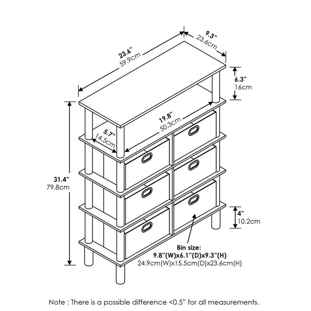 Frans Turn-N-Tube series features a variety of products in different sizes, shapes and colors. This console table is simple and functional; ideal for minimalist. The panels are beautifully finished with refreshing colors that blends well with most home settings. The support of the table are made from sturdy PVC tubes that are tested for strength and durability. This multipurpose table can also be used as an entryway or hallway furniture as well as a standard shelf. It also comes with multiple non-woven bins to help keep things in place and organized. The assembly is very easy with all the hardware provided along with a clear step by step illustrated assembly instructions. No tools are required during assembly process, just simply secure the panels and tubes by twisting, turning and stacking. Care instructions: Wipe clean with clean damped cloth. Avoid using harsh chemicals. Pictures are for illustration purpose. Pictures are for illustration purposes only. Features: Material: Engineered wood Finish: Black oak, brown Manufactured from CARB Grade composite wood for enhanced durability and longer product life span. Comes in multiple color options for easy customization. Non-woven bins included for easy storage and organization. Suitable for any room and easy blend in with existing home decor. Specifications: Product Dimensions: 31.42″H x 23.62″W x 9.29″D Product Weight: 16.72 lbs Weight Capacity: 50 lbs