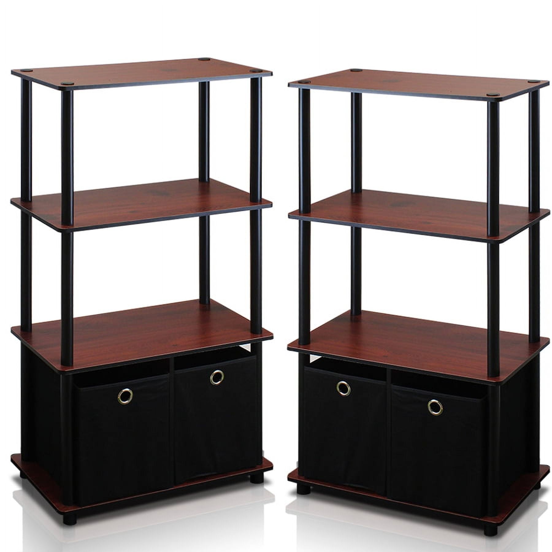 Furinno Go Green 4-Tier Storage Rack Shelving Unit w/Bins, Set of 2