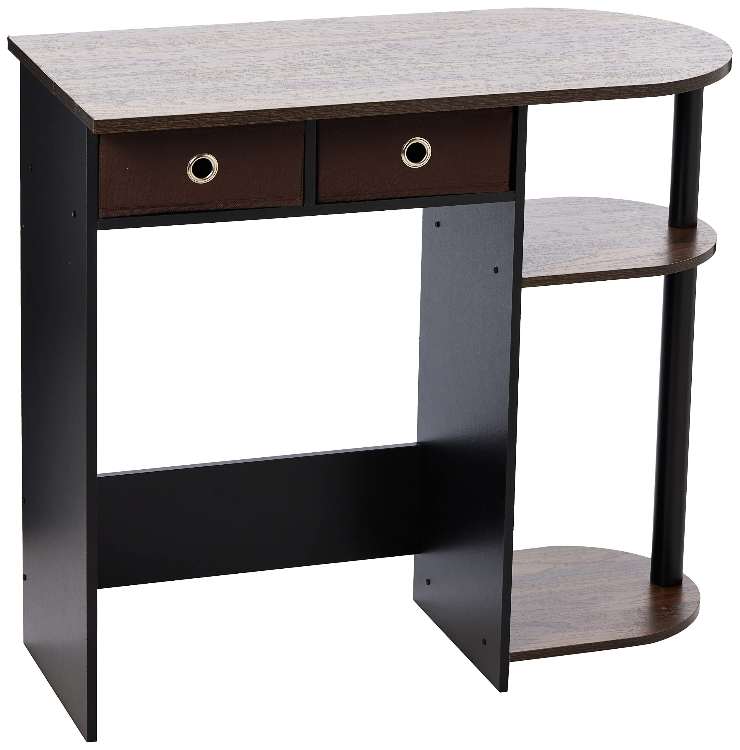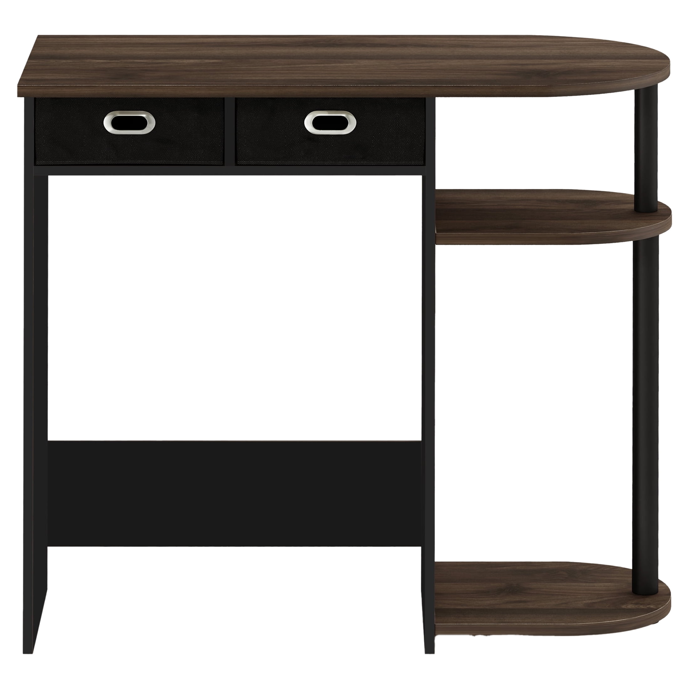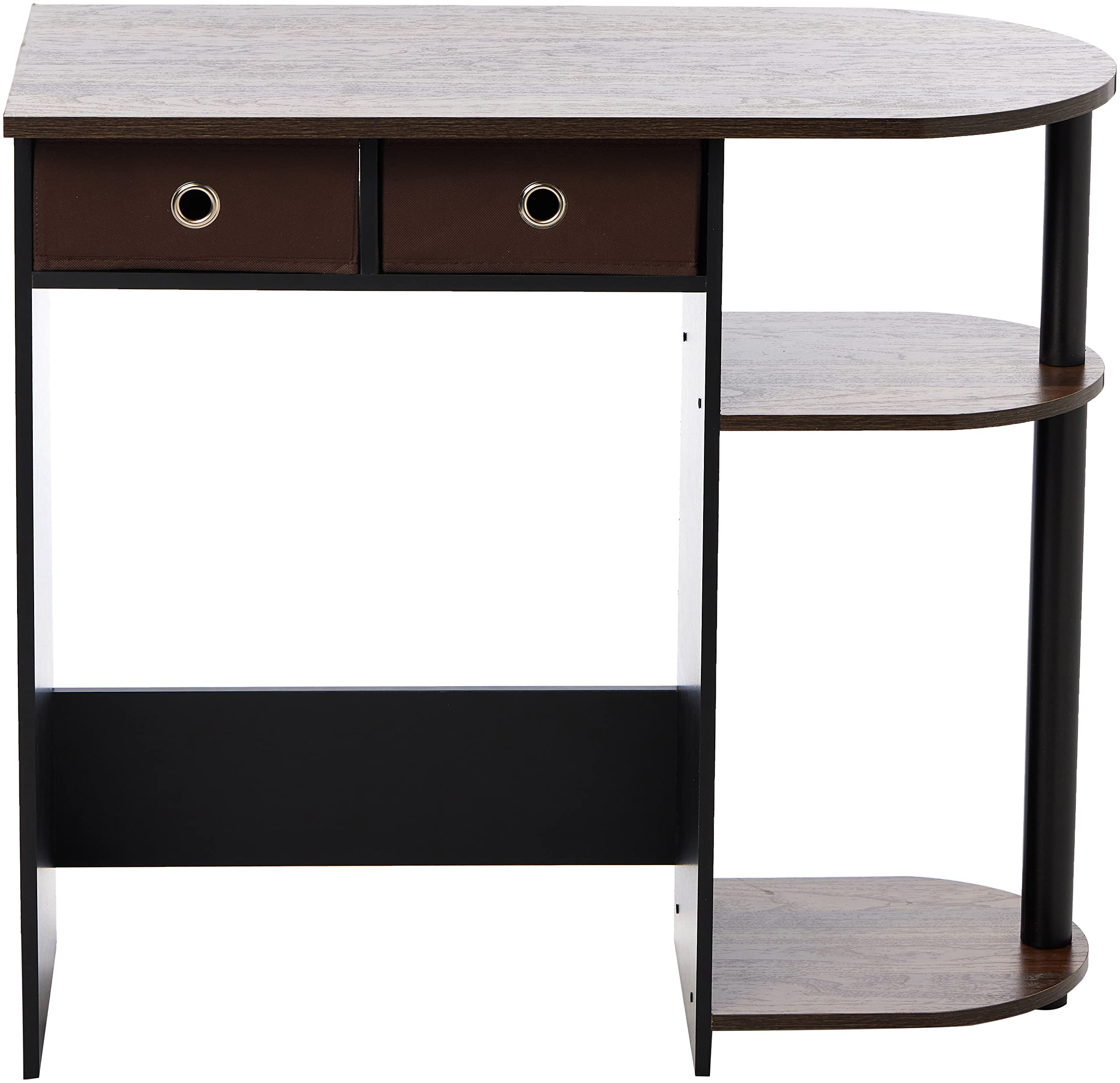Material: Engineered wood Finish: Columbia walnut, black, dark brown COMPACT STYLISH DESIGN: Compact size computer desk with side shelves suitable for small rooms QUALITY MATERIAL: Manufactured from high quality durable composite wood and plastic tubes. ADDING STORAGE SPACE: Comes with non-woven bin drawers for storage of small items FURINNO FITS: Fits in your space, fits on your budget