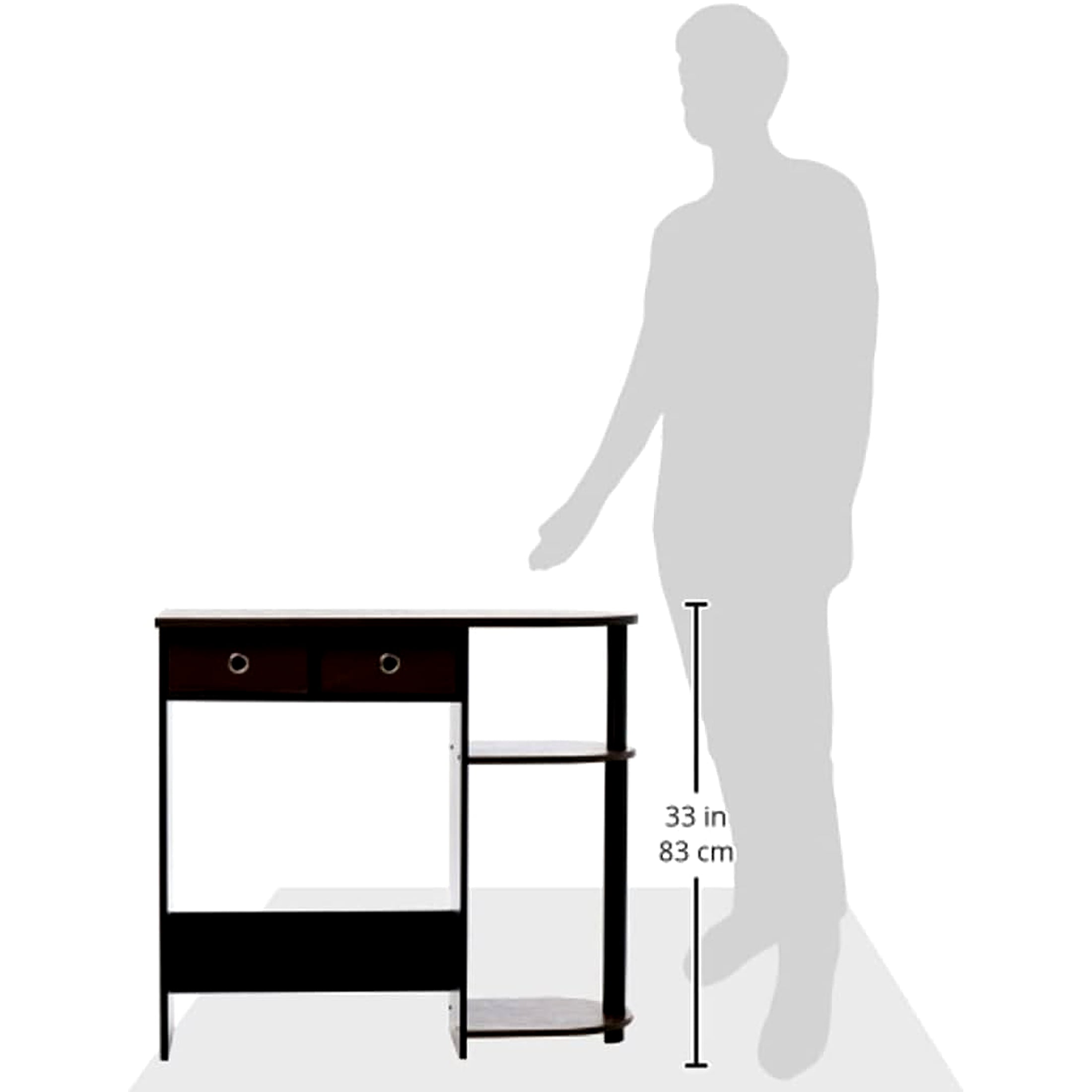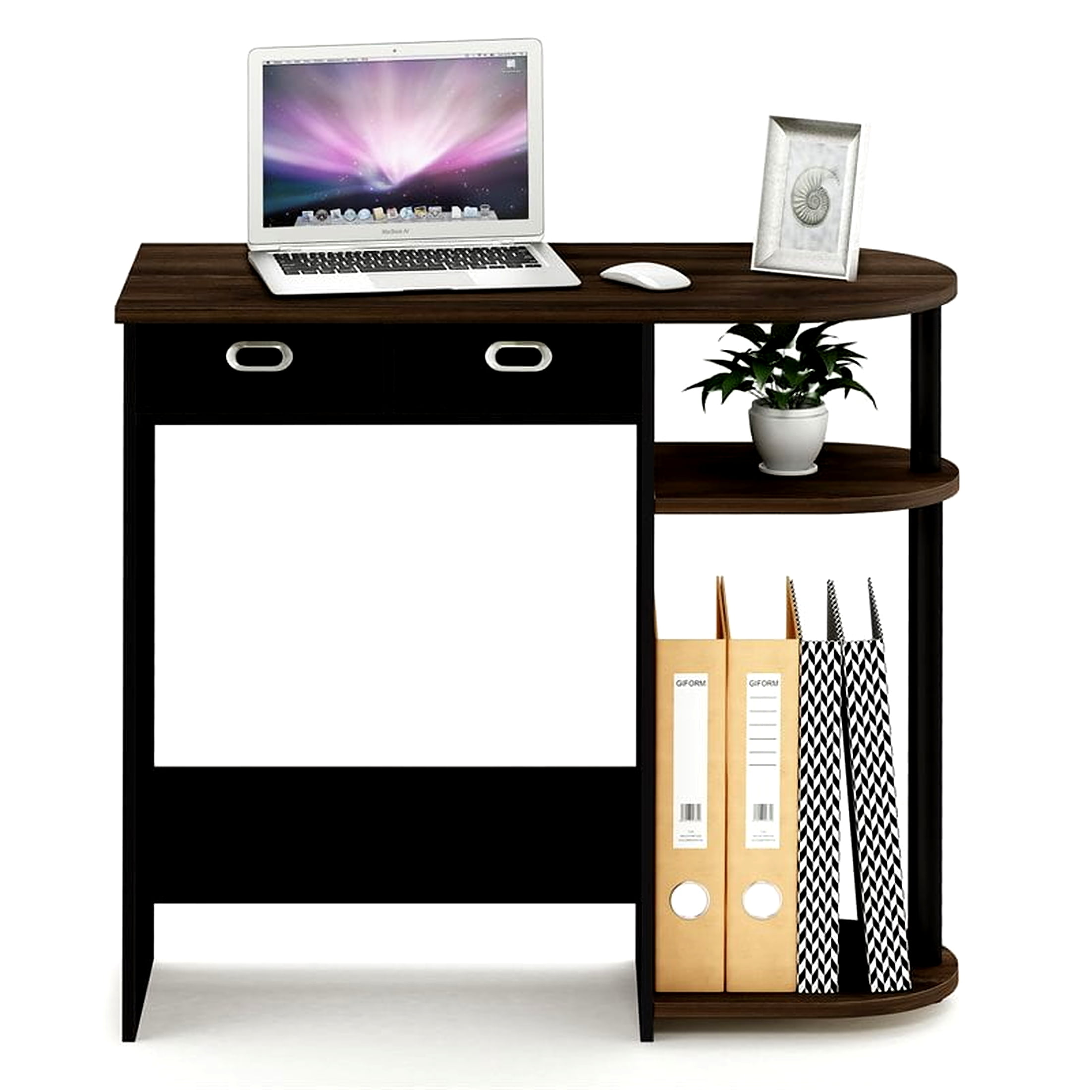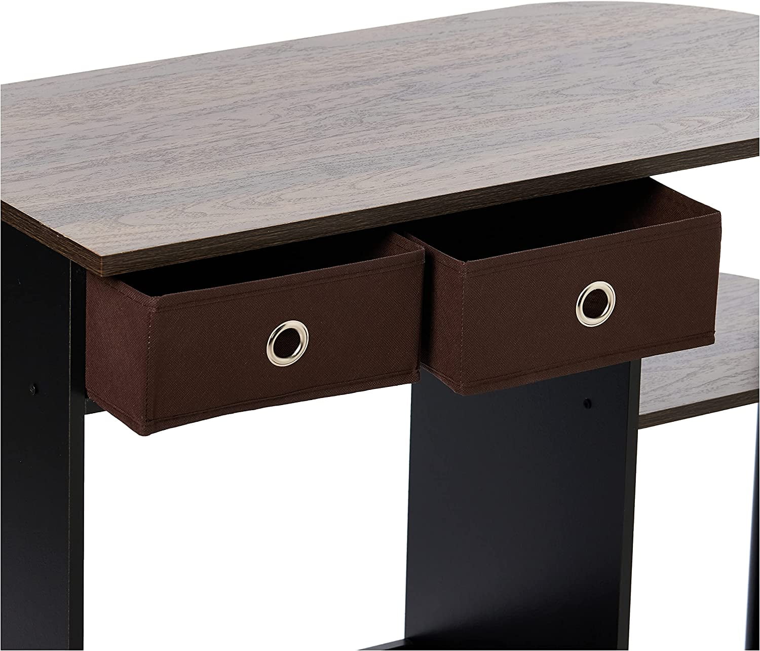 Material: Engineered wood Finish: Columbia walnut, black, dark brown COMPACT STYLISH DESIGN: Compact size computer desk with side shelves suitable for small rooms QUALITY MATERIAL: Manufactured from high quality durable composite wood and plastic tubes. ADDING STORAGE SPACE: Comes with non-woven bin drawers for storage of small items FURINNO FITS: Fits in your space, fits on your budget