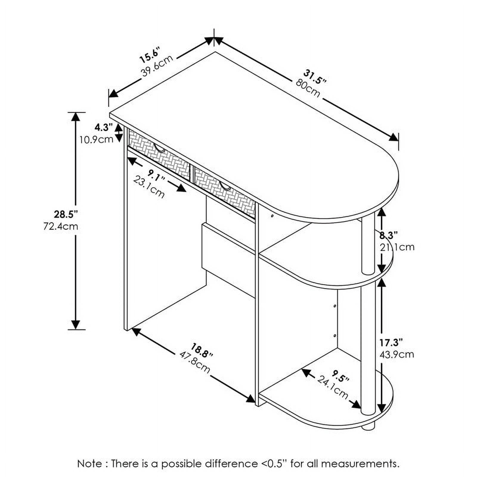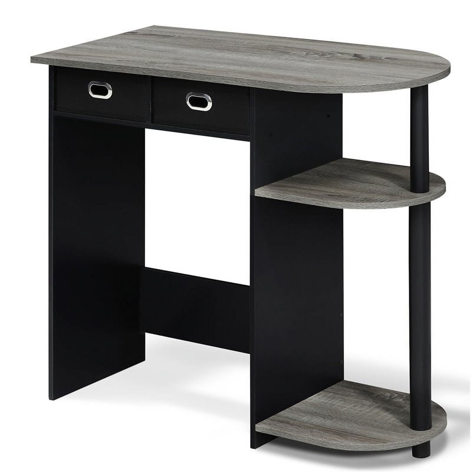 Material: Engineered wood Finish: French oak gray, black COMPACT STYLISH DESIGN: Compact size computer desk with side shelves suitable for small rooms QUALITY MATERIAL: Manufactured from high quality durable composite wood and plastic tubes. ADDING STORAGE SPACE: Comes with non-woven bin drawers for storage of small items FURINNO FITS: Fits in your space, fits on your budget