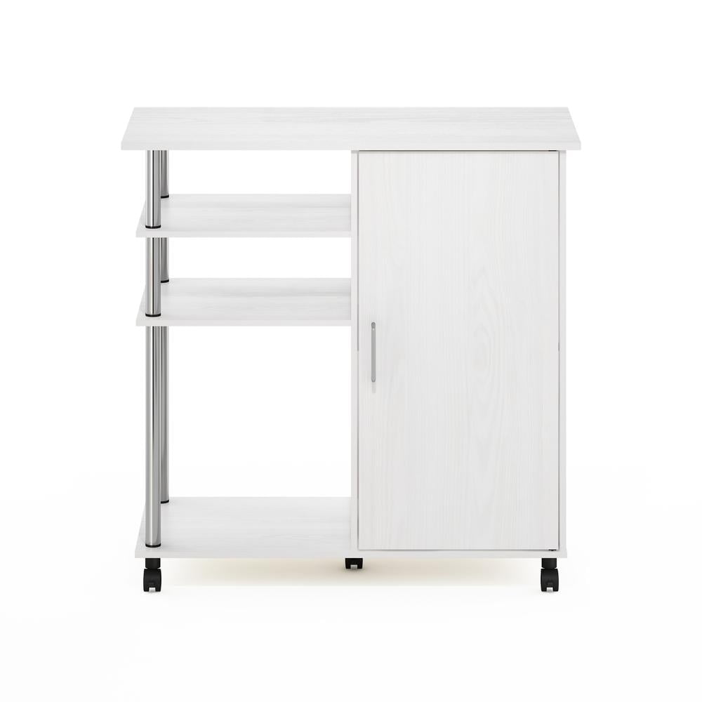 Furinno Helena 4-Tier Utility Kitchen Island and Storage Cart on wheels with Stainless Steel Tubes, White Oak/Chrome Add a counter space that makes the most of your kitchen storage space with Furinno Helena Kitchen Island. The kitchen island comes with a door to keep your kitchen looking tidy and clean. The open shelves on the side are able to accommodate a variety of kitchen supplies. Assembly is easy with the provided hardware and step by step clear assembly instructions. This series is made of CARB Grade composite wood and manufactured in Malaysia. There is no foul smell, durable and the material is stable. A simple attitude towards lifestyle is reflected directly on the design of Furinno Furniture, creating a trend of simply nature. Care instructions: wipe clean with clean damped cloth. Avoid using harsh chemicals. Pictures are for illustration purpose. All decor items are not included in this offer. – Color: White Oak/Chrome – Material: Wood – Item Depth: 15.7 – Item Height: 35.7 – Item Width: 35.4 – Item Weight: 48.8