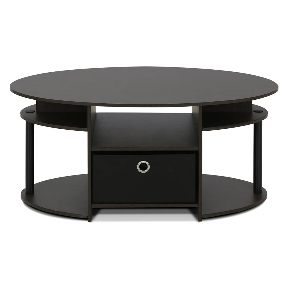 Furinno JAYA Simple Design Oval Coffee Table with Bin is designed to meet your need of fitting in your space and fitting on your budget. The built-in shelves provide additional storage and display spaces for your handy needs such as snacks, books, media equipments, etc. It comes with one non-woven bin for storage of loose stuff. The main material- medium density composite wood is made from recycled materials of rubber trees. All the materials are manufactured in Malaysia and comply with the green rules of production. There is no foul smell, durable and the material is the most stable amongst the medium density composite woods. A simple attitude towards lifestyle is reflected directly on the design of Furinno Furniture, creating a trend of simply nature. All the products are produced and packed 100-percent in Malaysia with 90% – 95% recycled materials. Care instructions: Wipe clean with clean damped cloth. Avoid using harsh chemicals. Pictures are for illustration purpose. Features: Material: CARB grade composite wood, PVC tubes, engineered wood Finish: Walnut, black Simple stylish design. Built-in shelves and non-woven bin for storage and display. Fits in your space, fits on your budget. Suitable for any room and easy blend in with existing home decor. Sturdy on flat surface. Easy 10 minutes assembly. Please see instruction. Rounded edge design prevents potential injuries. Specifications: Product Dimensions: 16.4″H x 35.4″W x 19.7″D Product Weight: 23.15 lbs
