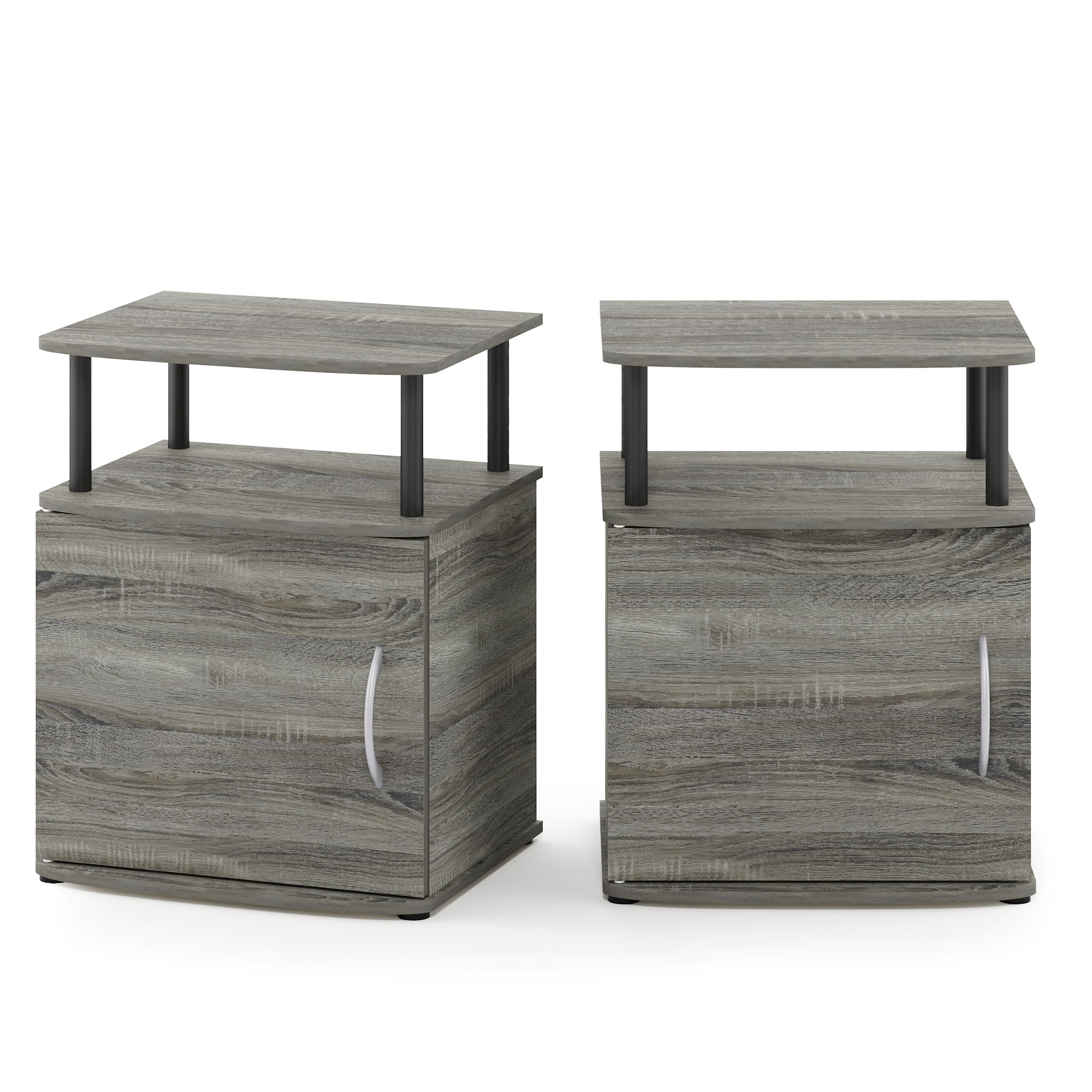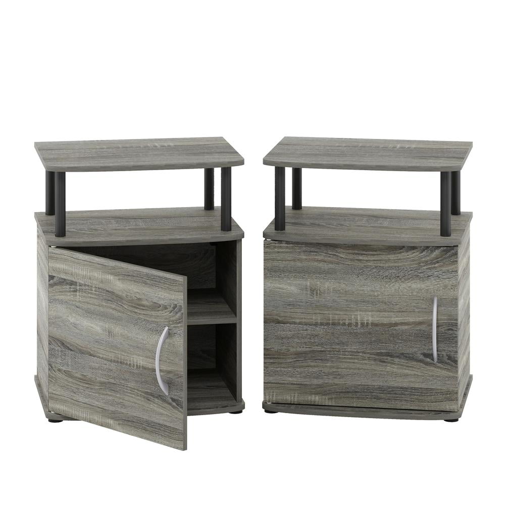 Furinno JAYA Utility Design End Table, Set of Two, French Oak Grey/Black
