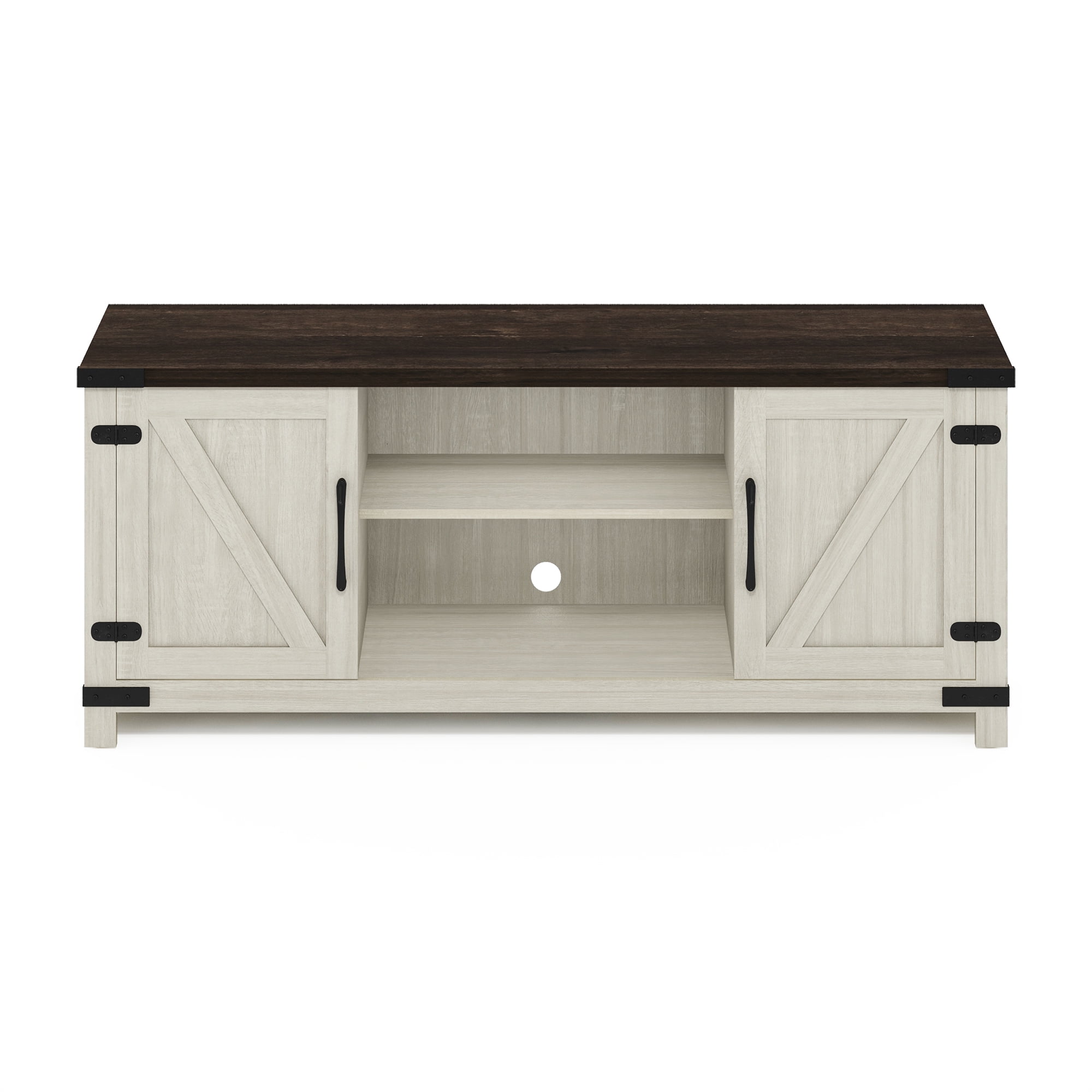 Furinno Jensen Farmhouse TV Cabinet with Barn Door for TV up to 70 Inch, Ebony/White Wash