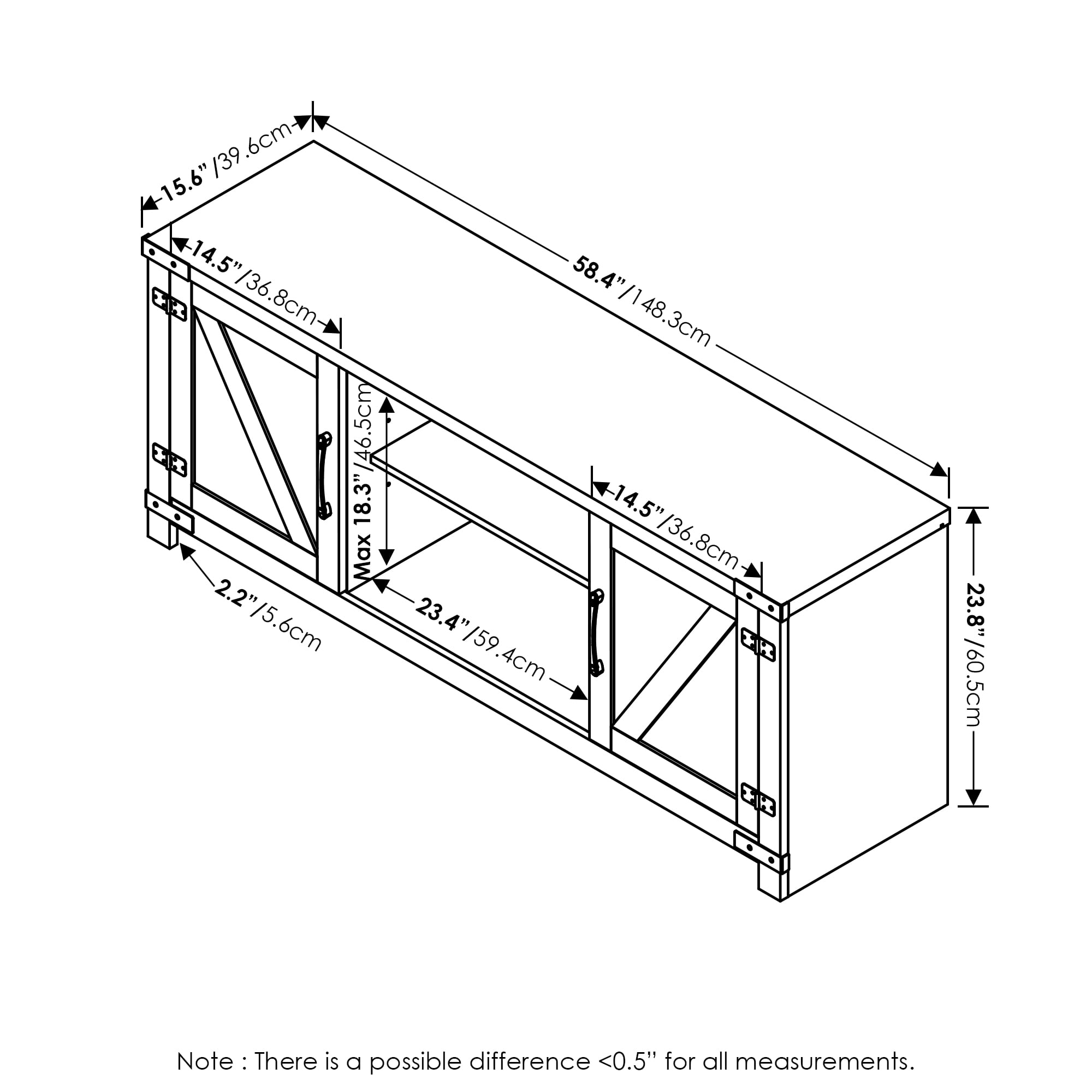 The modern and traditional farmhouse style increases the aesthetic of your living room. Fits TVs up to 60 Inch, top surface supports up to 190 lbs. Features adjustable shelves hold up to 55 lbs each. Manufactured from CARB Grade composite wood. Features two doors for extra storage space to better allocate and organize your living space.