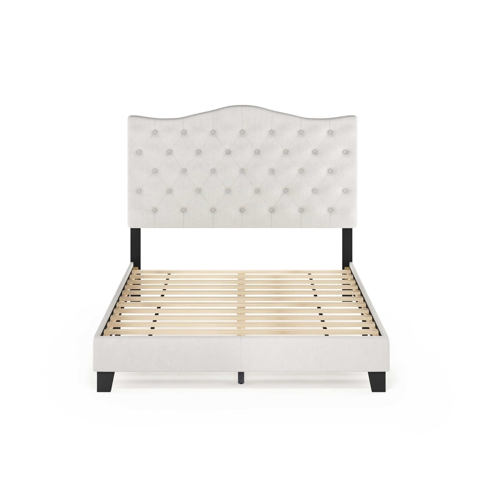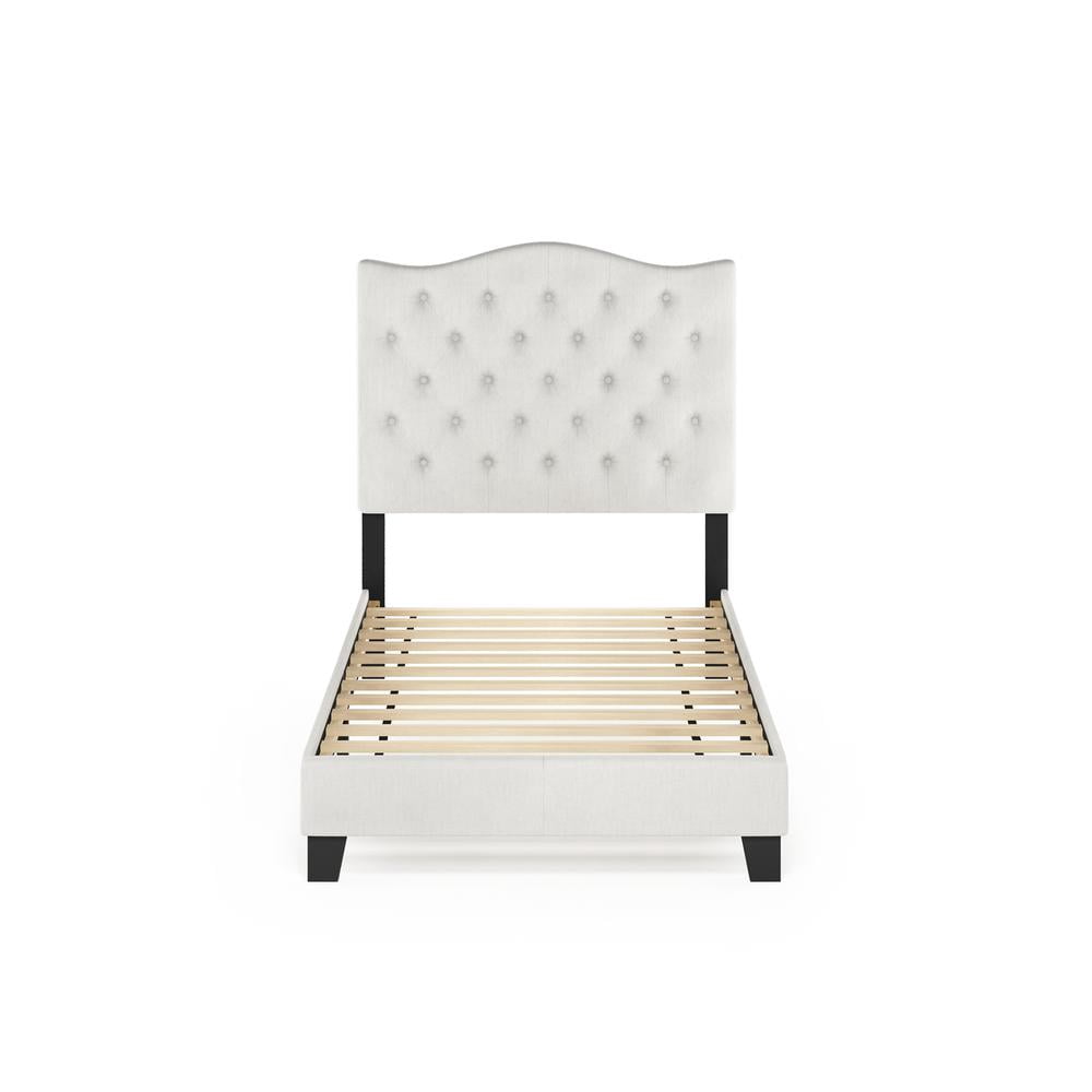 Button tufted headboard and low profile footboard style frame Available in multiple size options: Twin, Full, Queen, and King Cushioned padding for added comfort