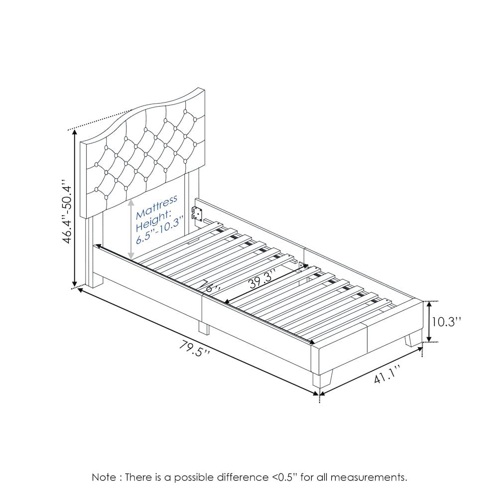 Furinno Lille Button Tufted Bed Frame, Linen, Twin