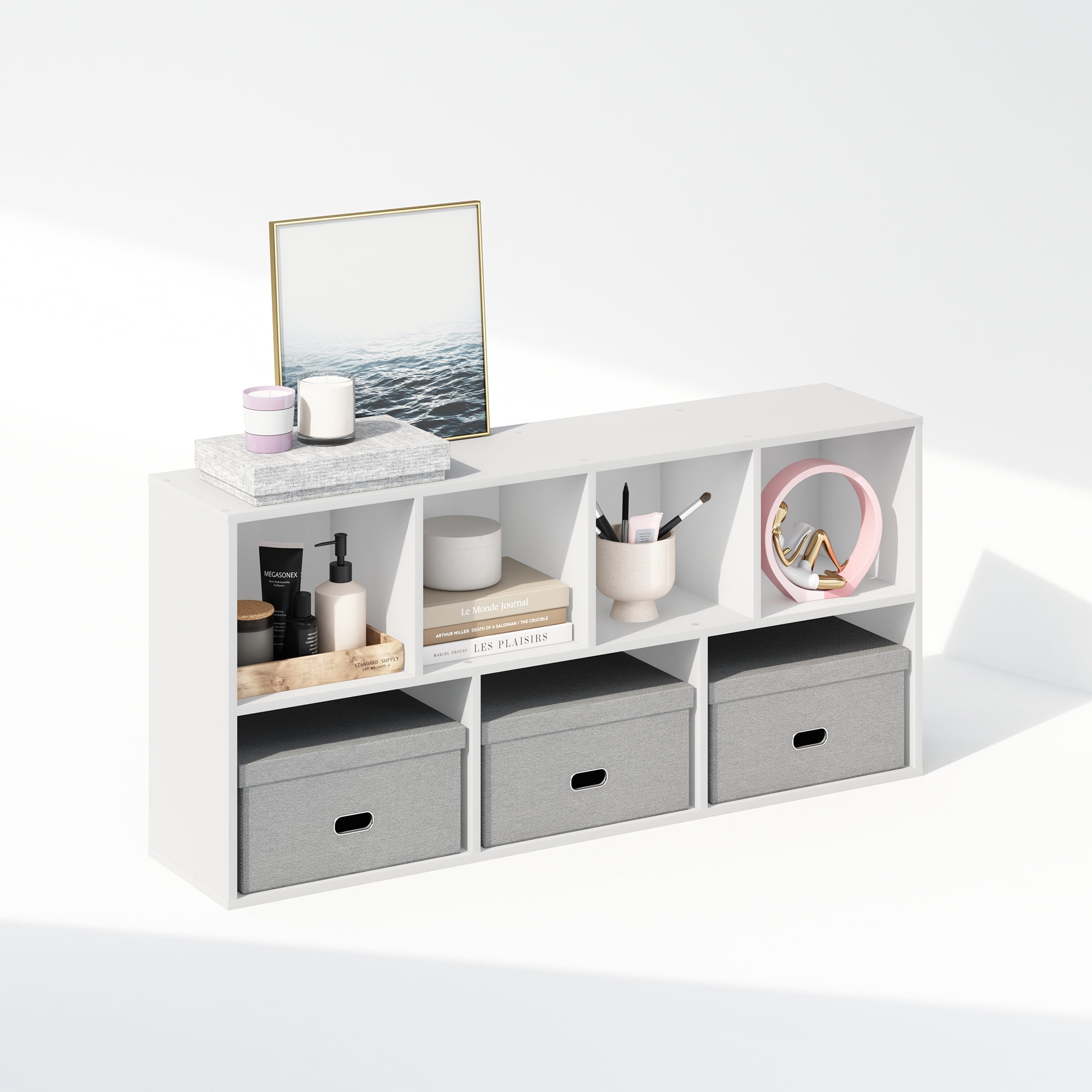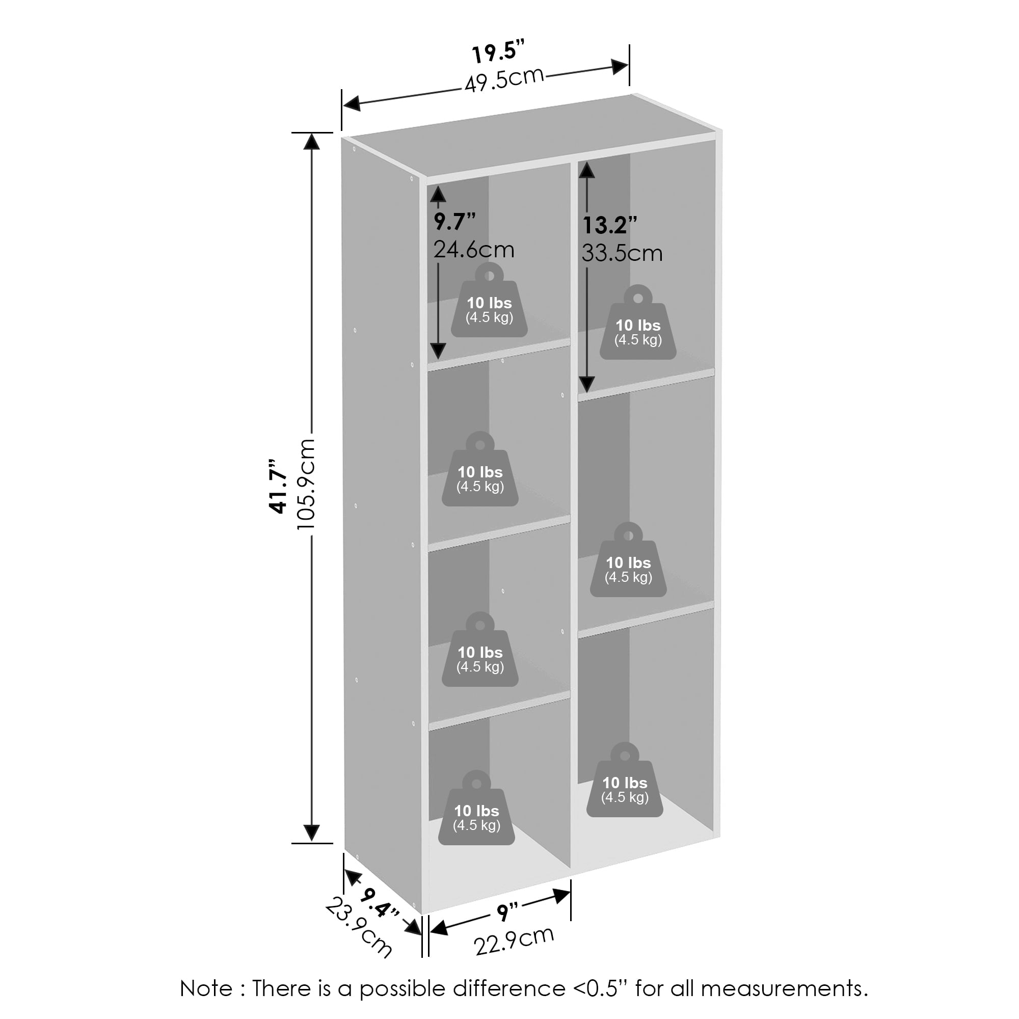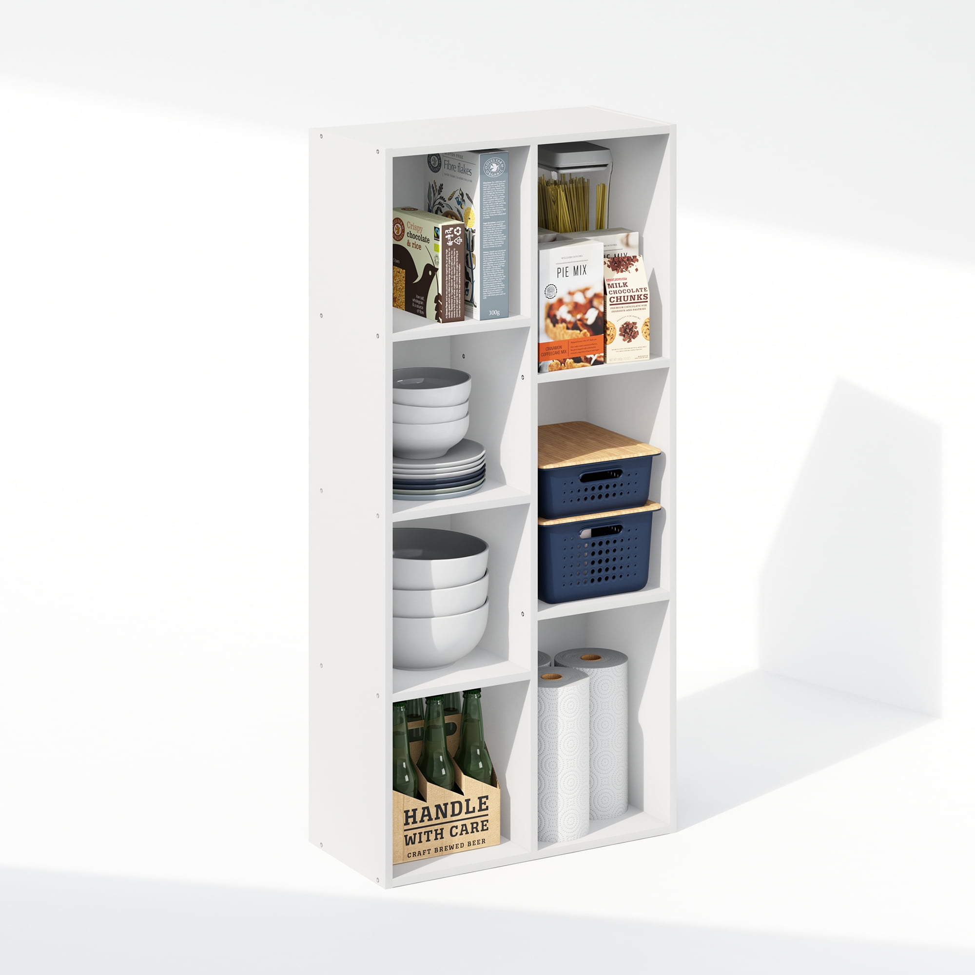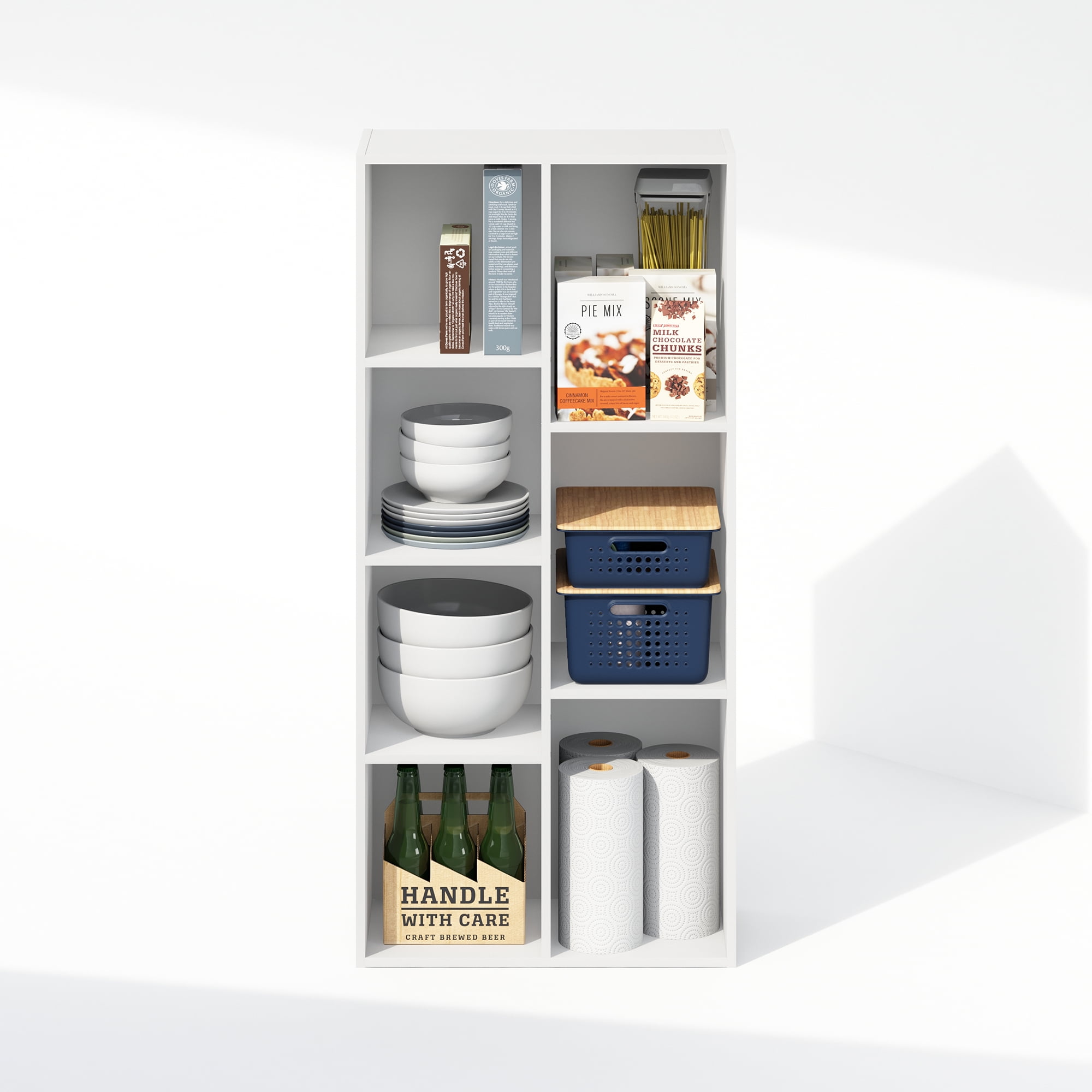 Furinno Luder 7-Cube Vertical Bookcase Particle Board White, 9.40″ x 19.50″ x 41.70″ Sleek modern design with a compact space-saving structure that fits seamlessly into a closet or living space Can be used both vertically and horizontally for versatile storage solutions Features 7 cubes offering easy access and an attractive way to display your items Manufactured from high-quality durable composite wood CARB-compliant Composite wood carries the Programme for the Endorsement of Forest Certification (PEFC)