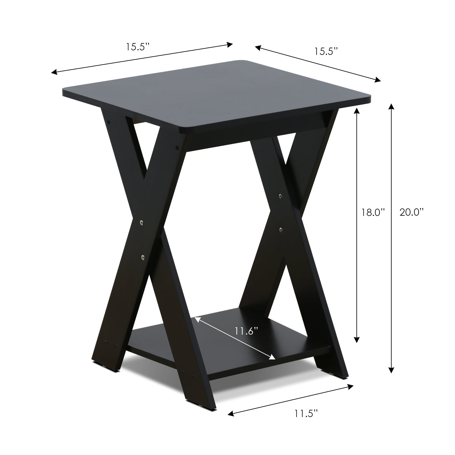 Furinno Cross leg end table is stylish yet functional and space-saving for your home. A simple attitude towards lifestyle is reflected directly on the design of Furinno furniture, creating a trend of simply nature. This piece is the perfect height for use next a chair or sofa, and extra bottom shelf allowing plenty of space for additional storage and display. It is easy to assemble and install. All the products are produced & packed 100% in Malaysia. Please follow the care instruction that comes in the package for details. Pictures are for illustration purpose. All decor items are not included in this offer Features: Material: MDF, composite wood, engineered wood Finish: Espresso Feature set of 2 Ship ready to assemble, includes an instruction paper for easy assembly Rounded edge design prevents children from potential injuries. Specifications: Product Dimensions: 20″H x 15.55″W x 15.55″D Product Weight: 8.8 lbs Weight Capacity: (Top shelf) 10 lbs; (Bottom shelf) 6 lbs