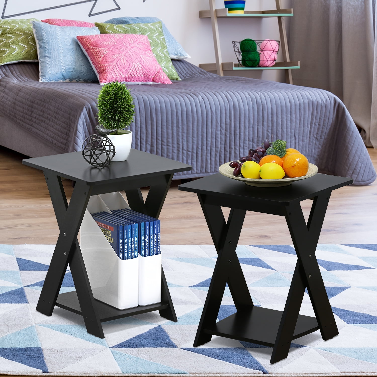 Furinno Modern Simplistic Criss-Crossed End Table,Espresso, Set of 2
