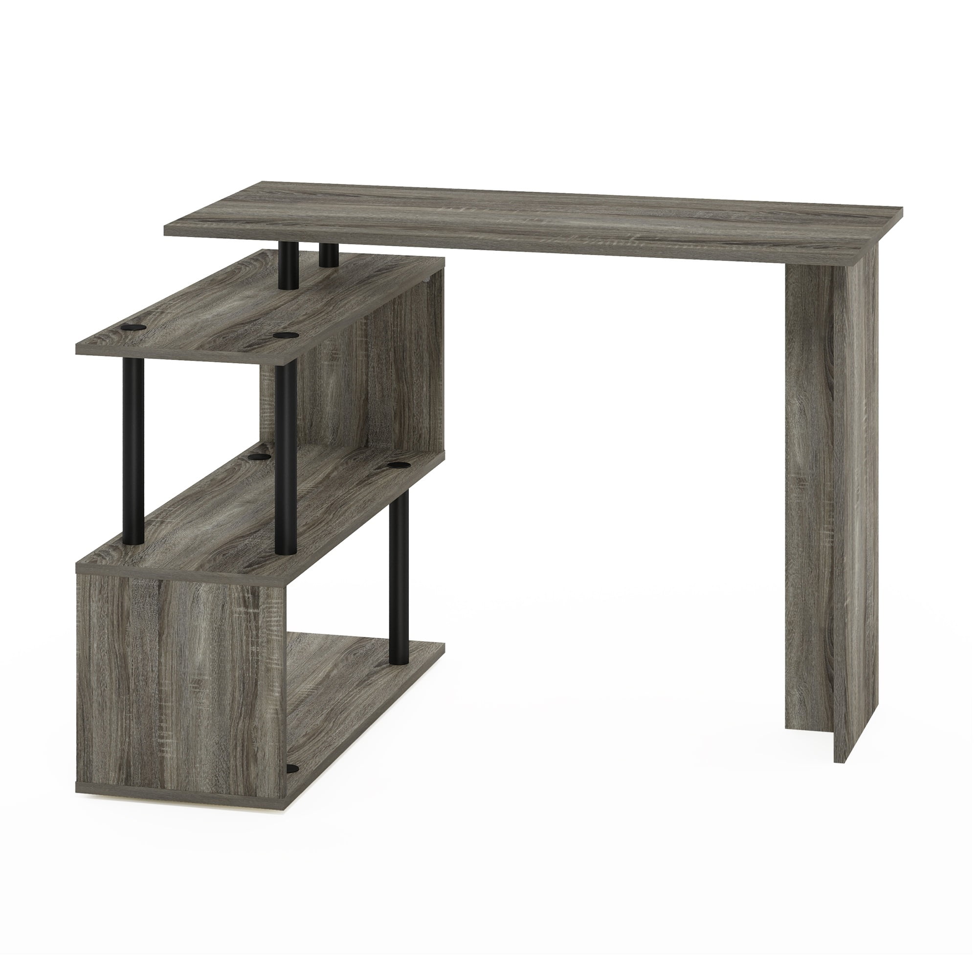 Furinno Moore L-Shape Computer Desk with 3-Tier Shelves, French Oak/Black