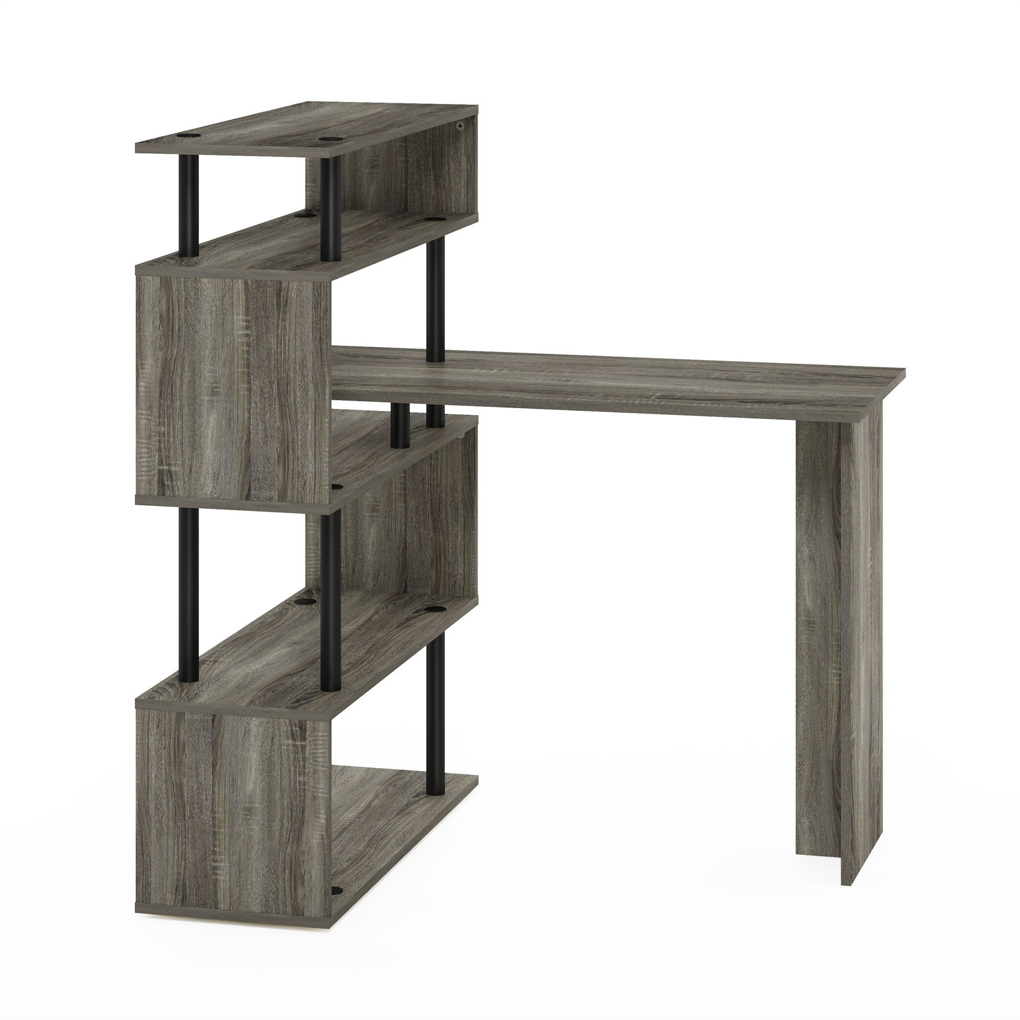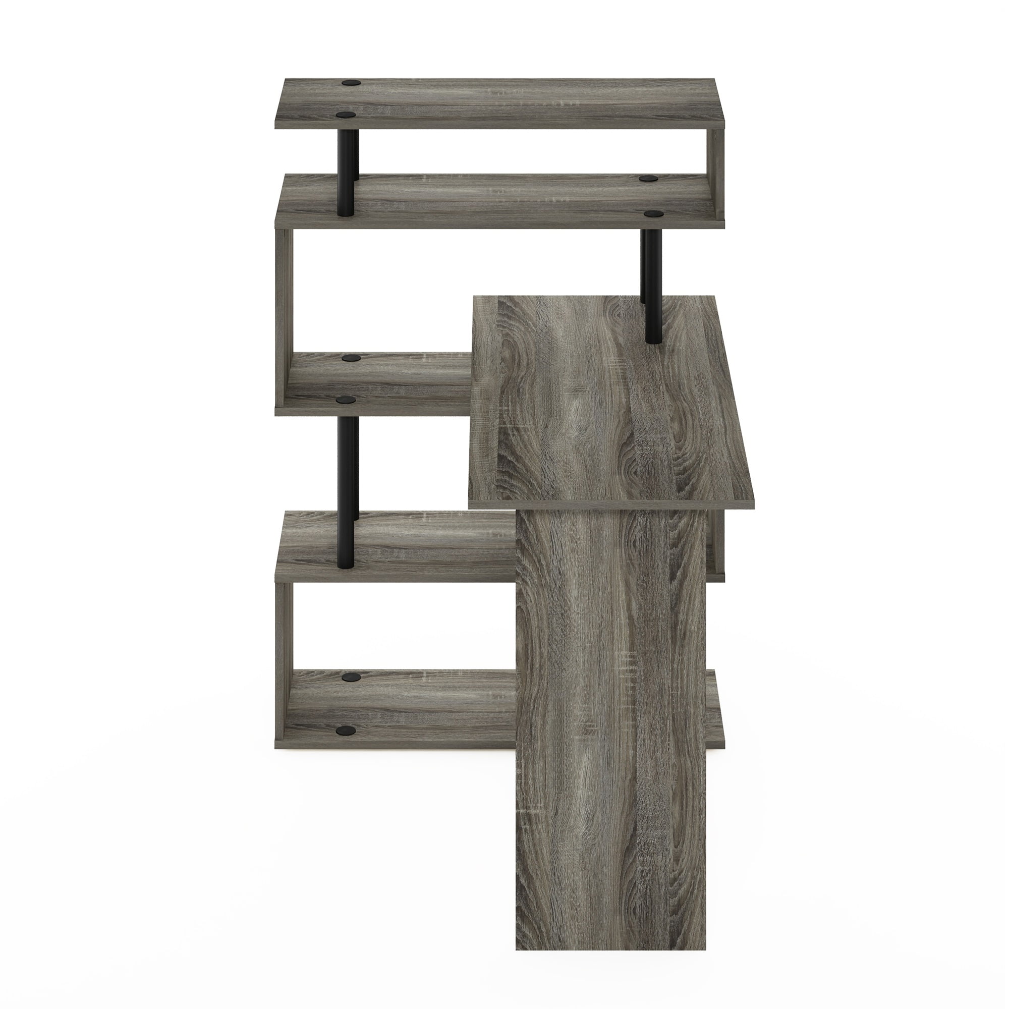 Furinno Moore L-Shape Computer Desk with 5-Tier Shelves, French Oak/Black