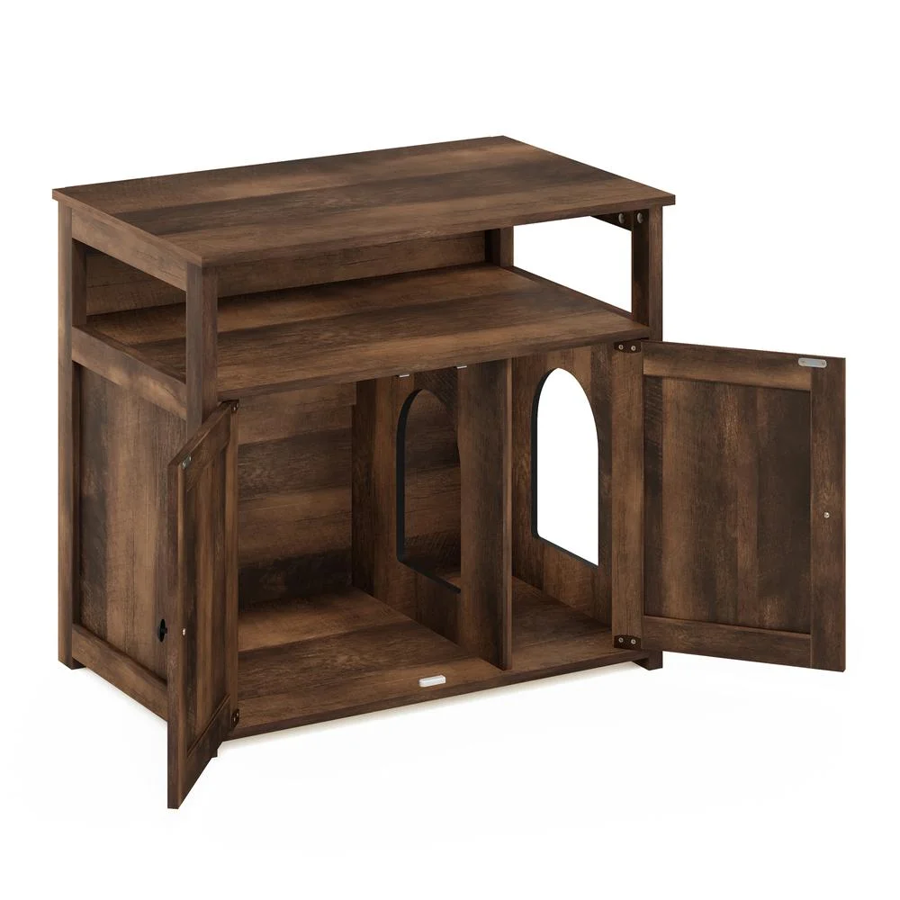Furinno Peli Farmhouse Cat Litter Cabinet Storage with 2 Doors, Rustic Brown The Furinno Peli Farmhouse Cat Litter Cabinet Storage with 2 Doors in Rustic Brown is the perfect combination of style and functionality. With its farmhouse-inspired design and spacious interior, this cabinet provides a discreet solution for storing your cat’s litter box. The two-door design allows for easy access while concealing the litter box from view, keeping your living space clean and tidy. The Cat Litter Box is made of CARB-grade composite wood tested for durability and sturdiness. Assembly is easy with provided step-by-step instructions. Care instructions: wipe clean with a clean damped cloth. Avoid using harsh chemicals. Pictures are for illustration purposes. All decor items are not included in this offer. The product is entitled to a 1-year warranty against manufacturer defects. Fits Space,Fits Budget. The cat litter cabinet offers a practical and stylish solution for concealing your cat’s litter box. Fits Space, Fits Budget. The enclosure is designed to accommodate most standard-sized litter boxes, providing ample room for your cat to move comfortably. The top surface of the enclosure can be utilized as additional storage or display space for decor items. Manufactured from high-quality durable composite wood, CARB-compliant composite wood carrying the Programme for the Endorsement of Forest Certification (PEFC). Product Dimension: 31.5 (W) x 28.43 (H) x 21.26 (D) Inches. – Finish Color: Rustic Brown – Item Depth: 21.26 – Item Height: 28.43 – Item Width: 31.5 – Item Weight: 57.2 – Item Color: Brown – Purpose of usage (comerial/residental): Residential – Item Material: Wood