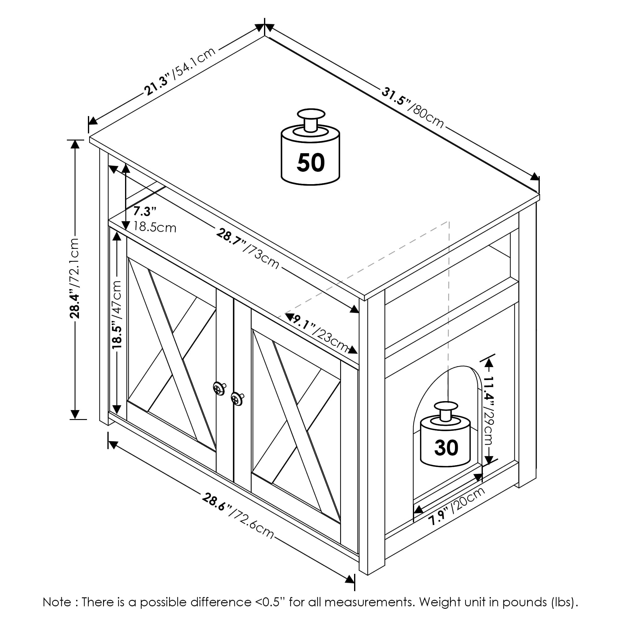 The cat litter cabinet offers a practical and stylish solution for concealing your cat’s litter box. Fits Space, Fits Budget. The enclosure is designed to accommodate most standard-sized litter boxes, providing ample room for your cat to move comfortably. The top surface of the enclosure can be utilized as additional storage or display space for decor items. Manufactured from high-quality durable composite wood, CARB-compliant composite wood carrying the Programme for the Endorsement of Forest Certification (PEFC). Product Dimension: 31.5 (W) x 28.43 (H) x 21.26 (D) Inches.