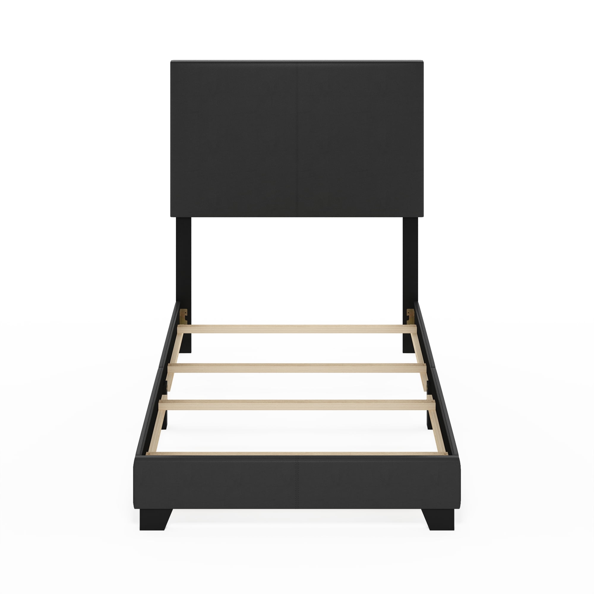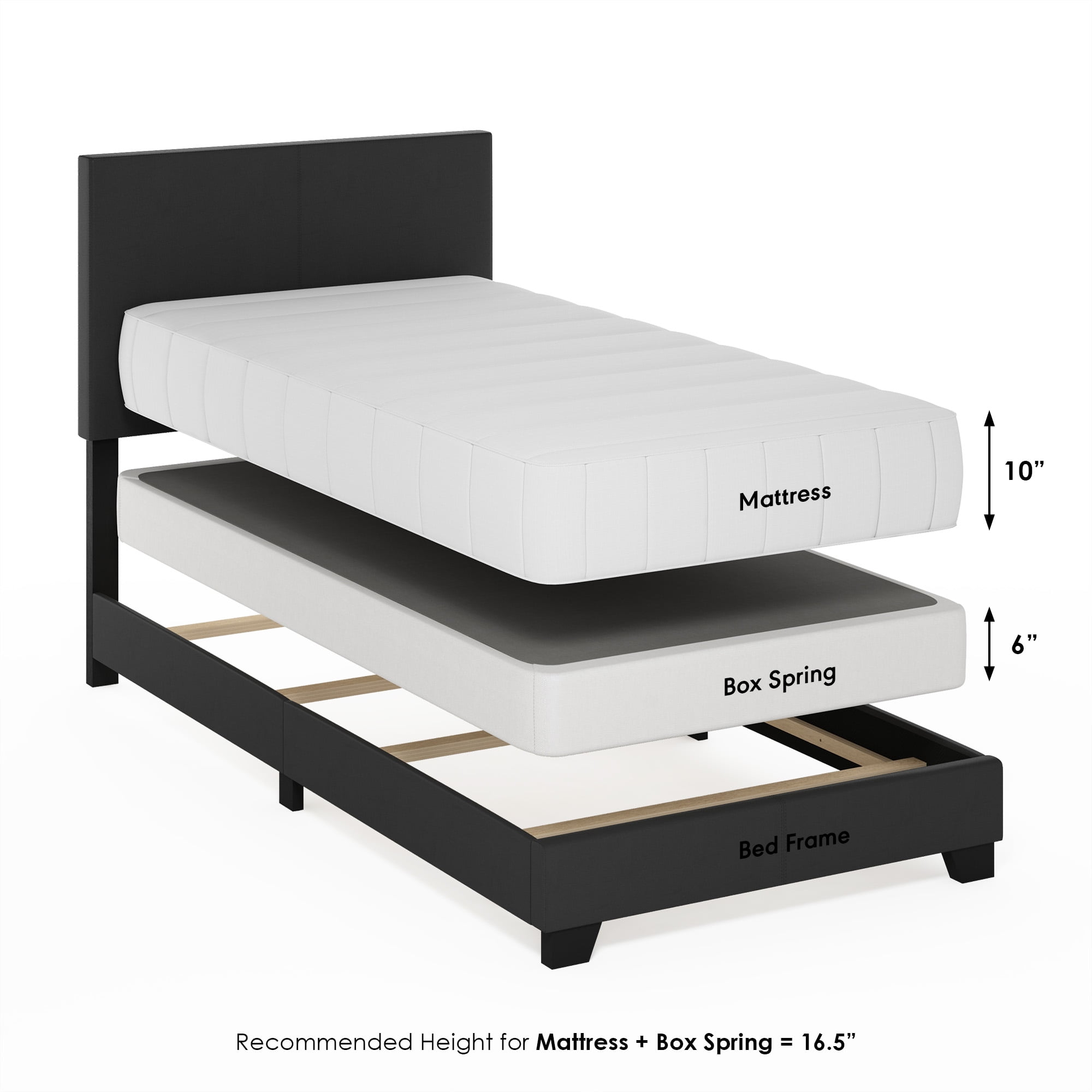 Features elegant PU leather upholstery, adding a touch of sophistication to your bedroom decor.Fits Space, Fits Budget. Smart design with all parts kept in back of headboard; easy storage and assembly Requires box spring or bunkie board to support mattress.The optimal height for the box spring and mattress combined is 16 inches. Can support up to 200 lbs Product Dimension: 43.11 (W) x 49.41 (H) x 85.43 (D) Inches