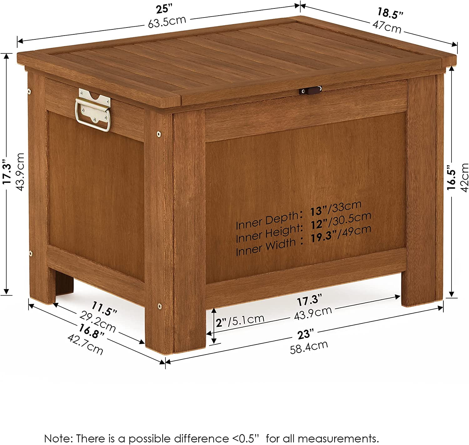 Made from dark red meranti wood treated with teak oil Waterproof and weatherproof; made to last long Product Dimensions: 25.00 (W) x 17.30 (H) x 18.50 (D) in.