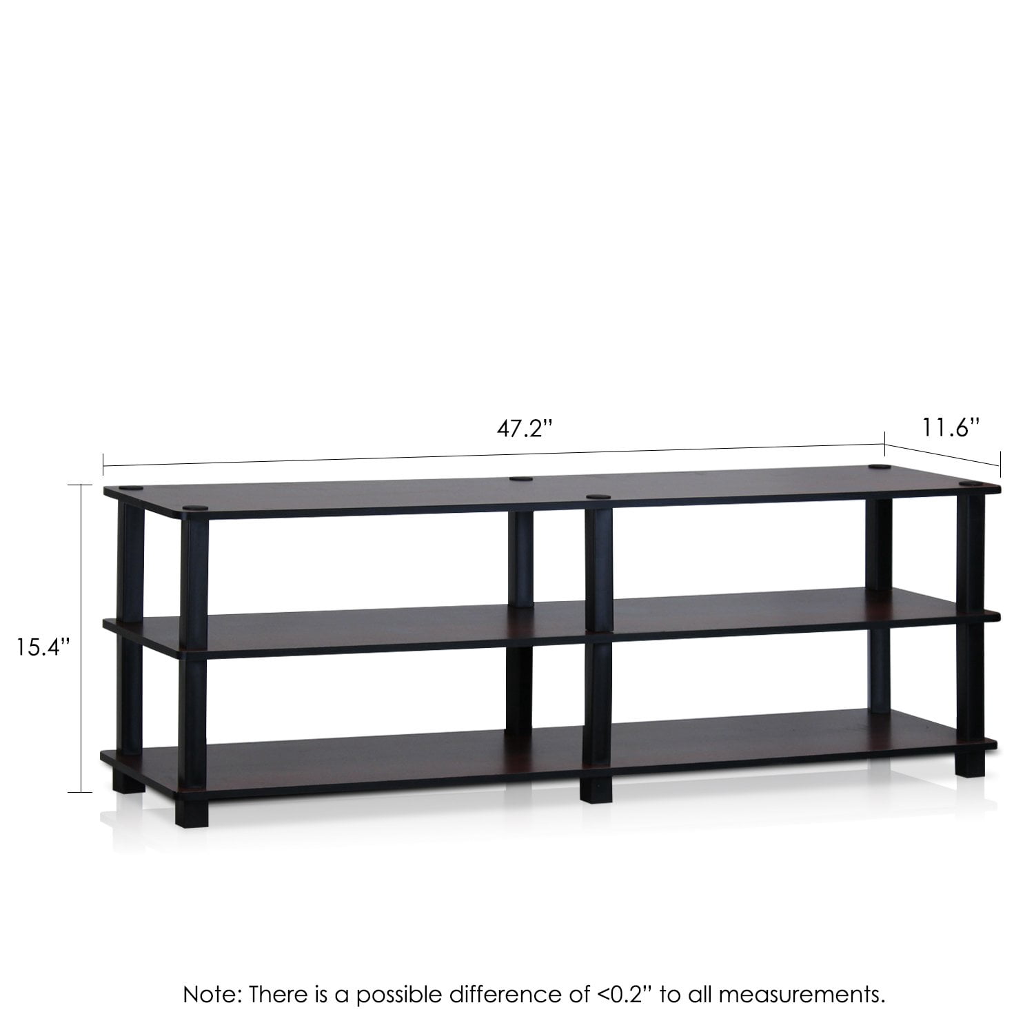 Furinno Turn-S-Tube No Tools 3-Tier Entertainment TV Stands come in variety fun colors. Experience the fun of D-I-Y even with your kids . The medium density composite wood is manufactured in Malaysia and comply with the green rules of production. There is no foul smell, durable and the material is the most stable amongst the medium density composite woods. The PVC tube is made from recycled plastic and is tested for its durability. A simple attitude towards lifestyle is reflected directly on the design of Furinno Furniture, creating a trend of simply natureproducts are produced and assembled 100-% in Malaysia with 95% – 100% recycled materials. Features Care instructions: Wipe clean with clean damped cloth. Avoid using harsh chemicalsUnique Structure: Open display rack, shelves provide easy storage and display of TV or other audio/video accessories. Suitable for any rooms. Designed to meet the demand of low cost but durable and efficient furniture. It is proven to be the most popular RTA furniture due to its functionality, price, and the no hassle assemblySmart Design: Easy Assembly and No tools required. A smart design that uses durable recycled PVC tubes and engineered medium density composite wood that withstand heavy weight. Just repeat the twist, turn and stack mechanism, and the whole unit can be assembled within 10 minutesSpecifications Color: Dark Cherry & Black Dimensions: 15.4″ H x 47.2″ W x 11.6″ L Weight: 21 lbs – SKU: LYTC409