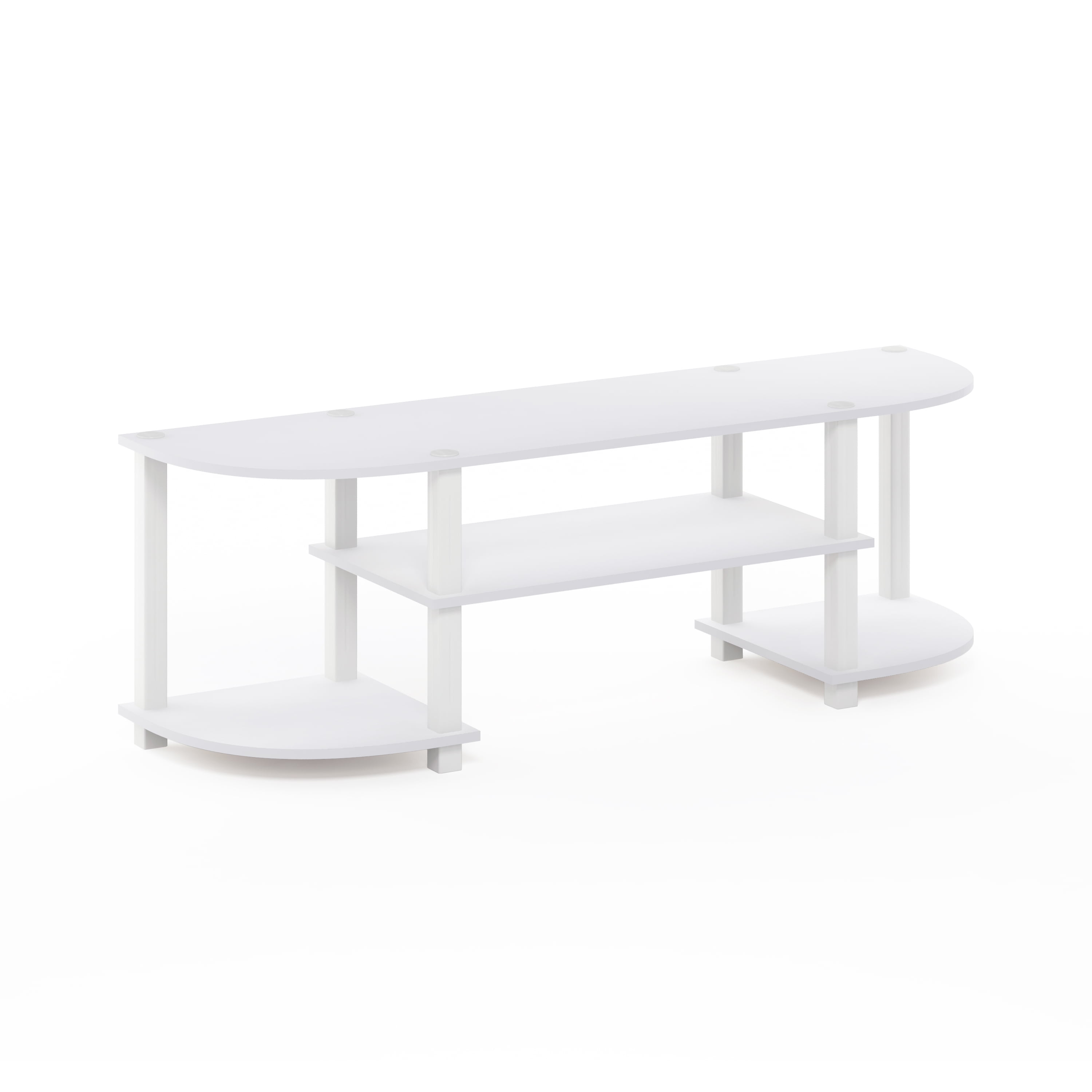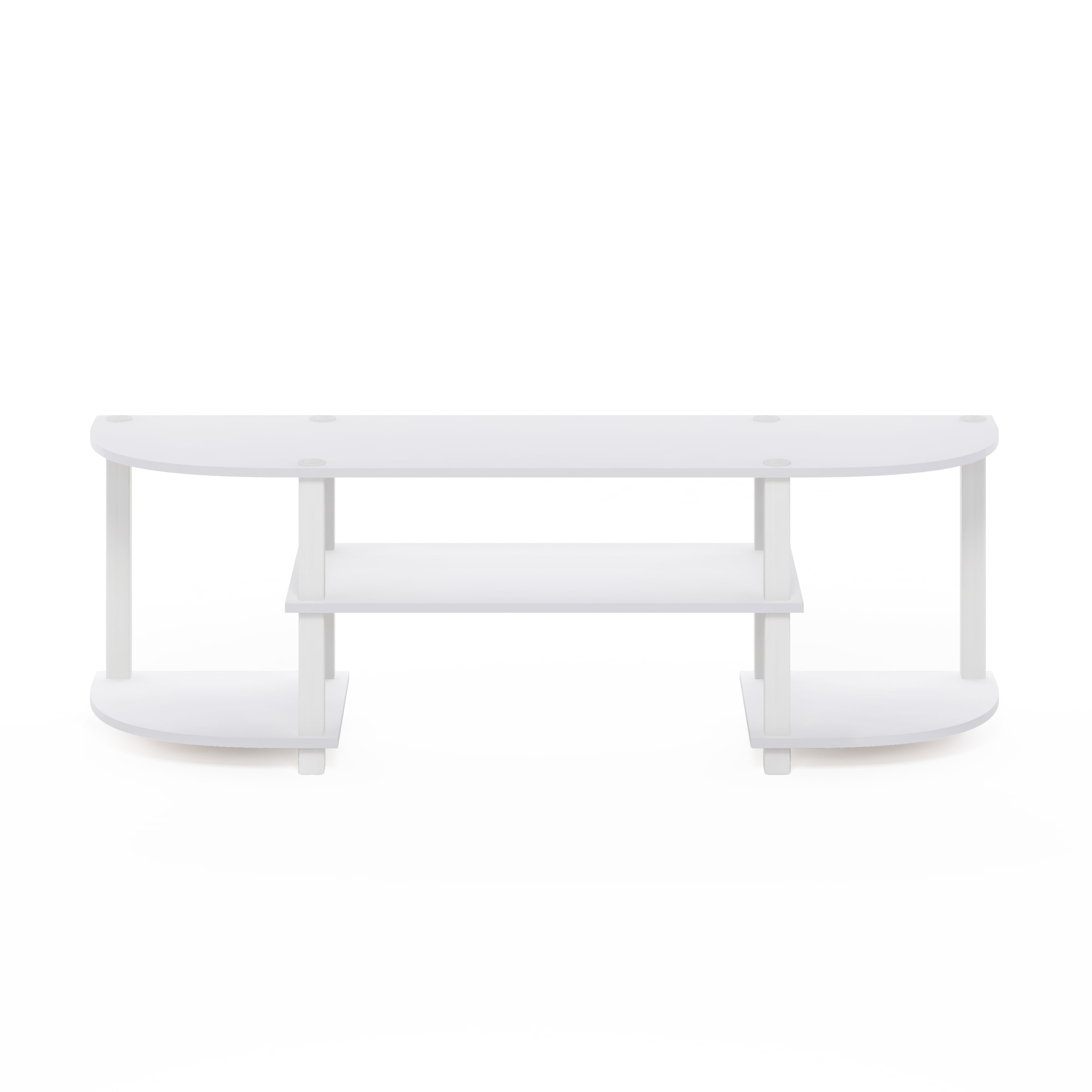 Material: CARB Grade composite wood, PVC Tubes. Sturdy on flat surface. Easy no hassle no tools 10-minutes assembly even a kid can accomplish. Holds up to 55-Inch Flat Screen Panel up to 40 lbs. Product dimension: 47.25(W)x13.4(D)x15.9(H).