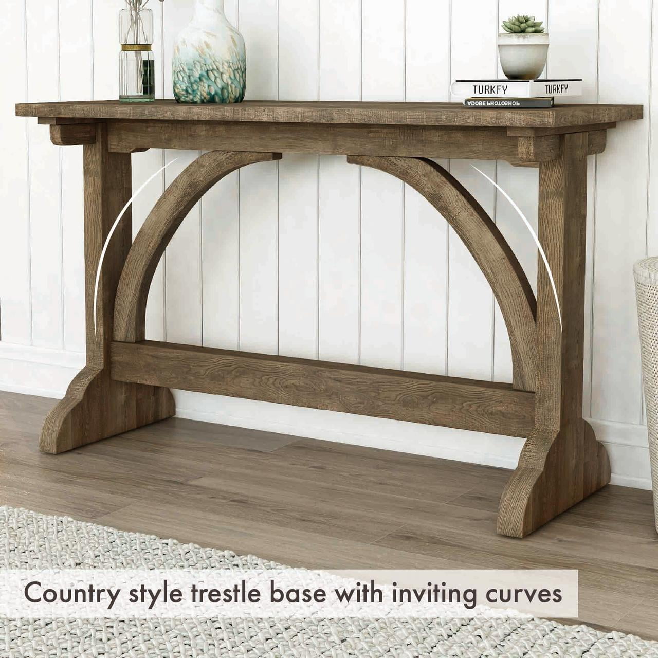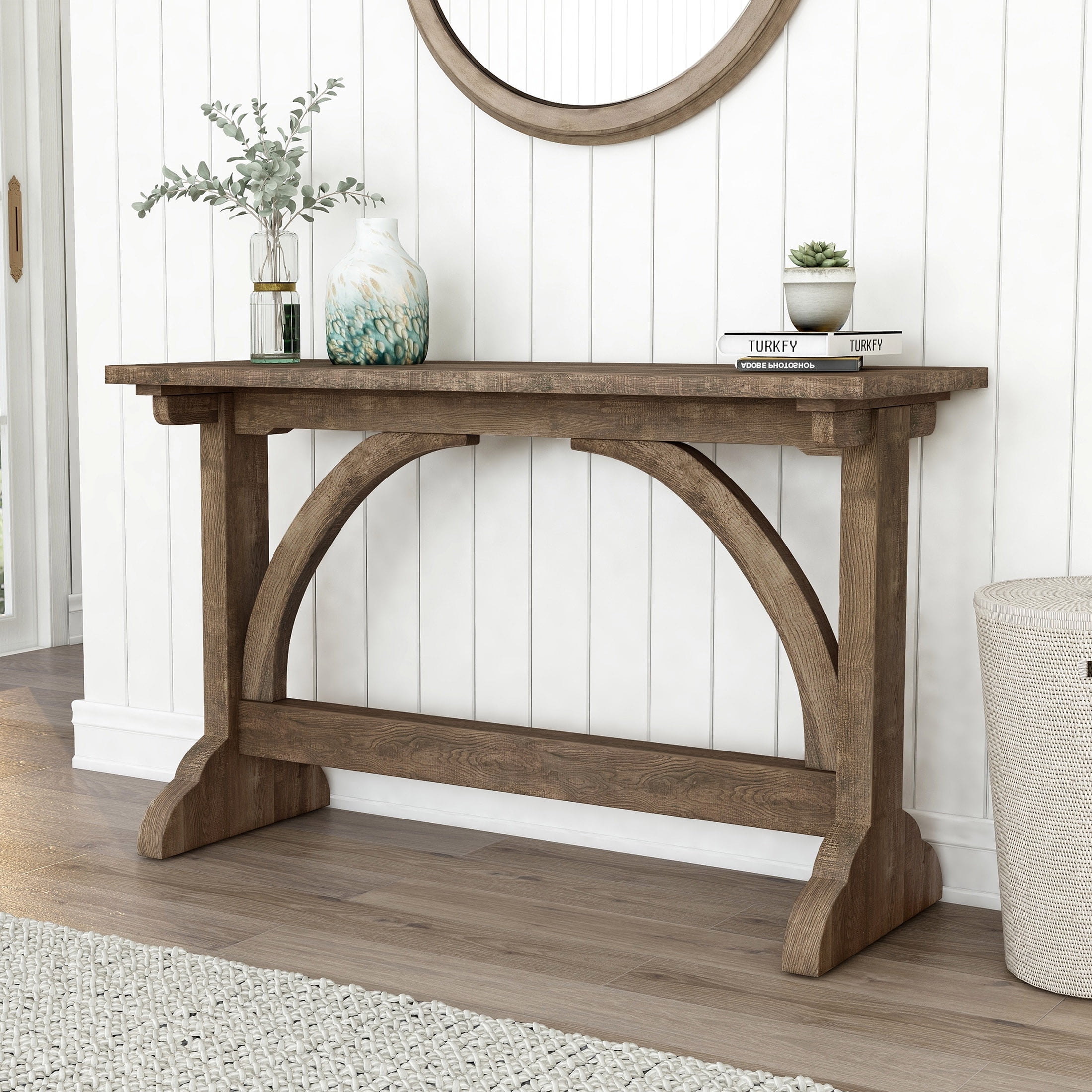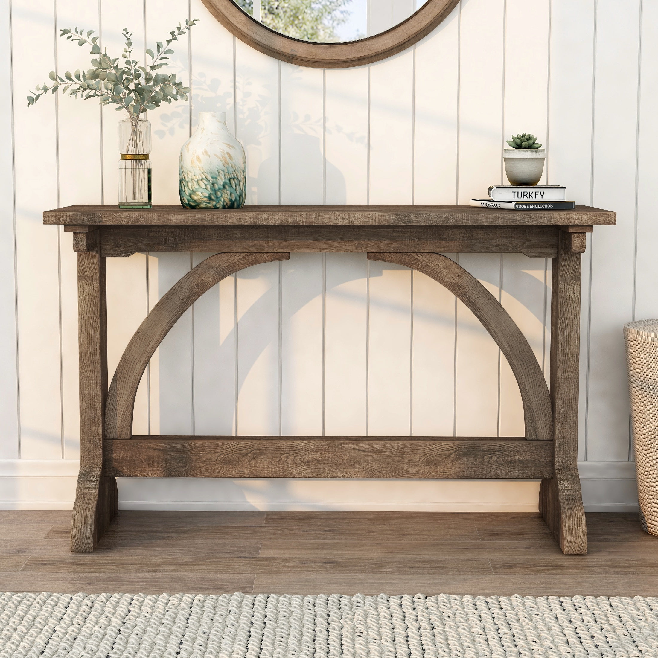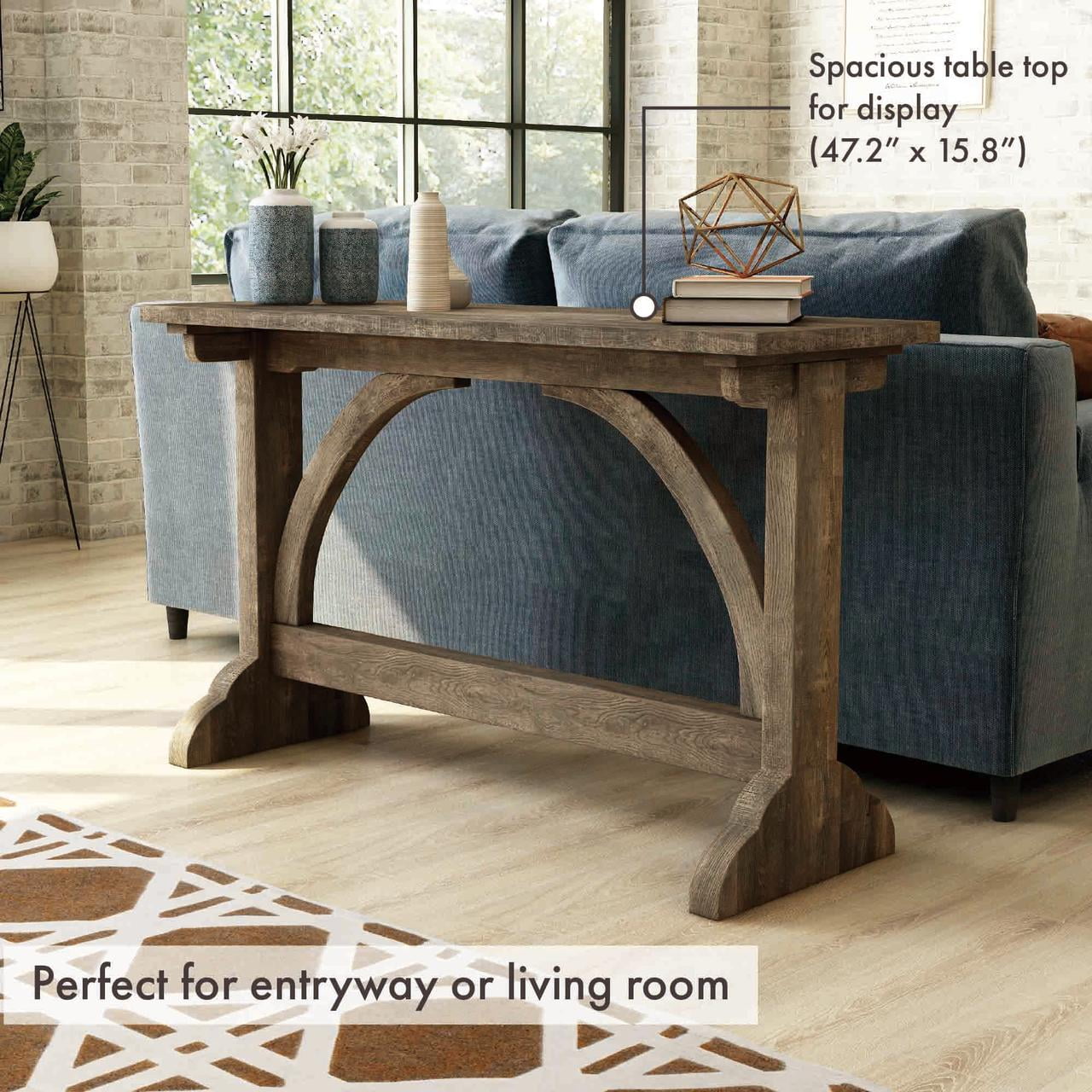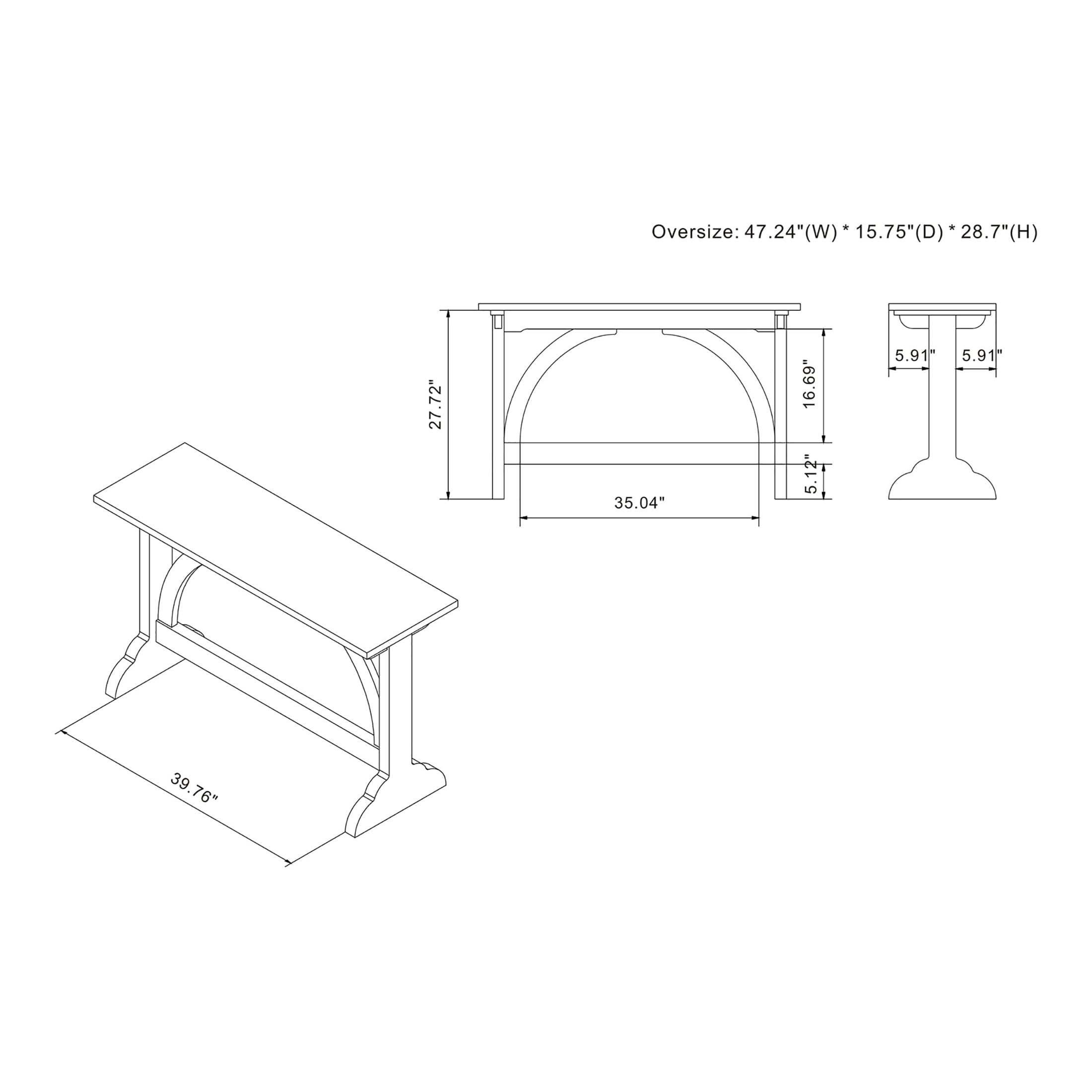 Furniture of America Delmin Rectangle Console Table, Oak Includes: One (1) Console Table Style: Rustic Materials: Particle Board RELIABLE TABLE TOP MATERIAL – This top is formed by wood veneer that has a density and hardness resistant to every day wear and tear. Decorative curved base supports Arch accents Spacious tabletop Wood grain accents Easy to follow step by step assembly guide included Ships in 1 box Color and Finish: Reclaimed Oak Dimensions & Weights: Overall Dimensions: 47.24″W x 15.75″D x 28.7″H Weight Capacity: 100 lbs. Product weight: 45 lbs. Click here to view the assembly guide