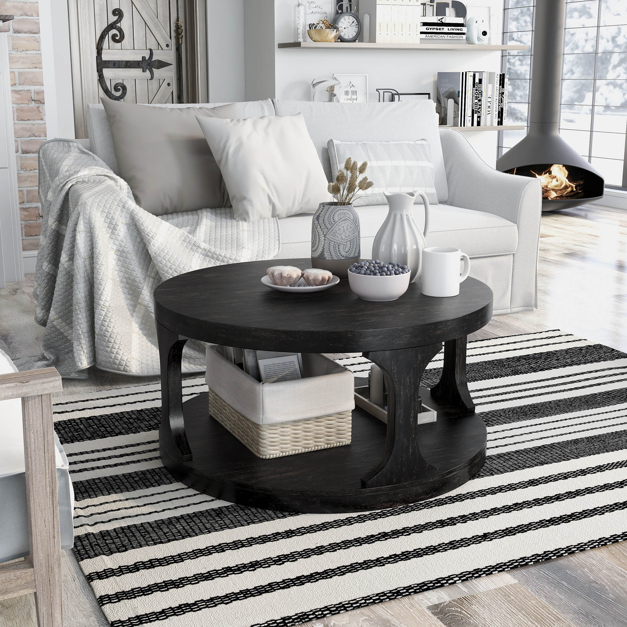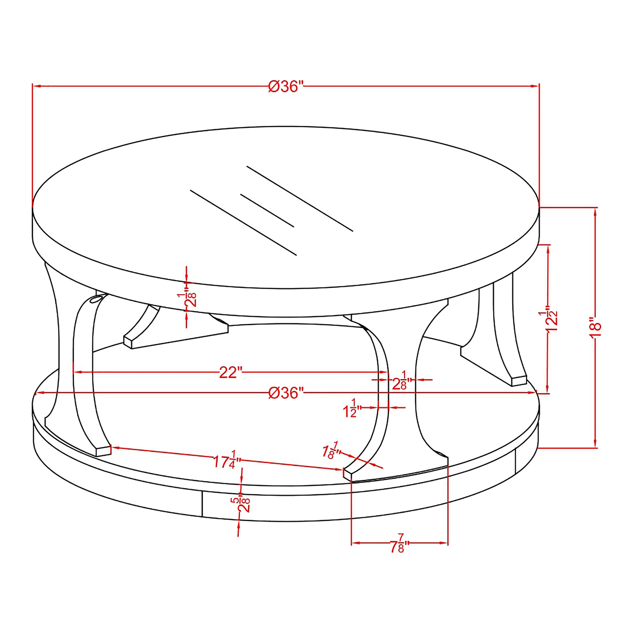 Furniture of America Laddie 1-Shelf Coffee Table, Antique Black Includes: One (1) Coffee Table Style: Transitional Materials: Solid Wood, Wood Veneer, MDF RELIABLE TABLE TOP MATERIAL – This top is formed by solid wood and wood veneer that has a density and hardness resistant to every day wear and tear. Smooth round tabletop offers ample space to place food and drinks Open base doubles as a shelf to provide additional storage space for displaying decorative pieces Thick and bold legs handsomely connect tabletop and base Antique black finish highlights wood grain patterns Easy to follow step by step assembly guide included Ships in 1 box Color and Finish: Antique Black Dimensions & Weights: Overall Dimensions: 36″W x 36″D x 18″H Weight Capacity: 75 lbs. Product weight: 52 lbs. Click here to view the assembly guide