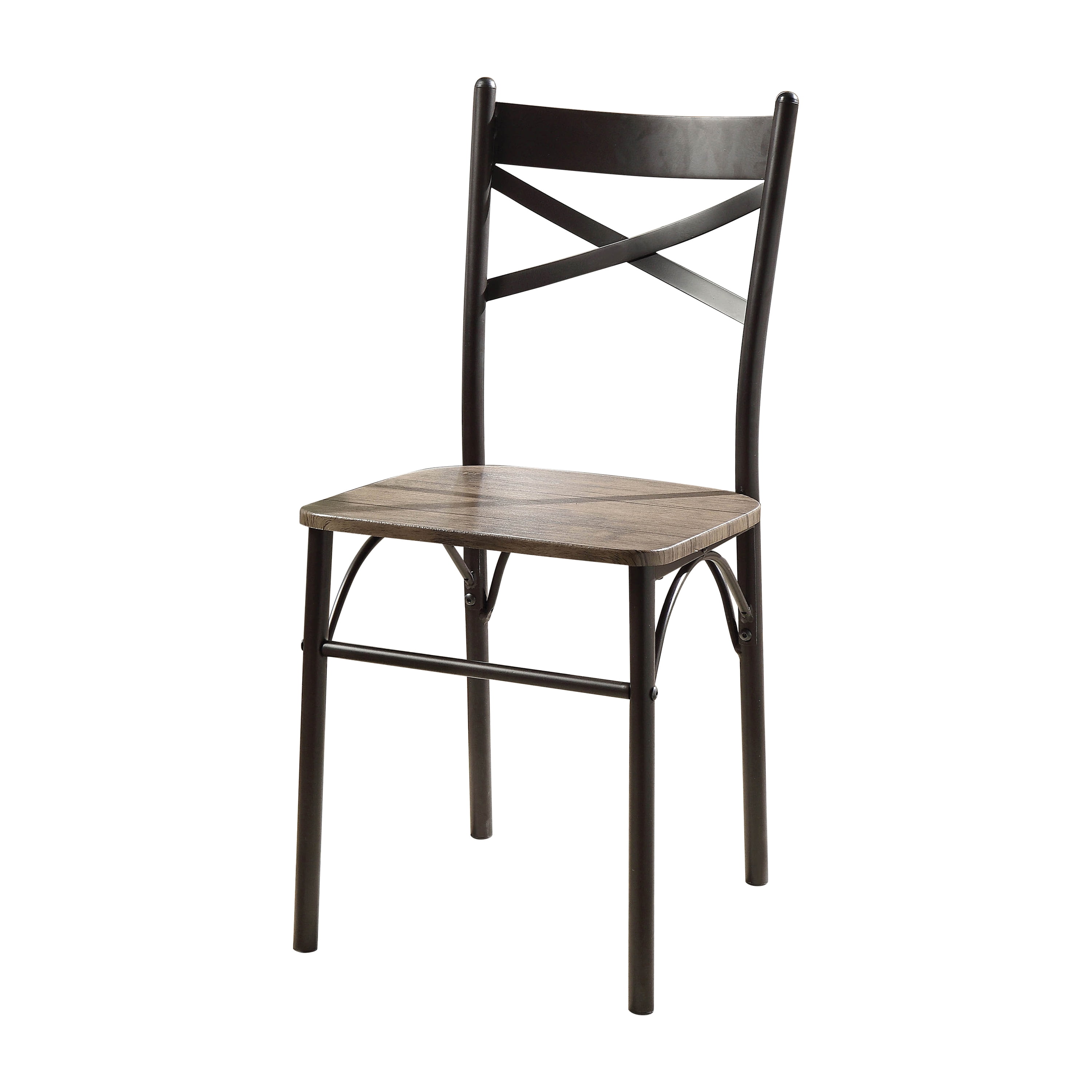 The Furniture of America Palmer 3-piece dining set is stylishly Industrial and conveniently space-efficient. X metal chairs provide ample comfort and support with rounded wood seats, rounded back rests and elegant arched supports. The rounded square dining table complements with matching wood finishes and daring triple bar legs that provide lasting use.