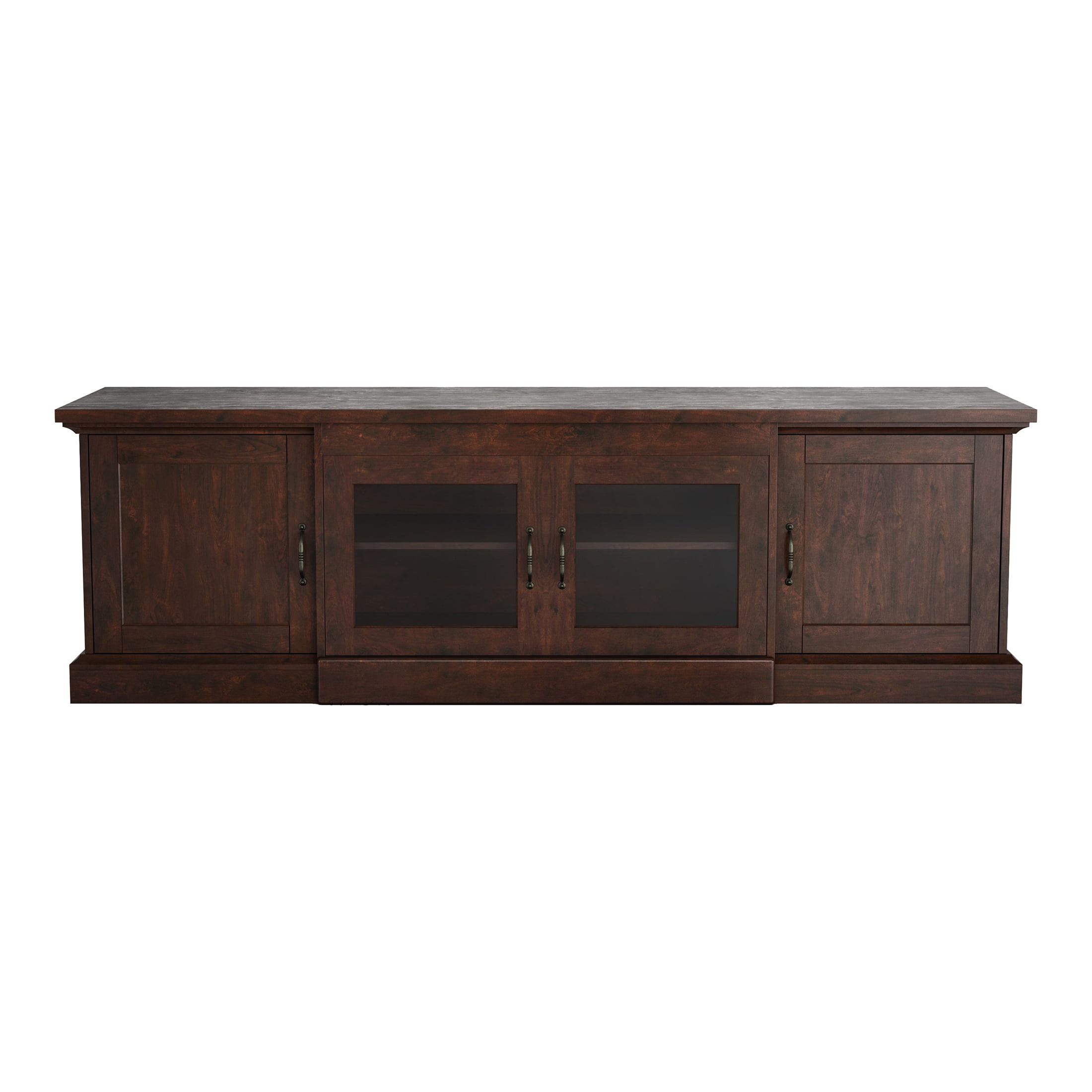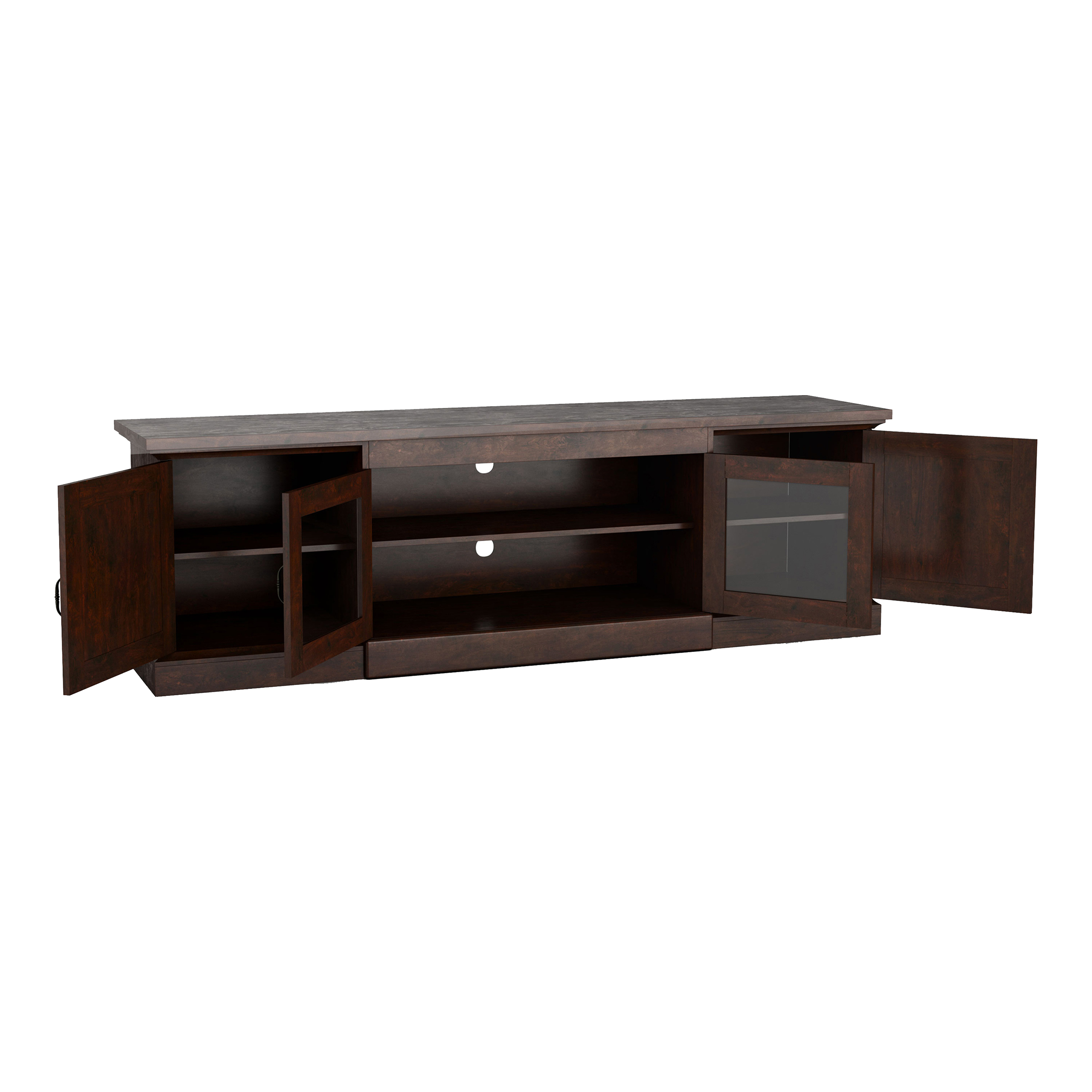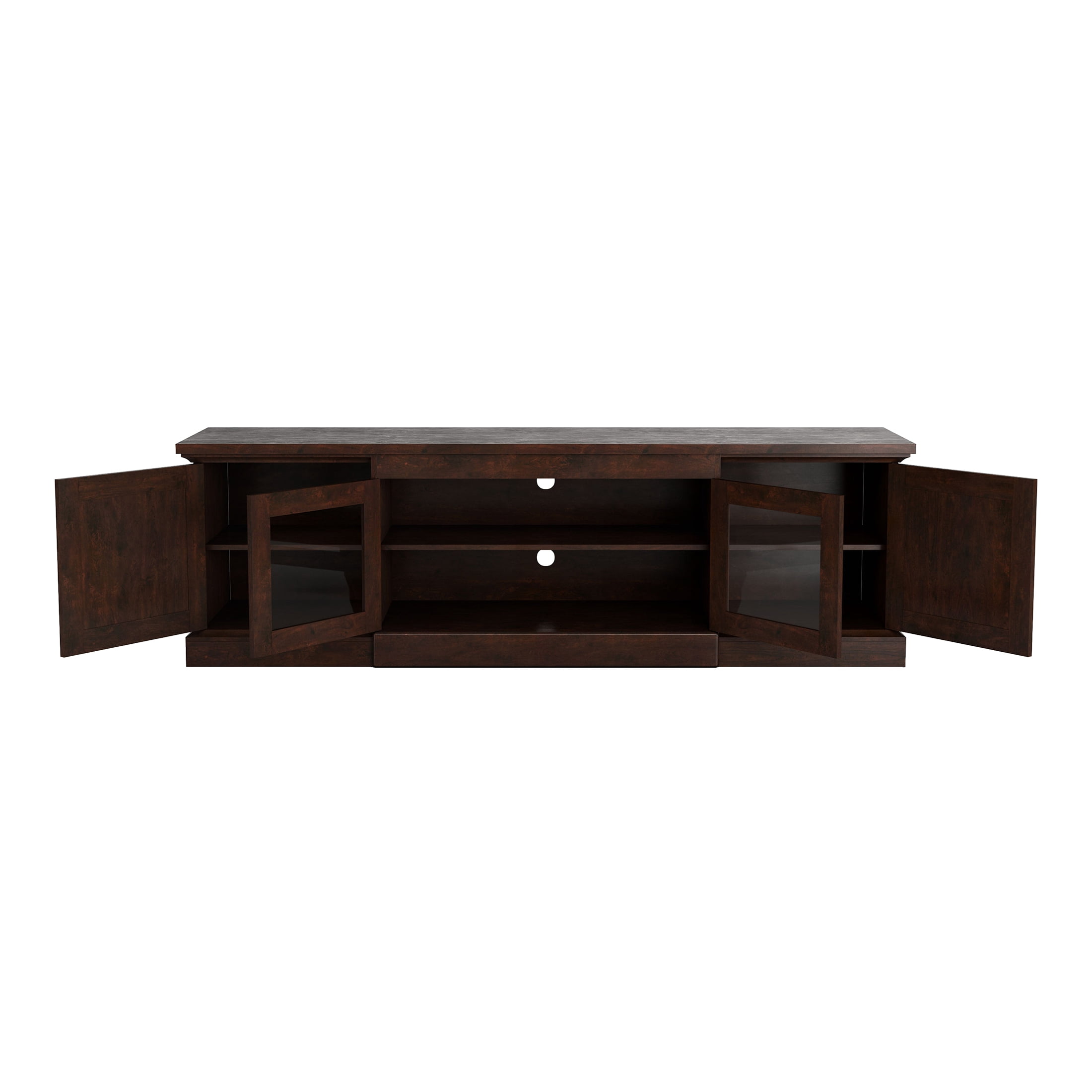 Furniture of America Renold TV Stand for TVs up to 76″, Vintage Walnut Includes: One (1) TV Stand Style: Transitional Materials: Particle Board, Steel, Wood, PU Paper CONVENIENT CABLE MANAGEMENT – 2 cut-out holes in the back for cable placement Four cabinet doors with two shelves in each Centered cabinet glass panels Metal cabinet pull hardware Glass decorative panes on center cabinets Easy to follow step by step assembly guide included Ships in 1 box Color and Finish: Vintage Walnut Dimensions & Weights: Overall Dimensions: 68.5″W x 16.04″D x 21.06″H Weight Capacity: 150 lbs. Product weight: 102 lbs. Click here to view the assembly guide