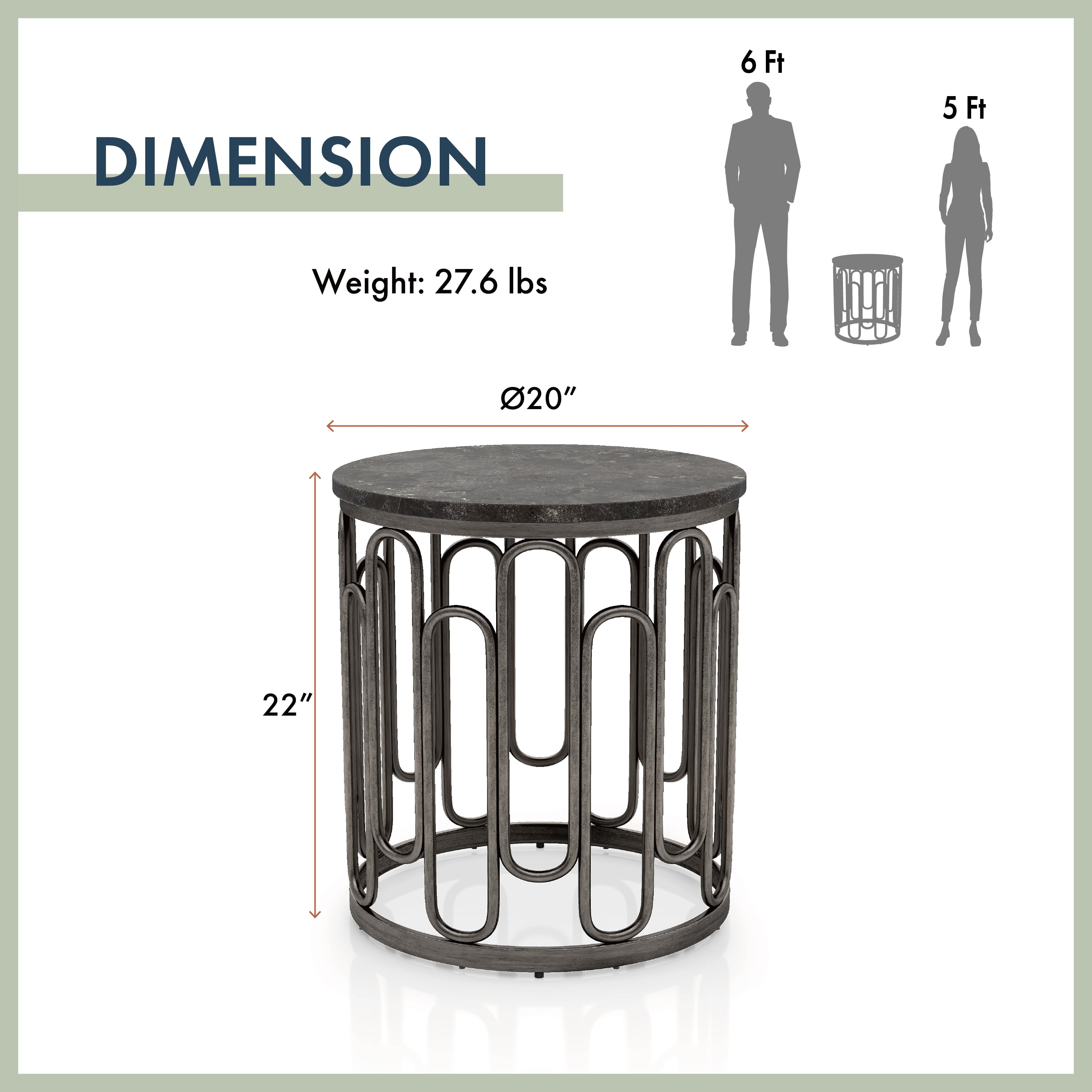 Furniture of America Saz Metal Stone Top End Table, Black Includes: One (1) End Table Style: Contemporary Materials: Marble, Iron DESIGN: The loop paperclip design not only lends a contemporary and artistic flair to your living room but also evokes a sense of movement and fluidity, making it a conversation starter and a focal point of your decor. MATERIAL: This end table boasts a stunning granite stone tabletop that exudes timeless luxury. The round metal bases provide a sturdy foundation, assuring stability and strength while enhancing the overall aesthetic appeal of the table. VERSATILITY: Trends and serves as a timeless addition to your home. Its versatility ensures it can adapt to a range of interior styles, from minimalist and contemporary to traditional and eclectic. DURABILITY: The union of granite stone and metal in this end table brings forth a harmonious blend of textures, colors, and forms. The sturdiness of the metal base provides stability and longevity, ensuring the set remains a centerpiece in your living space for years to come. STYLE: The unique fusion of elements effortlessly bridges the gap between the natural world and industrial design, offering a conversation piece that adds depth and character to any living space. Easy to follow step by step assembly guide included Ships in 1 box Color and Finish: Black Frame with Marble Top Dimensions & Weights: Overall Dimensions: 20″W x 20″D x 22″H Weight Capacity: 20 lbs. Product weight: 8.7 lbs. Click here to view the assembly guide