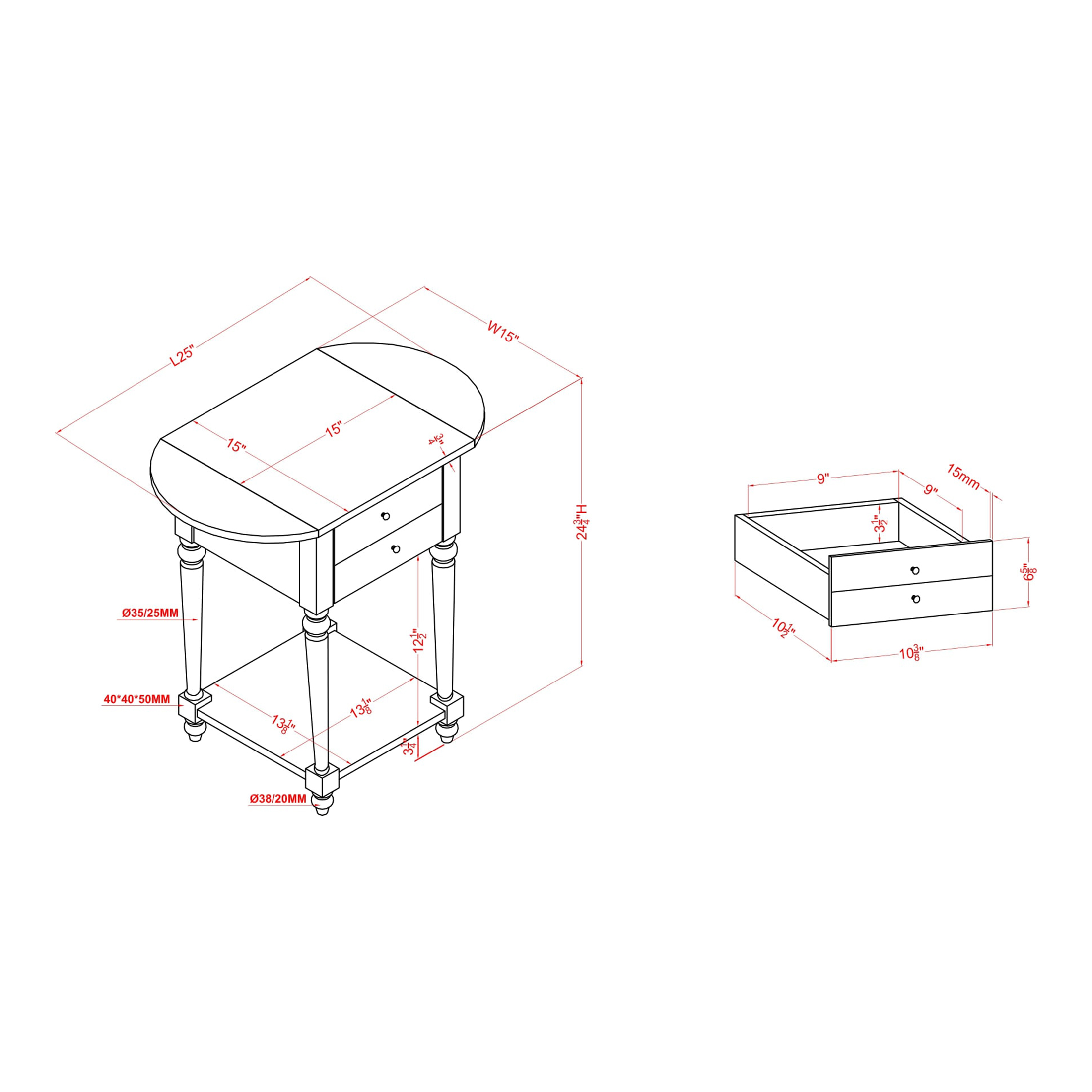 Furniture of America Wenslo Drop Leaf Side Table, Antique White Includes: One (1) Side Table Style: Farmhouse Materials: Solid Wood, Wood Veneer, MDF RELIABLE TABLE TOP MATERIAL – This top is formed by solid wood and wood veneer that has a density and hardness resistant to every day wear and tear. CLUTTER-FREE DESIGN – This item provides multiple storage space to help store and minimize clutter in your living space One drawer with double drawer front Double drawer front with two drawer knobs Lower open shelf Turned legs Drop-leaf design Oval table top with 2 drop down leaves Open bottom shelf 2 side drop leaves Easy to follow step by step assembly guide included Ships in 1 box Color and Finish: Antique White Dimensions & Weights: Overall Dimensions: 25″W x 15″D x 25.25″H Weight Capacity: 50 lbs. Product weight: 16 lbs. Click here to view the assembly guide