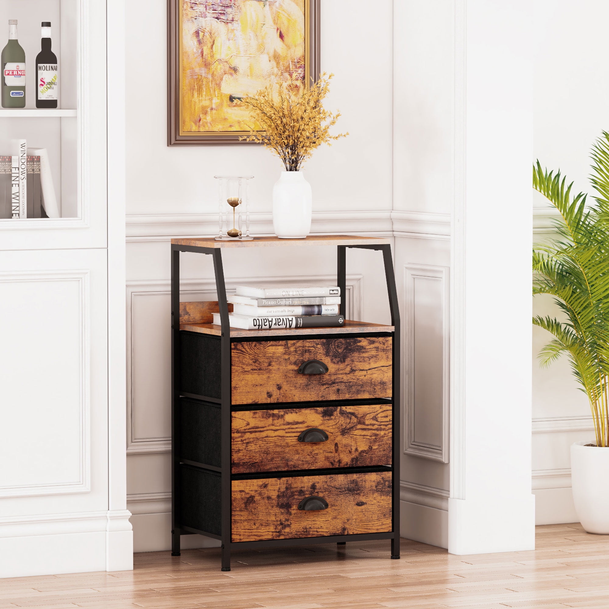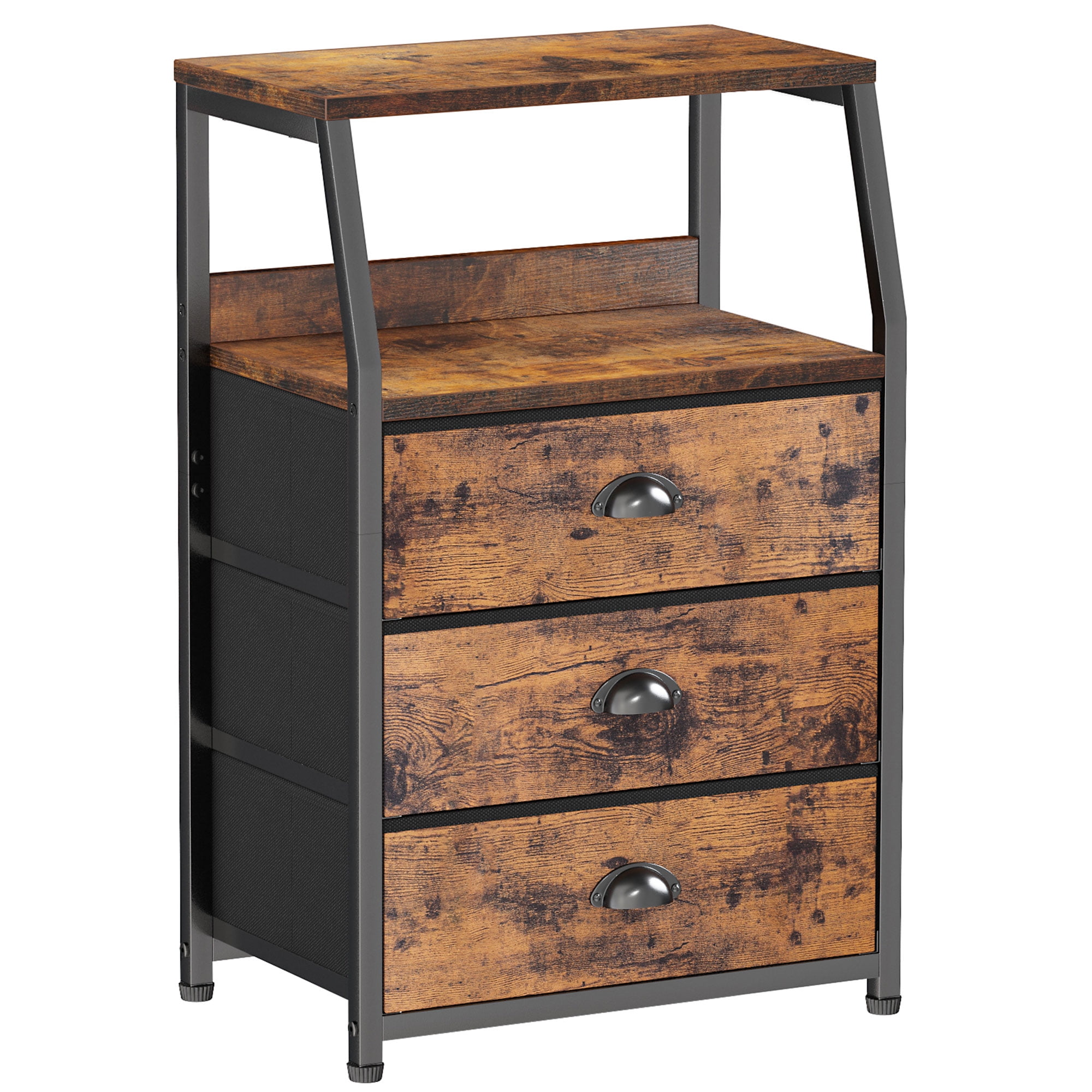 Furnulem 3 Drawers Nightstand, Fabric Dresser for Bedroom, Living Room, Rustic