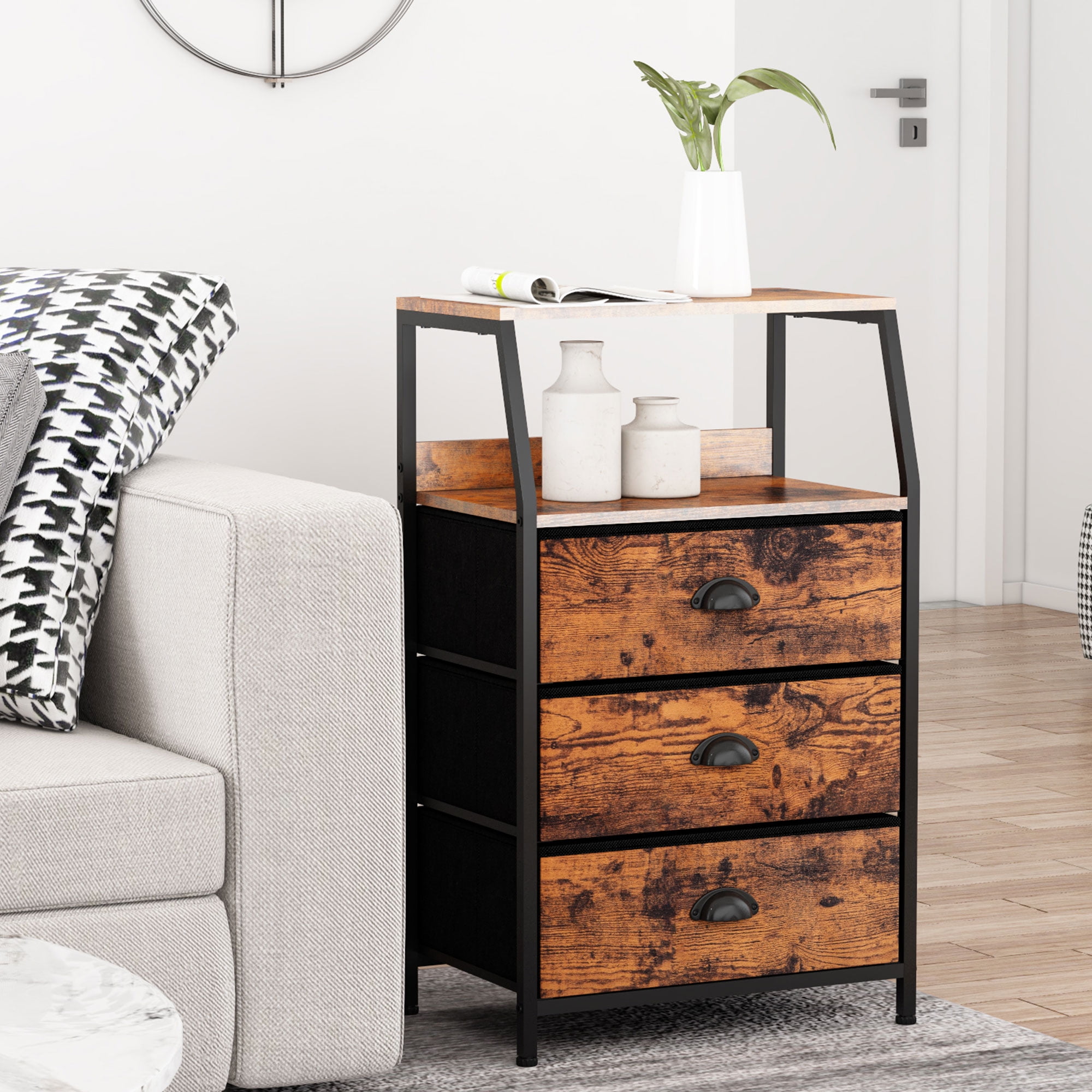 Why Choose Ourpic? Tough Quality Assurance Incredibly Low Prices Fast & Secure Delivery 90-Day Free Returns 24/7 Professional Customer Service Furulem is specialized in home furniture, providing various storage dressers, cabinets, nightstands & end tables of high quality. All of our products are through strict quality control & rigorous drop-testing. Specification: Color: Rustic Brown Material: MDF+Fabric+Metal Frame Material: Metal Product Dimensions: 11.5″D x 16.1″W x 28.3″H Included Components: Wooden board, Cloth drawer, Screws, Manual