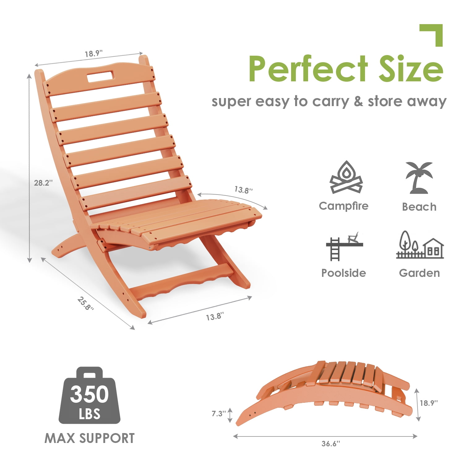 FURRYFECTION Adirondack Folding Xavier Chair Set of 2,HDPE All-Weather Portable Outdoor Chairs for Beach Pool Camping Fishing Fire Pit Patio Garden Indoors,Orange