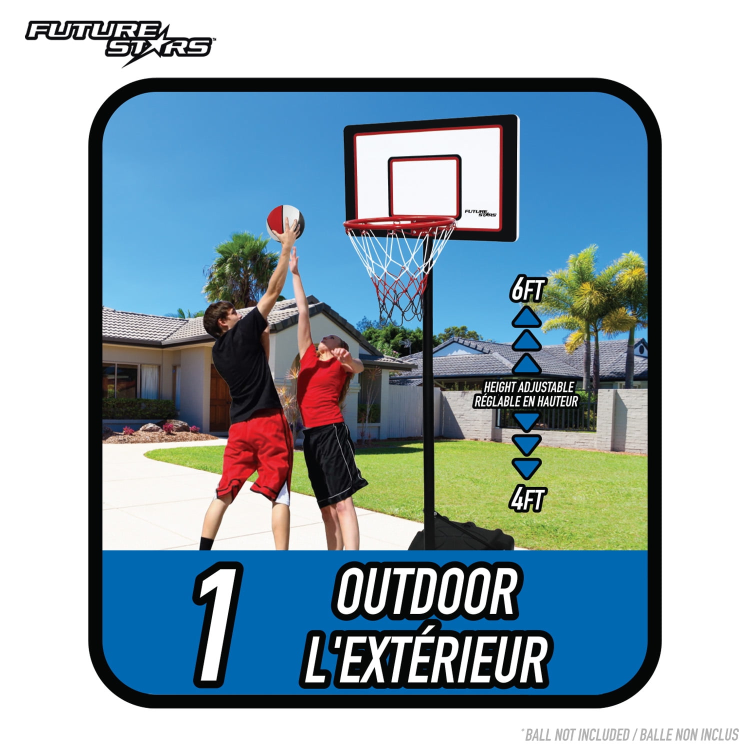 Future Stars 4 in 1 Basketball System Backboard with Metal Rim, Height Adjustable Metal Poles with Base