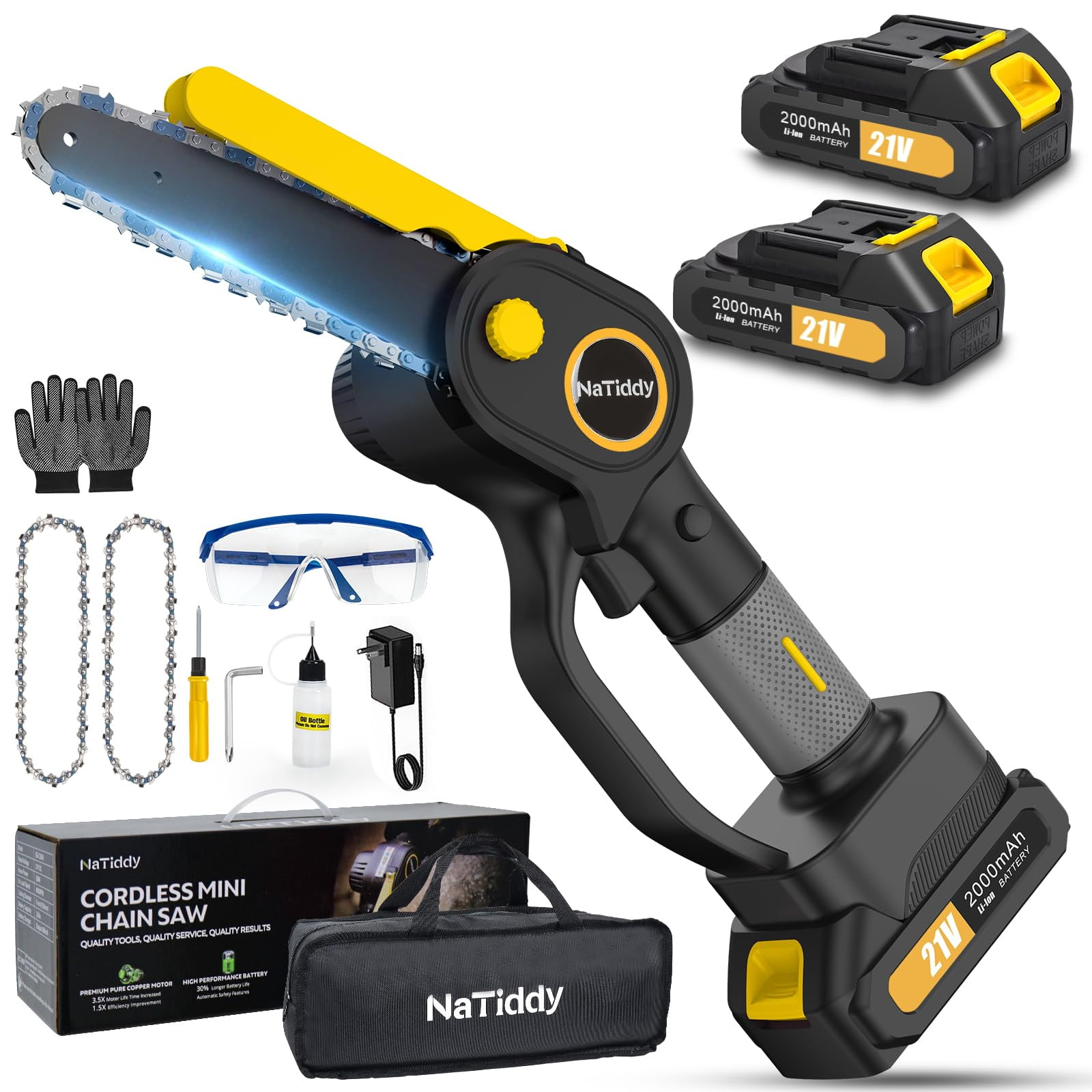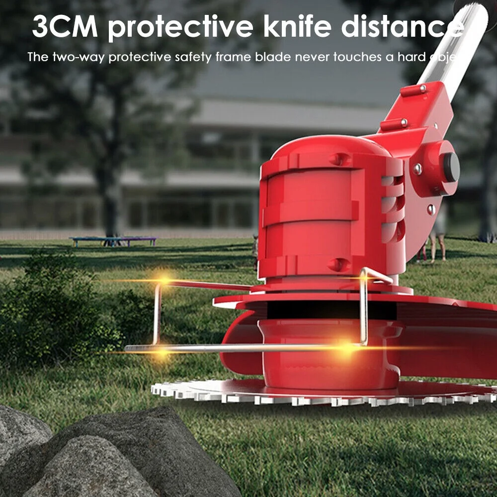 1.【High-power and high-efficiency lawn mower】The electric lawn mower is cordless, with a power of 800W and a motor speed of 21,000 rpm. Includes two rechargeable 2000mAh high-capacity 21V batteries. This battery-powered electric weed killer will be one of the comfortable and flexible tools in lawn mowing. Improve your work efficiency, finish your work quickly and reduce stress. Weed wacker battery power supply does not use any gasoline, so it is quieter, safer and more environmentally friendly. 2.【3-IN-1 3 kinds of blades for lawn mower】There are 3 different types of blades for electric cordless lawn mower. Multi-purpose: plastic blade is suitable for cutting grass on soft lawn; Stainless steel metal blade is suitable for pruning weeds and small shrubs; 40-tooth alloy saw blade is very suitable for cutting thick shrubs, branches and seedlings. To avoid damaging the blade, please choose the correct blade when weeding. ) 3.【Adjustable length and upgraded wheel design】The battery-driven lawn mower is equipped with an adjustable lever, which can be freely adjusted between 35.65 and 50.69 inches. Meet the weeding needs of people with different heights. It is worth mentioning that our cordless brush cutter has also upgraded its wheels. The triangular structure of the bracket is more stable, ensuring that it can work in the most complicated environment. Wider tires allow you to push the lawn mower more smoothly. 4.【Portable cordless lawn mower is easy to use】The lawn edger is completely cordless, and there are no entangled cables or wires. Lightweight and compact design, weighing only 3.28 pounds, is easy to carry and can be easily used by women and the elderly. At the same time, it is equipped with a safety lock design. Anti-collision metal protection ring can prevent the grass trimmer from colliding and damaging the cutting blade. This is a friendly and worry-free electric cordless mower. 5.【Premium Weed Wacker& Professional Service】 Package includes 1 electric brush knife, 2 stainless steel blades, 1 alloy saw blade, 3 plastic blades, 2 batteries, 1 upgraded wheel, 1 goggles, 1 small rotary wrench, 1 weeding charger, 1 pair of gloves and 1 manual. Our service starts when you place an order, and 24-hour friendly customer service keeps you away from after-sales troubles.