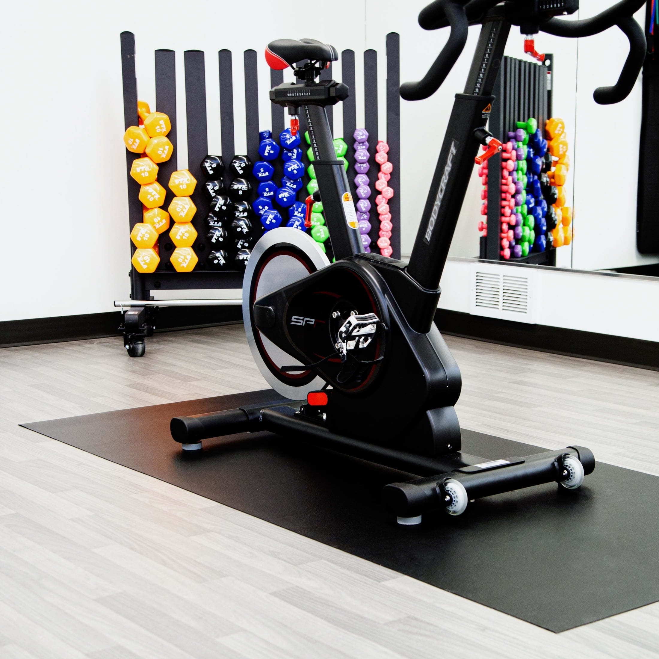 G-Floor 36″ x 84″ 75 Mil Heavy Duty Vinyl Exercise Equipment Mat – Midnight Black Protects floors from heavy exercise equipment Clean with a vacuum, soapy water, or household cleaners Slip-resistant, stain-resistant, mold-resistant No installation necessary, just unroll and go Made of durable 100% vinyl Available in multiple colors: Midnight Black, Slate Grey, and clear Available in different sizes: 32″ x 72″ and 36″ x 84″