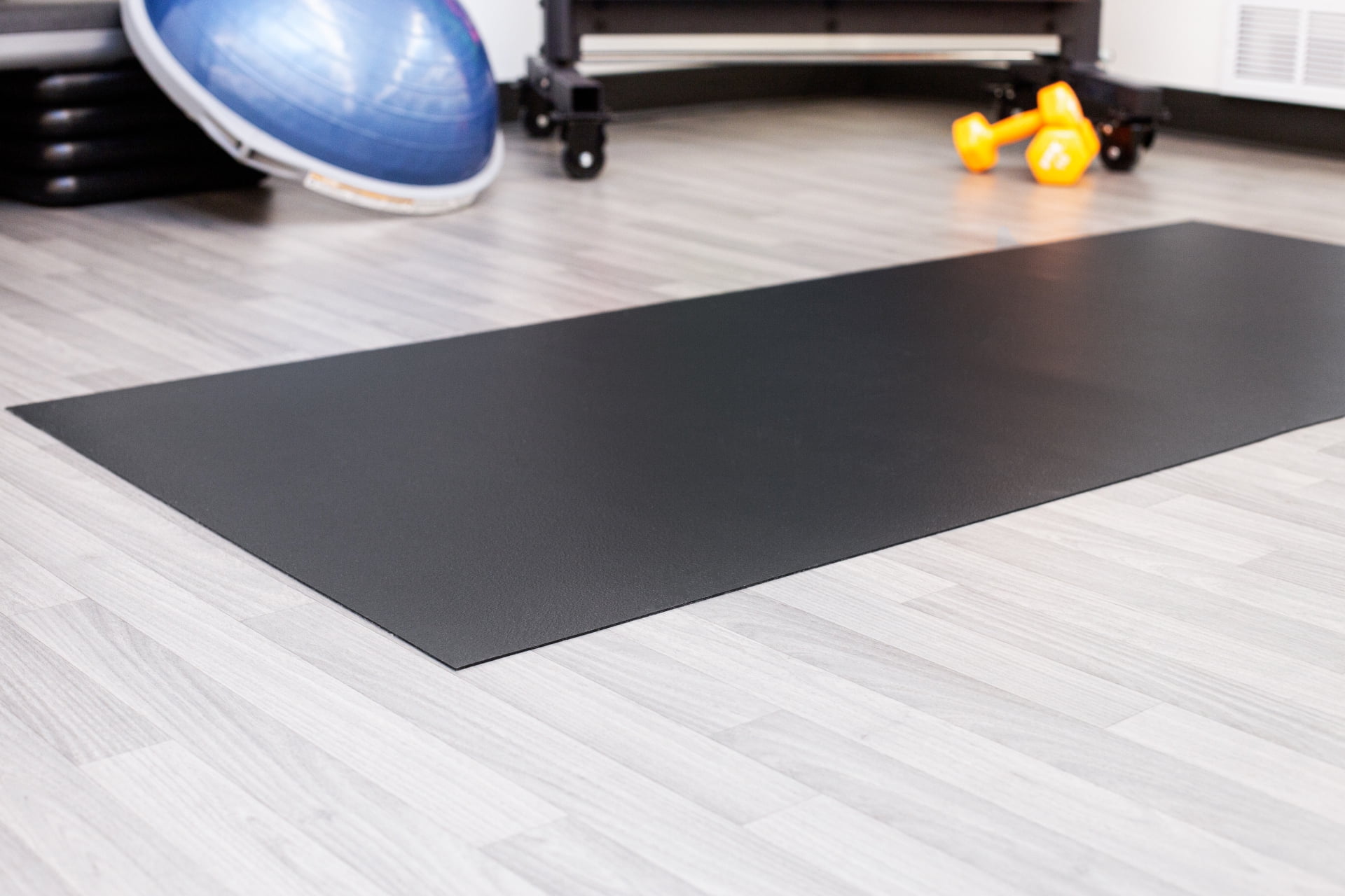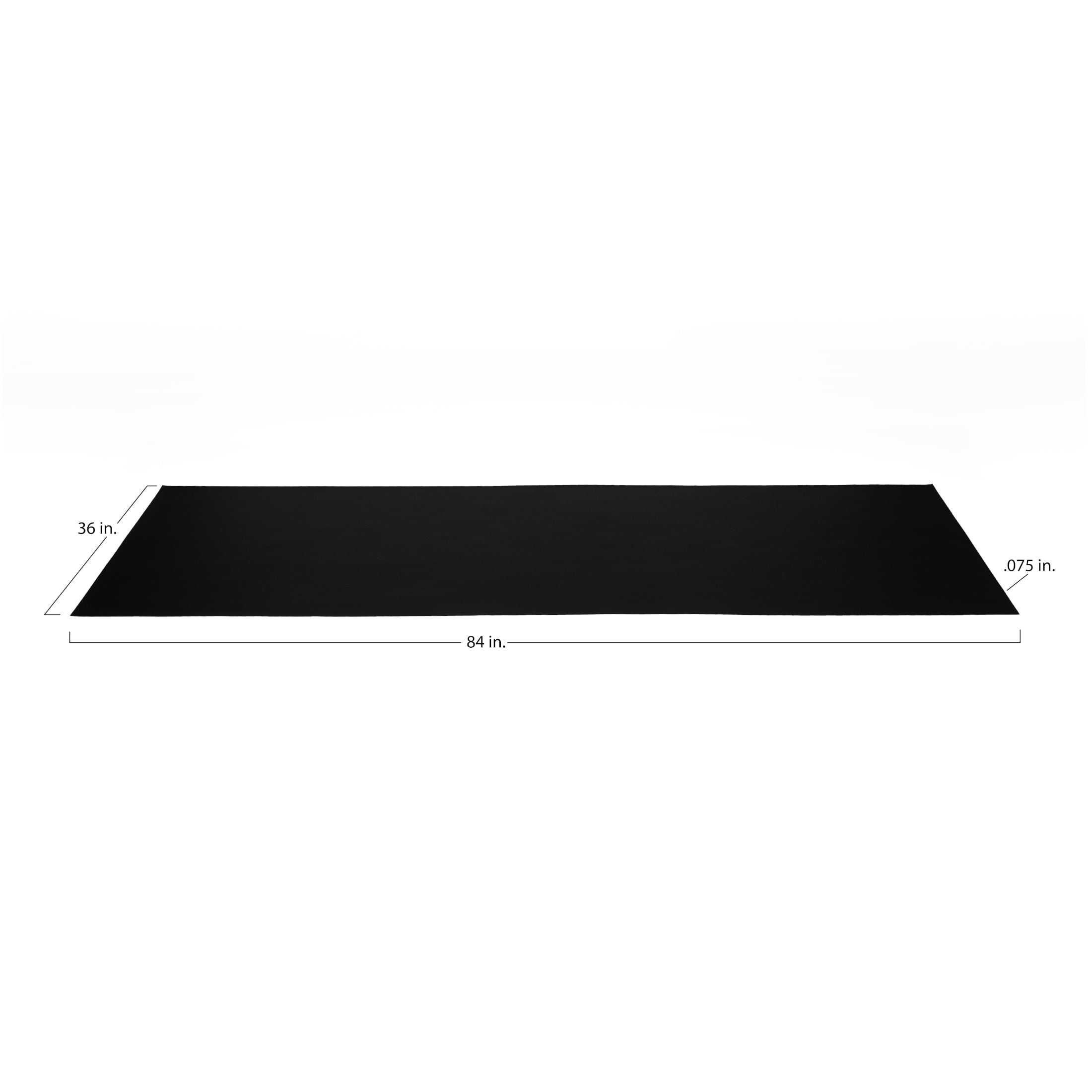 This G-Floor 36″ x 84″ 75 Mil heavy duty vinyl exercise equipment mat in Midnight Black is designed to protect your flooring from damage caused by exercise equipment. This vinyl mat is made from solid, 100% vinyl (also known as PVC or polyvinyl) and is 75 Mil or 0.075″ thick and extremely durable. This mat provides protection for your floor no matter the surface: wood, tile, cement, epoxy, carpet, and more. No installation or adhesive necessary: just unroll the mat and put your equipment on top of it. The durable vinyl material can be trimmed with a utility knife or heavy scissors for a custom fit. Try putting an equipment mat under ellipticals, treadmills, weight machines, stationary bikes, steppers, and weight benches. Rest easy knowing your floor is safe from scratching, marring, denting, dripping sweat, and spilled water bottles. G-Floor vinyl mats are waterproof and easily wipe clean. Protect your floor and your exercise equipment with a G-Floor 75 Mil heavy duty vinyl exercise equipment mat for your exercise equipment and more!